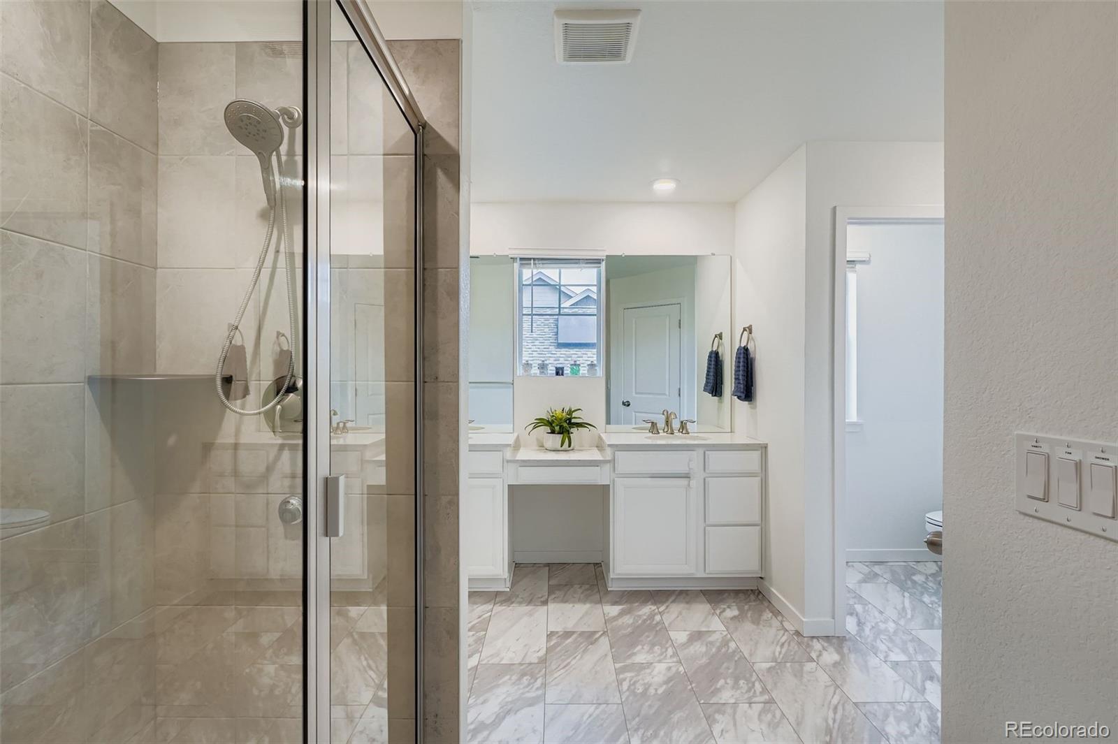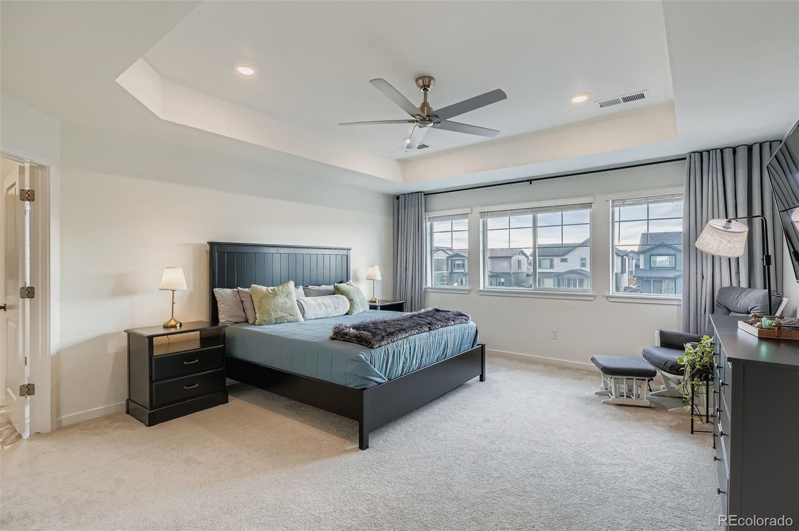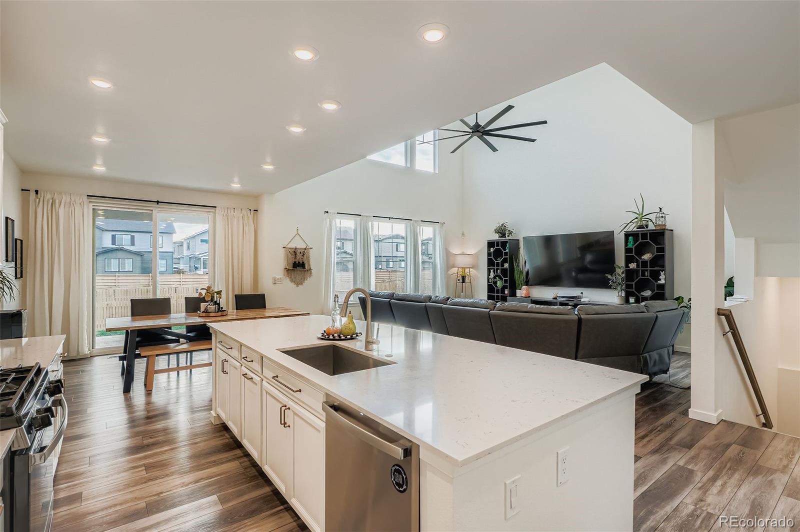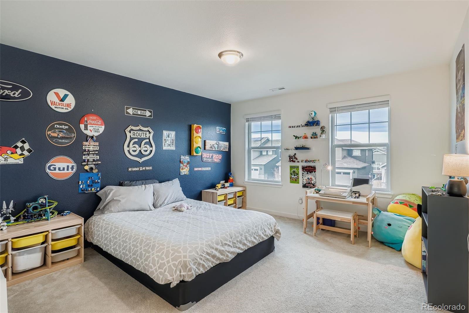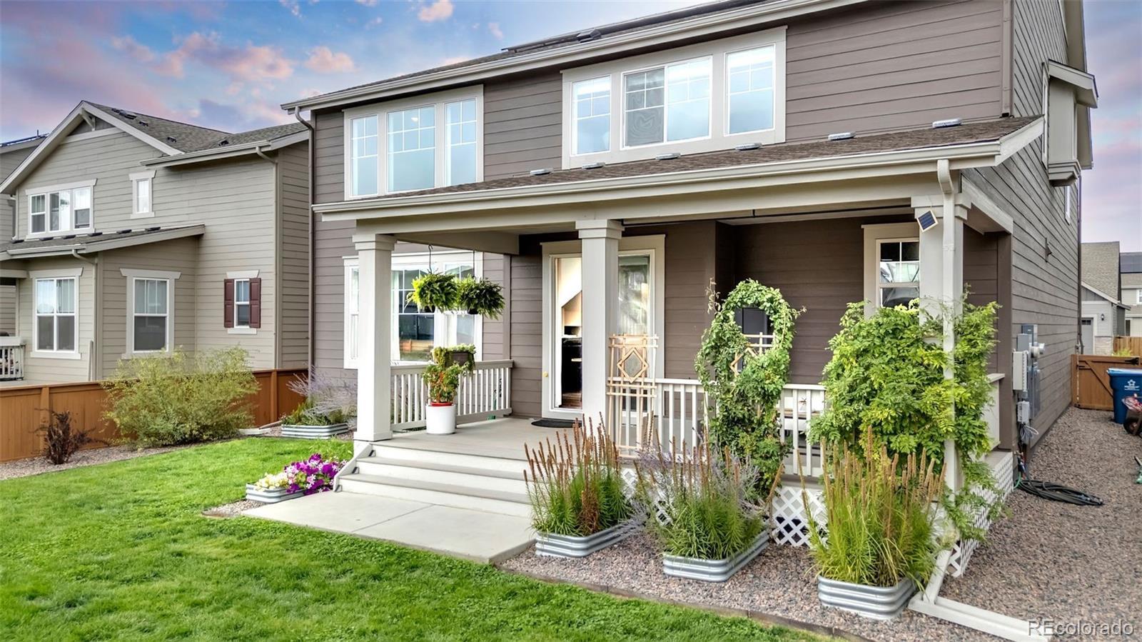 From the moment you step inside, this home feels like the one you’ve been hoping for: bright, open, and genuinely welcoming. Built in 2022 and lovingly lived in ever since, it has all the freshness of new construction without the wait. Natural light pours through two stories of windows, filling the main living space with warmth. The open layout makes everyday life easier where conversations flow from the living room to the kitchen, and a large quartz island takes center stage. It’s the kind of space where birthdays get celebrated, homework gets spread out, and late-night snacks turn into real conversations. Upstairs, the primary suite offers a little sanctuary at the end of the day, with dual vanities and two walk-in closets. Three additional bedrooms create room for everyone including one with its own ensuite bath, and two connected by Jack-and-Jill bath. Back on the main level, you’ll find another bedroom and full bath, ideal for visiting guests, multigenerational living, or a quiet office tucked away from the rest of the home. Step outside to a backyard designed for easy living with a large covered patio, professionally landscaped spaces, native perennials, granite rock borders, and raised planters with drip irrigation. Dual HVAC systems independently serve the upper and lower levels. Ring security system, keyless entry, and an upgraded radon mitigation system. Storage is no issue with a roomy 3-car tandem garage and an unfinished basement nearly 1,300 sq. ft. A note from the owners: “We chose this home as our forever home, and we’ve cared for it that way. Every detail has been thoughtfully maintained. A job relocation is taking us out of Colorado far sooner than we ever imagined. Leaving this home — and this neighborhood — is truly bittersweet. Reunion feels like a small town inside the city, with community pools, a beautiful rec center, Reunion Coffeehouse, trails, and parks. We hope the next owners love it as much as we have.”