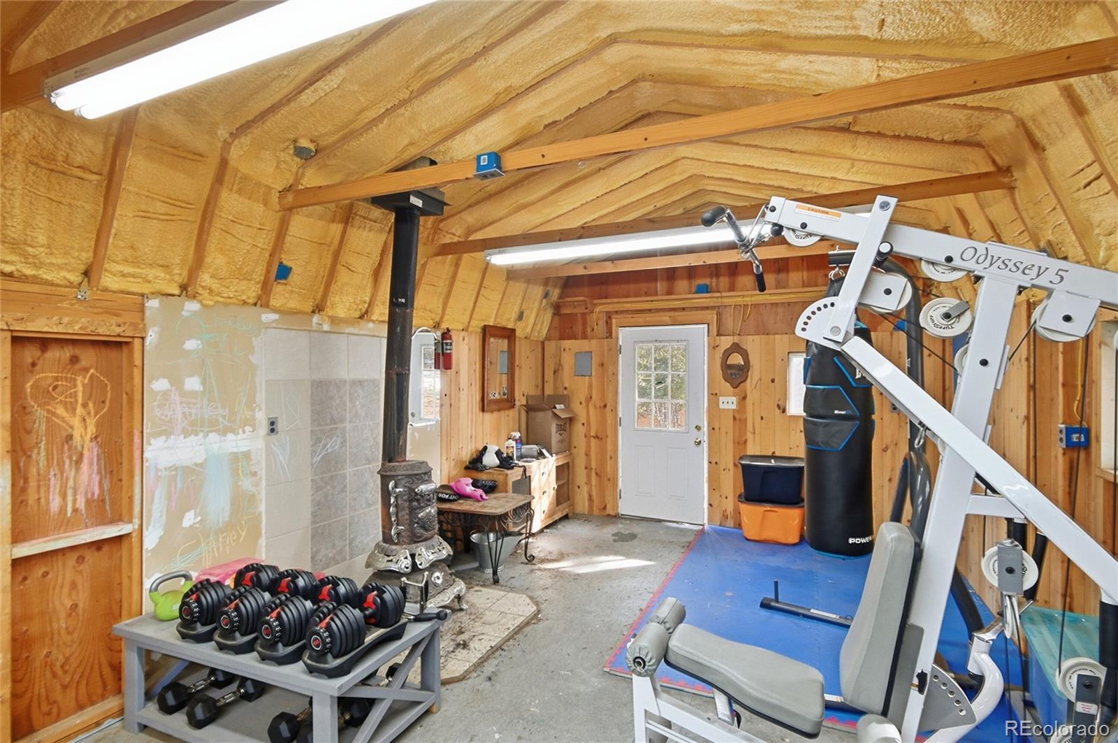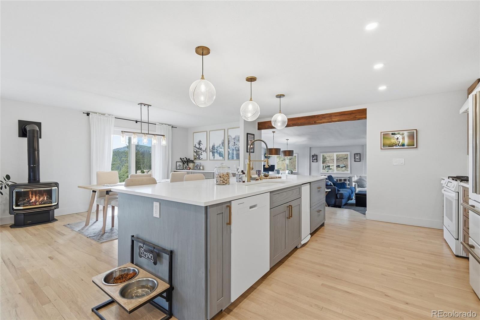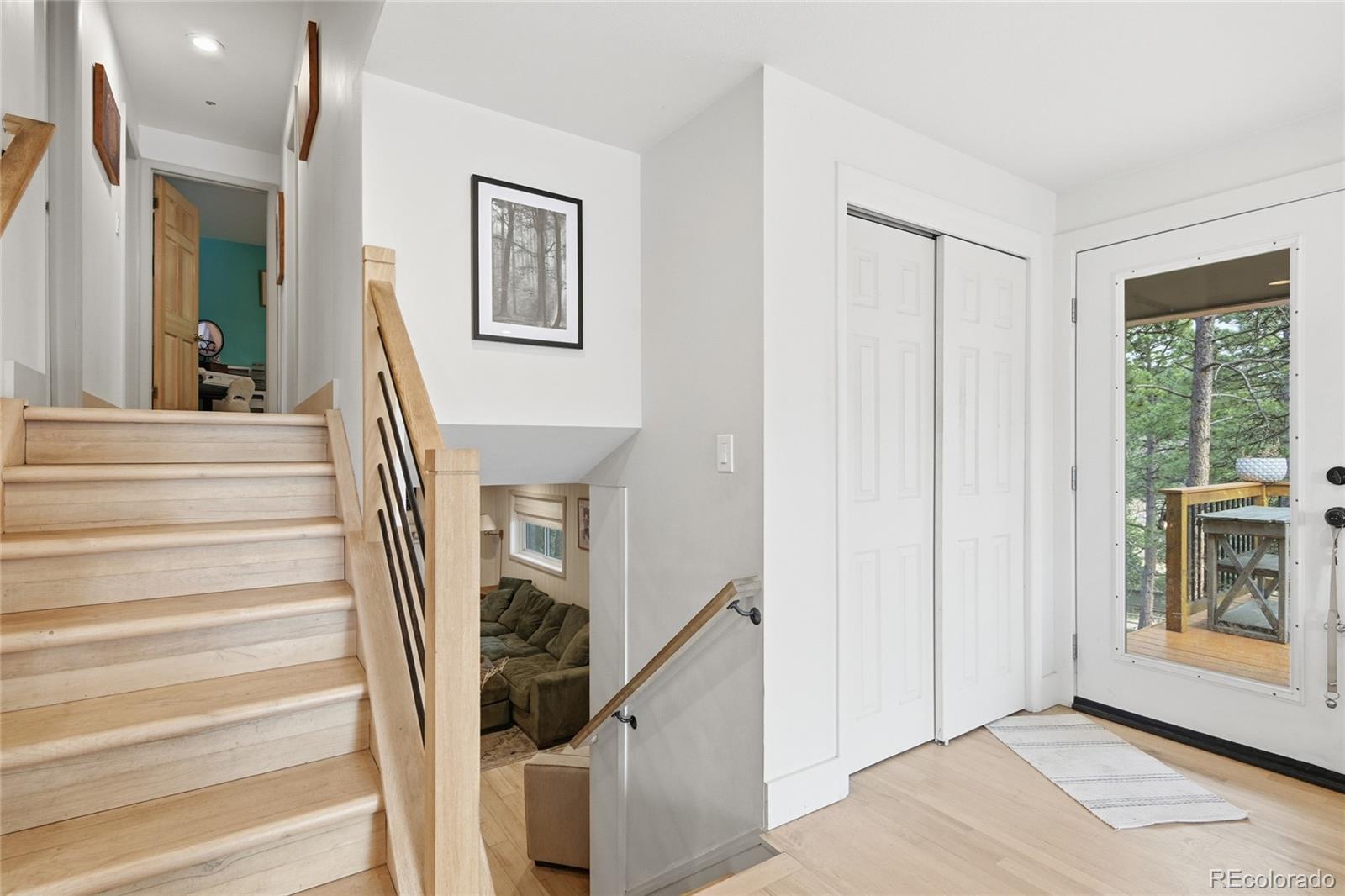 North Turkey Creek Road presents a beautifully renovated mountain retreat that seamlessly combines contemporary features with tranquil Colorado living. Nestled on over an acre of land, this tri-level home boasts breathtaking mountain views. The property includes a spacious 45 x 18 flagstone front patio deck with a wraparound bench and a hot tub for relaxation. Inside, you'll find brand-new windows throughout and hardwood floors on the main level connecting the open-concept kitchen, dining area, and family room with a gas fireplace. The modern kitchen is equipped with premium appliances, including a French door refrigerator, a five-burner all-gas stove, dishwasher, and trash compactor, complemented by new soft-close cabinets and drawers. There's an under-counter sink featuring a reverse osmosis water spigot. Downstairs, the living area showcases a full-wall brick fireplace that burns real wood, creating a cozy atmosphere on snowy days. The game room/living room features exposed wood beams, another gas fireplace, and generous windows framing the forested scenery. Additionally, the property comes with a separate building, perfect for use as a workshop or a home gym. Seller is leaving the Pool Table and Hot Tub - Gym equipment in outer shed is negotiable