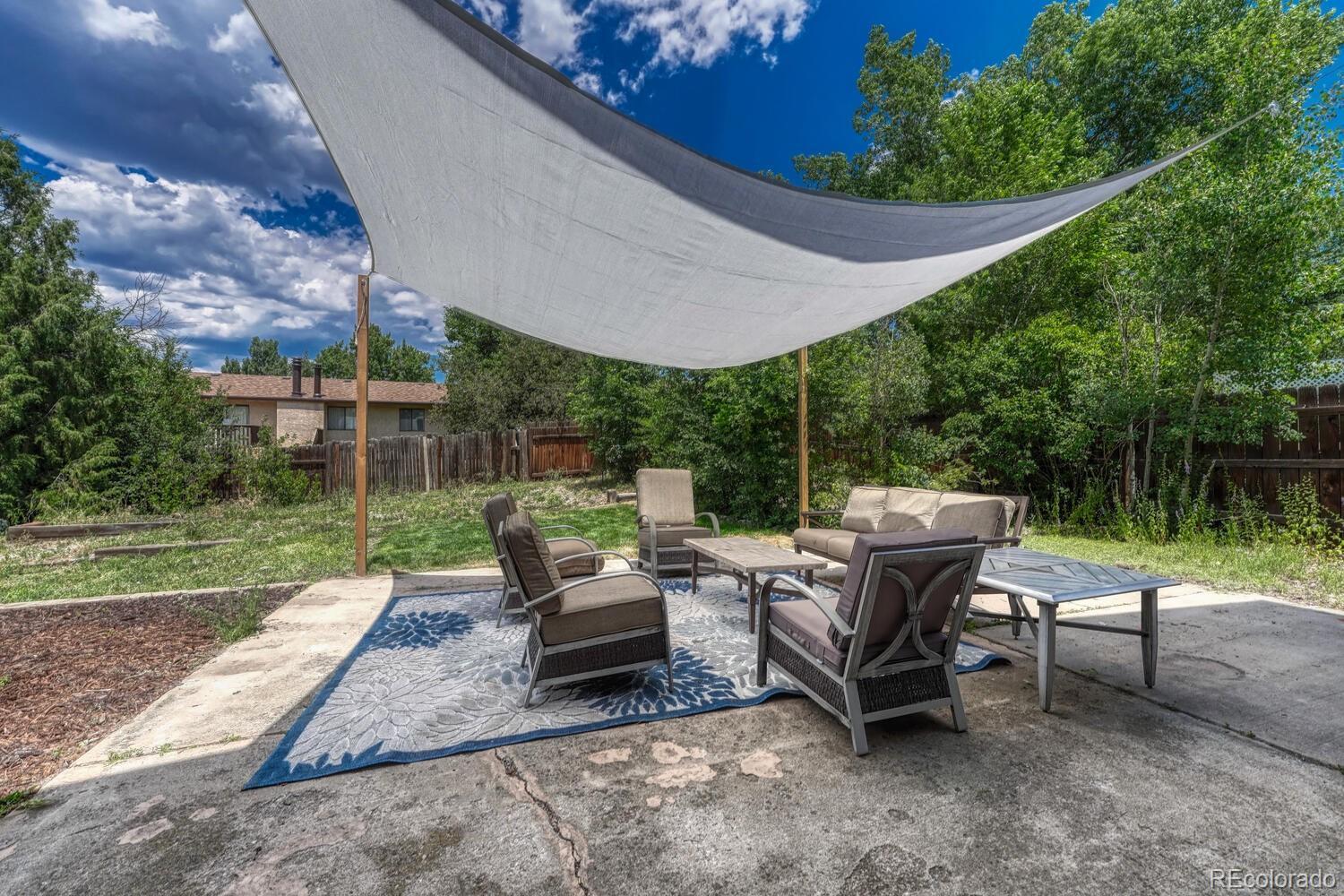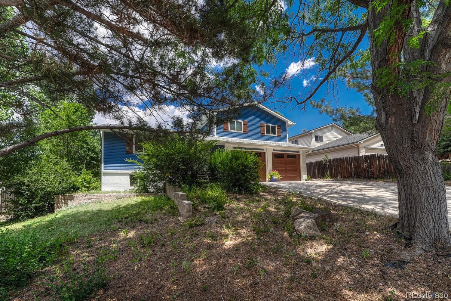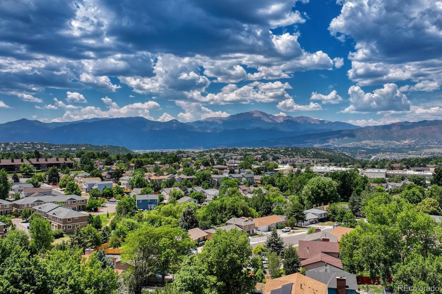 Vista Grande Terrace is a mature treed neighborhood in a convenient location! This updated four-level home offers four bedrooms, three bathrooms, and a two-car attached garage. Roof and siding are brand new, and there are Pikes Peak views from the front and back yards. Treat yourself to this spacious home with new paint, carpet, lighting, and more! Enter to the great room where elegant bamboo floors shine under a stylish vaulted beamed ceiling. Upgraded kitchen features granite counter and backsplash, high quality cabinetry in a light wood tone, and a durable slate floor. Stainless steel appliances, oversized single bowl sink, and pantry storage complete the space. Kitchen sink window overlooks back yard. Family room includes cool patterned ceiling, whitewashed wood burning fireplace, and walk out to back yard. All upper bedrooms have ceiling fans. Primary bedroom has attached ¾ bathroom. Second and third bedrooms are also on the upper level. You’ll love the totally updated full bathroom with decorative tile and vessel sink. Basement bedroom is a large garden level space with lots of natural light, attached ¾ bathroom with fun pearlescent tile, and a large closet. You get double pane vinyl windows throughout the home, and the water heater is new as of 2024. Large back yard provides a covered patio, garden beds, and mountain views! This centrally located, treed neighborhood is great for walking. From the home, it’s just one block to Dublin Park with pavilions, playground, baseball, soccer, volleyball, basketball, and a loop path with benches. East Library is one mile due south. Enjoy incredible outdoor activities at nearby Pulpit Rock Park, Cottonwood Creek Park, and Austin Bluffs Open Space - from hiking and cycling to disc golf, tennis and much more. Cottonwood offers an indoor swimming pool, wave pool, and lazy river too. With this home, you’ll make memories to last a lifetime!