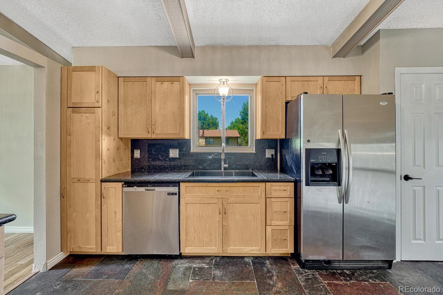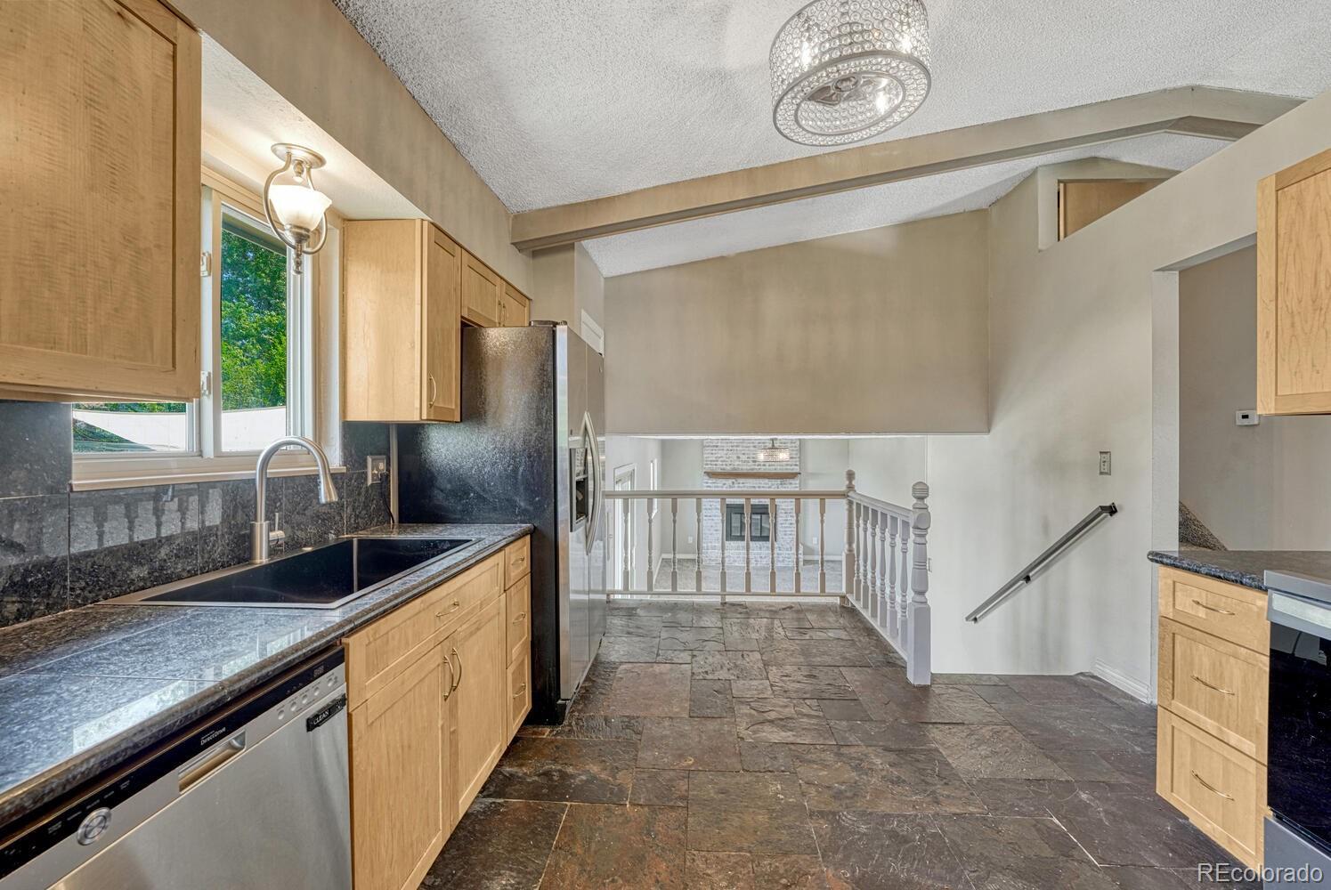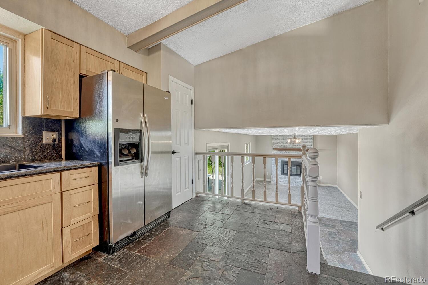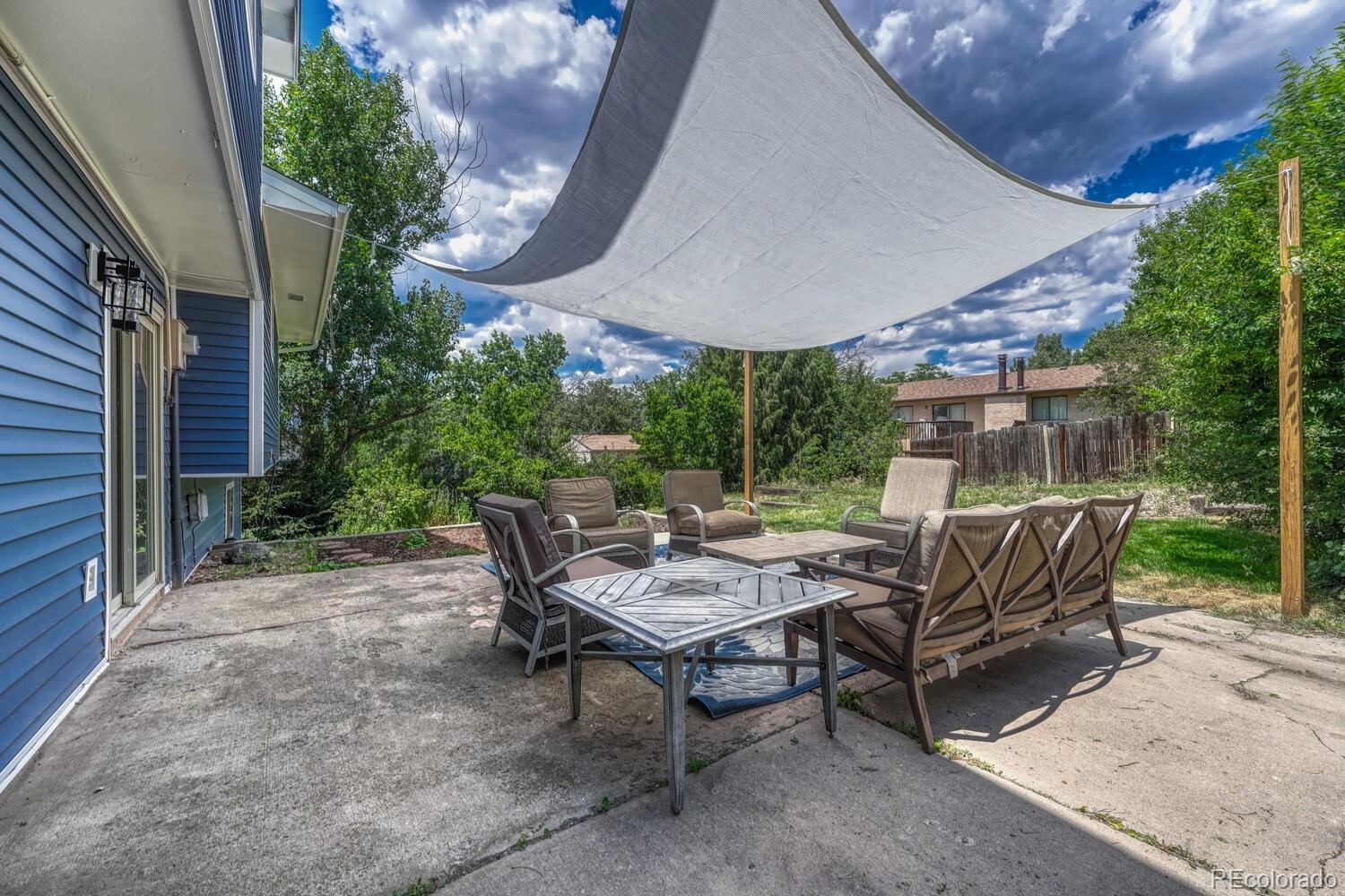 Vista Grande Terrace is a mature treed neighborhood in a convenient location! This updated four-level home offers four bedrooms, three bathrooms, and a two-car attached garage. Roof and siding are brand new, and there are Pikes Peak views from the front and back yards. Treat yourself to this spacious home with new paint, carpet, lighting, and more! Enter to the great room where elegant bamboo floors shine under a stylish vaulted beamed ceiling. Upgraded kitchen features granite counter and backsplash, high quality cabinetry in a light wood tone, and a durable slate floor. Stainless steel appliances, oversized single bowl sink, and pantry storage complete the space. Kitchen sink window overlooks back yard. Family room includes cool patterned ceiling, whitewashed wood burning fireplace, and walk out to back yard. All upper bedrooms have ceiling fans. Primary bedroom has attached ¾ bathroom. Second and third bedrooms are also on the upper level. You’ll love the totally updated full bathroom with decorative tile and vessel sink. Basement bedroom is a large garden level space with lots of natural light, attached ¾ bathroom with fun pearlescent tile, and a large closet. You get double pane vinyl windows throughout the home, and the water heater is new as of 2024. Large back yard provides a covered patio, garden beds, and mountain views! This centrally located, treed neighborhood is great for walking. From the home, it’s just one block to Dublin Park with pavilions, playground, baseball, soccer, volleyball, basketball, and a loop path with benches. East Library is one mile due south. Enjoy incredible outdoor activities at nearby Pulpit Rock Park, Cottonwood Creek Park, and Austin Bluffs Open Space - from hiking and cycling to disc golf, tennis and much more. Cottonwood offers an indoor swimming pool, wave pool, and lazy river too. With this home, you’ll make memories to last a lifetime!
