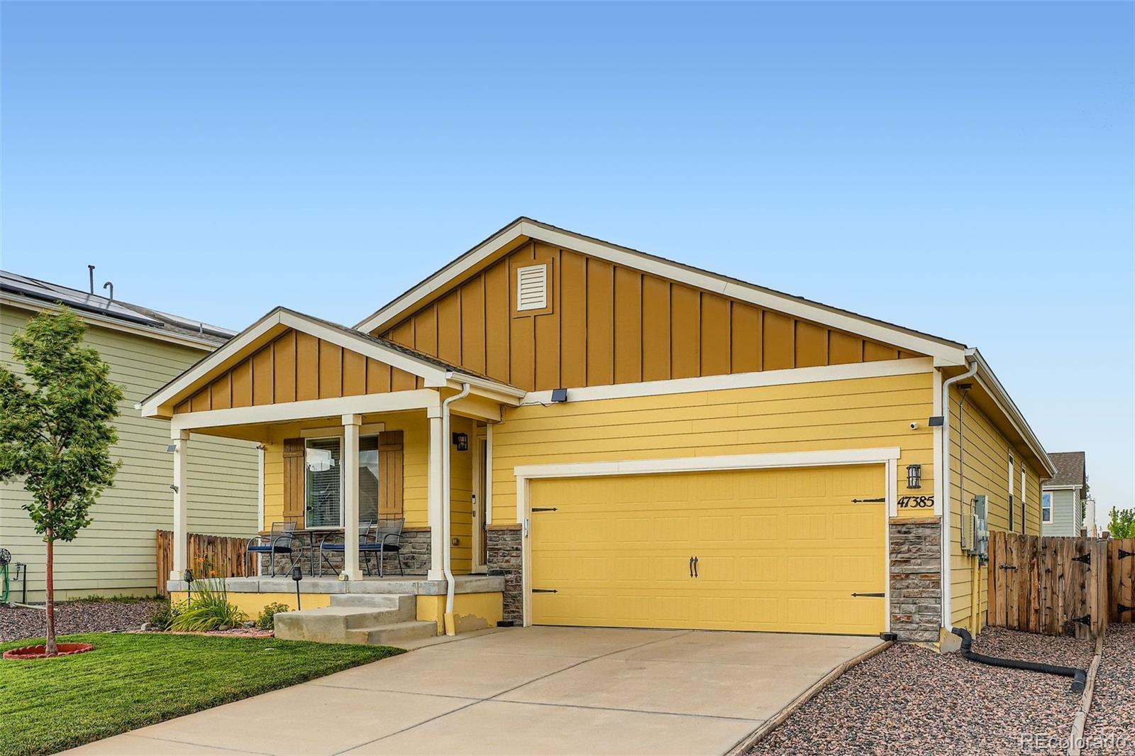 TOP OF THE LINE ENPHASE SOLAR SYSTEM IS COMPLETELY PAID OFF! Very low electricity bills and no lease fees Welcome to this beautifully maintained, move-in-ready ranch home. Designed for easy, main-level living, this bright and open floor plan offers the perfect blend of functionality and modern style. Step onto the charming front porch, ideal for morning coffee or evening relaxation. Inside, you'll find a spacious layout filled with natural light, perfect for both everyday living and entertaining. The low-maintenance design allows you to spend more time enjoying your home and less time on upkeep. A substantially roomy crawl space, fully vapor-barriered and with a height of 5'6" allows for a lot of added storage opportunity. Custom French drains under the home connect to the sump pump and protect the foundation. Enjoy added privacy with a fully fenced yard—perfect for pets, gatherings, or quiet afternoons outdoors. With easy access to I-70, commuting is a breeze while still offering a peaceful, small-town feel. Whether you're a first-time buyer or looking to downsize without compromise, this home checks all the boxes. Don’t miss your opportunity to own a stylish, move-in-ready home in a growing and welcoming neighborhood! Click the Virtual Tour link to view the 3D walkthrough. Discounted rate options and no lender fee future refinancing may be available for qualified buyers of this home. Bennett, Colorado is a thriving and attractive location in the front range with a fabulous future of planned additional community amenities. Check into their website at https://www.bennettco.gov/planning-economic-development/page/master-plans-and-guiding-documents for more details.