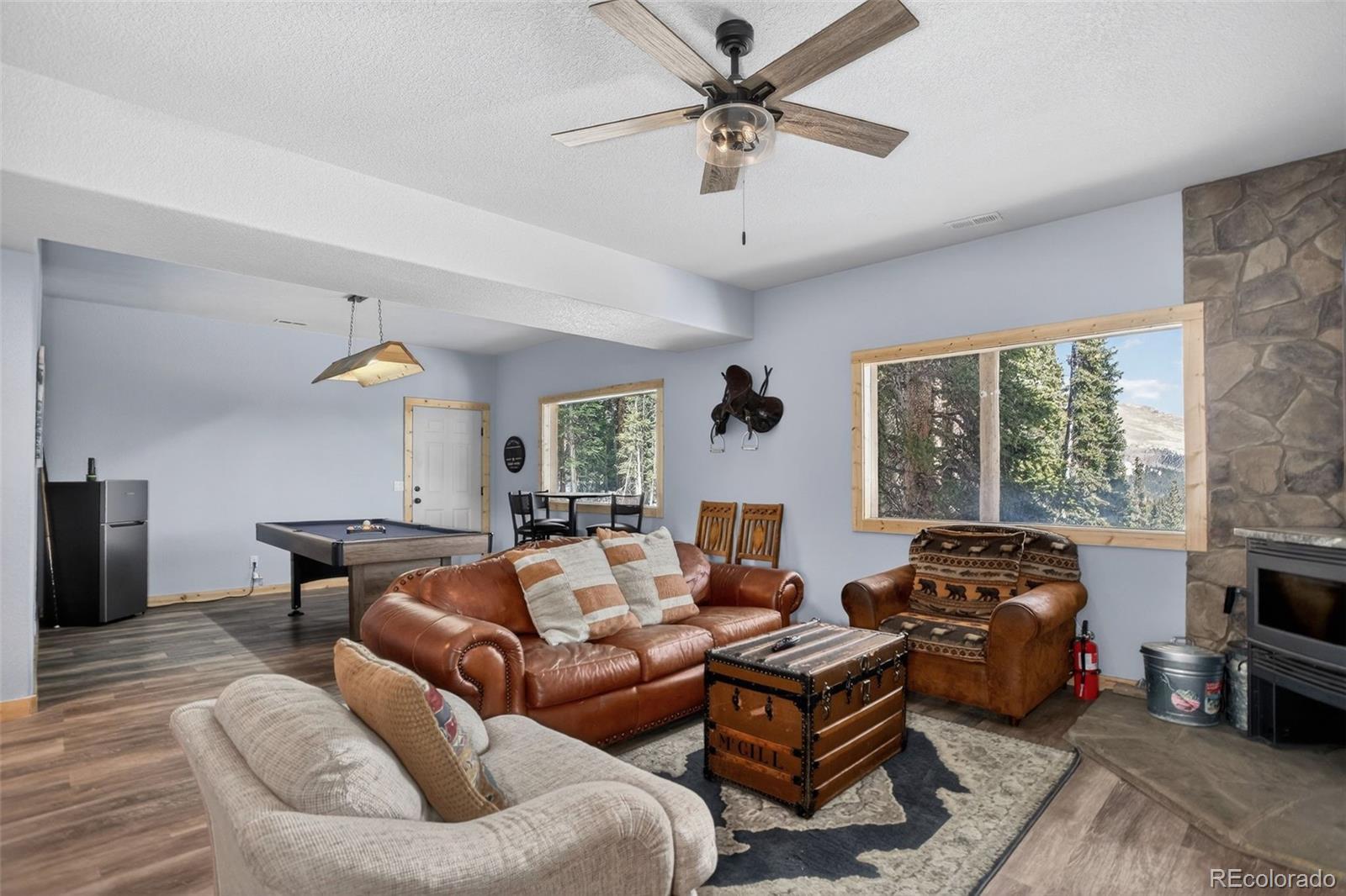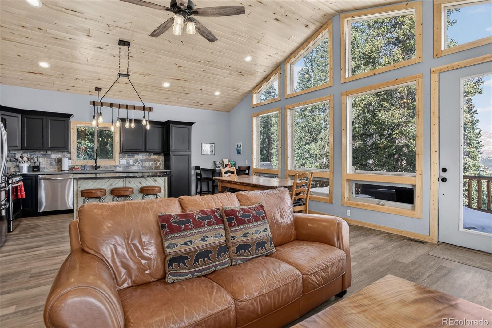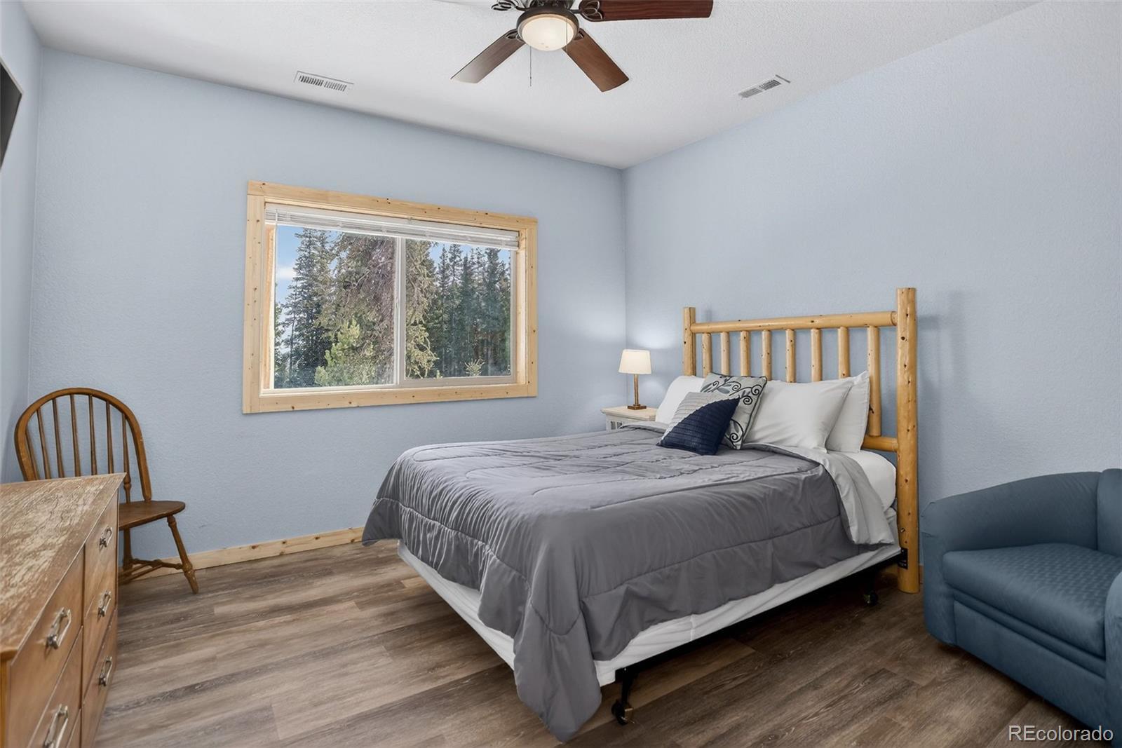 Come to your private mountain retreat in Fairplay CO! Built in 2020, the home shines with pride of ownership throughout. Short term rentals allowed per county guidelines! This charming 3-bedroom, 3-bath raised ranch home sits on 1.12 secluded, wooded acres with abundant wildlife, offering the perfect blend of privacy and convenience. A spacious master bedroom includes a large walk-in closet and a convenient laundry closet with a stacked washer and dryer. The beautifully designed five-piece primary bath completes the master. The main level features a cozy natural-gas log fireplace, and the entry level includes a high-efficiency wood stove for added warmth and comfort. Relax on the expansive 300-plus-square-foot deck and take in the sweeping mountain views. An oversized 2-car garage includes a dedicated utility closet, thoughtfully positioned inside the garage to keep mechanical systems out of the living space. This closet house the forced-air furnace, water pressure tank and instant hot water heater. Enjoy year-round adventure! Park County truly is a Park for all seasons. Cross country skiing, snowshoeing, hiking, biking, hunting, Gold Medal fishing streams and boating reservoirs, UTV and 4-wheel drive trails. Whatever your outdoor passions, you will find it nearby. Frequent music events and festivals for that small town community feel! Only about 40 minutes to Breckenridge Ski Area! The owners' closet under the stairway will be locked for showings, but all furniture throughout the home is negotiable with the sale!