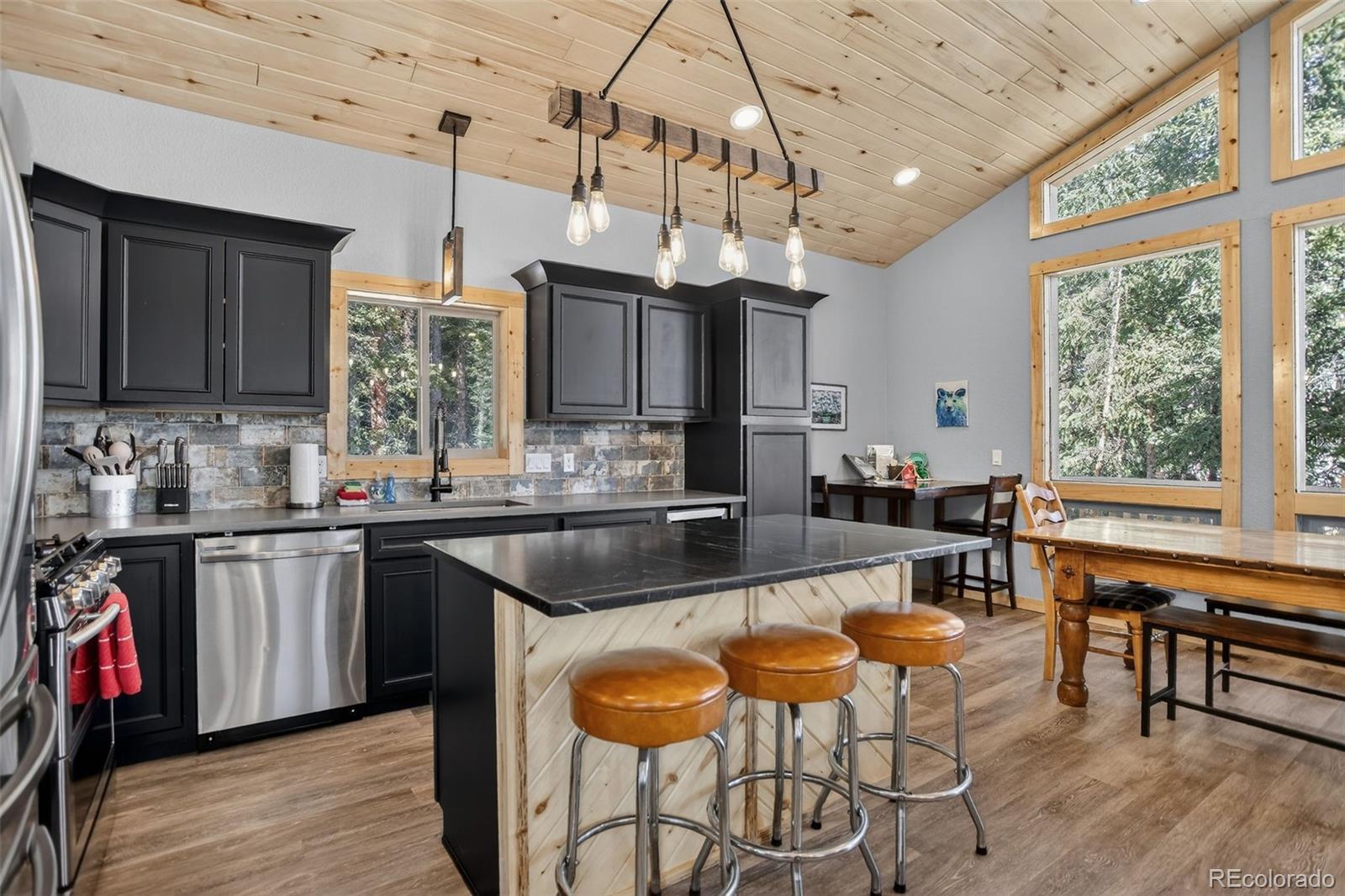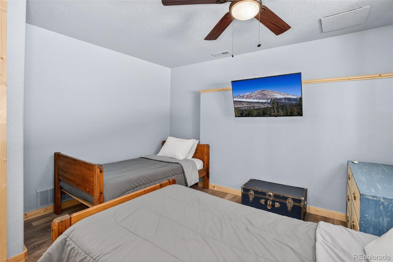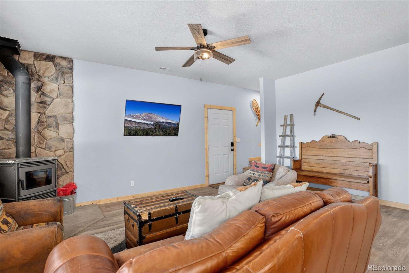 Come to your private mountain retreat in Fairplay CO! Built in 2020, the home shines with pride of ownership throughout. Short term rentals allowed per county guidelines! This charming 3-bedroom, 3-bath raised ranch home sits on 1.12 secluded, wooded acres with abundant wildlife, offering the perfect blend of privacy and convenience. A spacious master bedroom includes a large walk-in closet and a convenient laundry closet with a stacked washer and dryer. The beautifully designed five-piece primary bath completes the master. The main level features a cozy natural-gas log fireplace, and the entry level includes a high-efficiency wood stove for added warmth and comfort. Relax on the expansive 300-plus-square-foot deck and take in the sweeping mountain views. An oversized 2-car garage includes a dedicated utility closet, thoughtfully positioned inside the garage to keep mechanical systems out of the living space. This closet house the forced-air furnace, water pressure tank and instant hot water heater. Enjoy year-round adventure! Park County truly is a Park for all seasons. Cross country skiing, snowshoeing, hiking, biking, hunting, Gold Medal fishing streams and boating reservoirs, UTV and 4-wheel drive trails. Whatever your outdoor passions, you will find it nearby. Frequent music events and festivals for that small town community feel! Only about 40 minutes to Breckenridge Ski Area! The owners' closet under the stairway will be locked for showings, but all furniture throughout the home is negotiable with the sale!