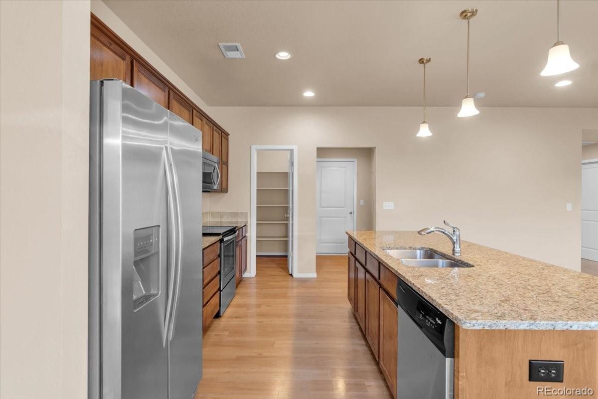 Welcome to 3007 Benfold Street, a beautifully crafted home built in 2014, offering 2,327 sq ft of living space on a peaceful corner lot that backs to a scenic greenbelt. This coveted Northwest Loveland location is steps from Mahaffey Park and a network of hiking trails, making it an ideal sanctuary for outdoor enthusiasts. Step onto the front porch and take in sweeping views of the Front Range mountains—a striking backdrop that enhances your morning coffee or evening unwind time. Inside, discover a versatile floor plan featuring a main-level study/office, vaulted ceilings, and an open layout that creates a warm, airy atmosphere throughout. The kitchen is a focal point of both style and function, with granite countertops, a large center island, and abundant cabinetry ideal for everyday living and entertaining. Upstairs, the flexible loft space (which could serve as a fourth bedroom), upper-level laundry, and generous primary suite add value and equal consideration for modern lifestyles. Backyard living shines with a landscaped yard and a covered patio, perfect for outdoor meals, entertaining, or just enjoying the tranquility and views of the greenbelt. The front yard maintenance is handled by the HOA, letting you enjoy your surroundings without the upkeep. When it’s time to run errands or shop, you're conveniently located near the Promenade Shops at Centerra, a premier open-air retail center offering dozens of shops and restaurants—from home goods to casual dining—and also steps away from national retail destinations like Target, all within a few minutes’ drive. Complete with a two-car attached garage, central air conditioning, and easy access to schools, parks, and trails, 3007 Benfold Street offers the perfect synthesis of mountain serenity and suburban convenience. Schedule your private showing today and embrace a lifestyle where nature and neighborhood align beautifully!