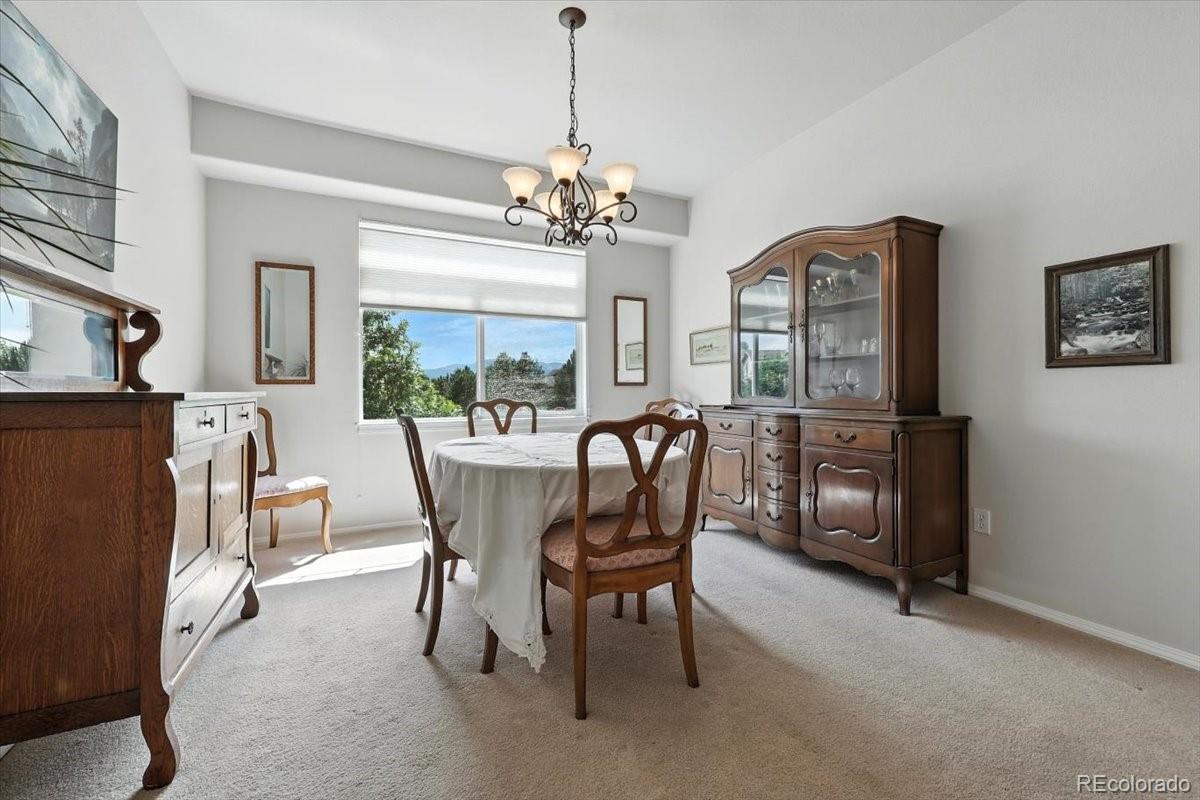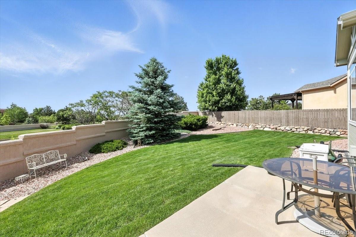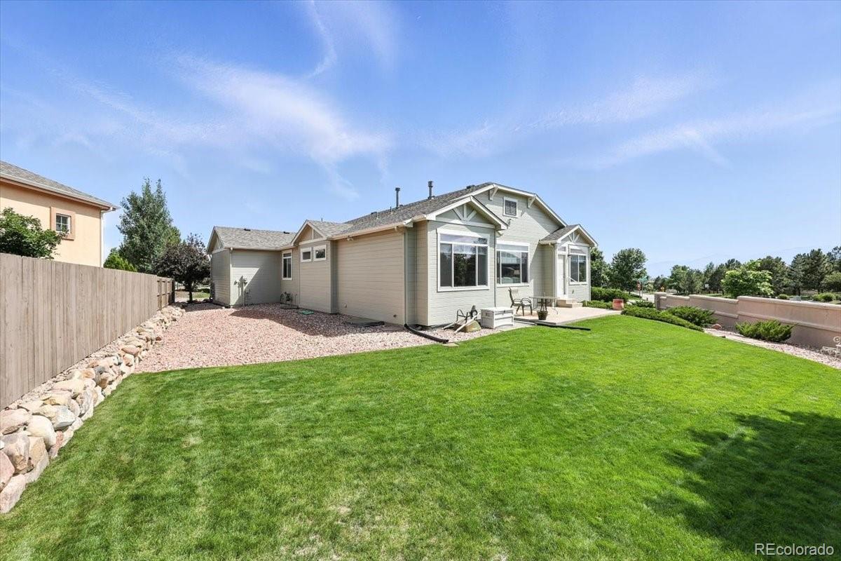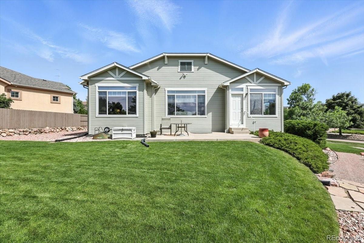 Welcome to this beautifully maintained 5-bedroom, 3-bath ranch-style home in the highly sought-after Pine Creek neighborhood. This spacious and light-filled home offers main-level living at its finest, with an open-concept floor plan, soaring ceilings, and large windows that fill the space with natural light. The gourmet kitchen features granite countertops, a center island, and ample cabinet space—perfect for both everyday living and entertaining. The main-level primary suite includes a spa-like bath with a soaking tub, separate shower, dual vanities, and a generous walk-in closet. The finished basement offers expansive additional living space with two bedrooms, a full bath, and a large family or rec room ideal for movie nights, a gym, or a home office. Enjoy Colorado evenings from your private back patio or landscaped yard with mountain views. Located in District 20 and close to trails, parks, shopping, and golf at Pine Creek Golf Club, this home combines comfort, convenience, and timeless style.