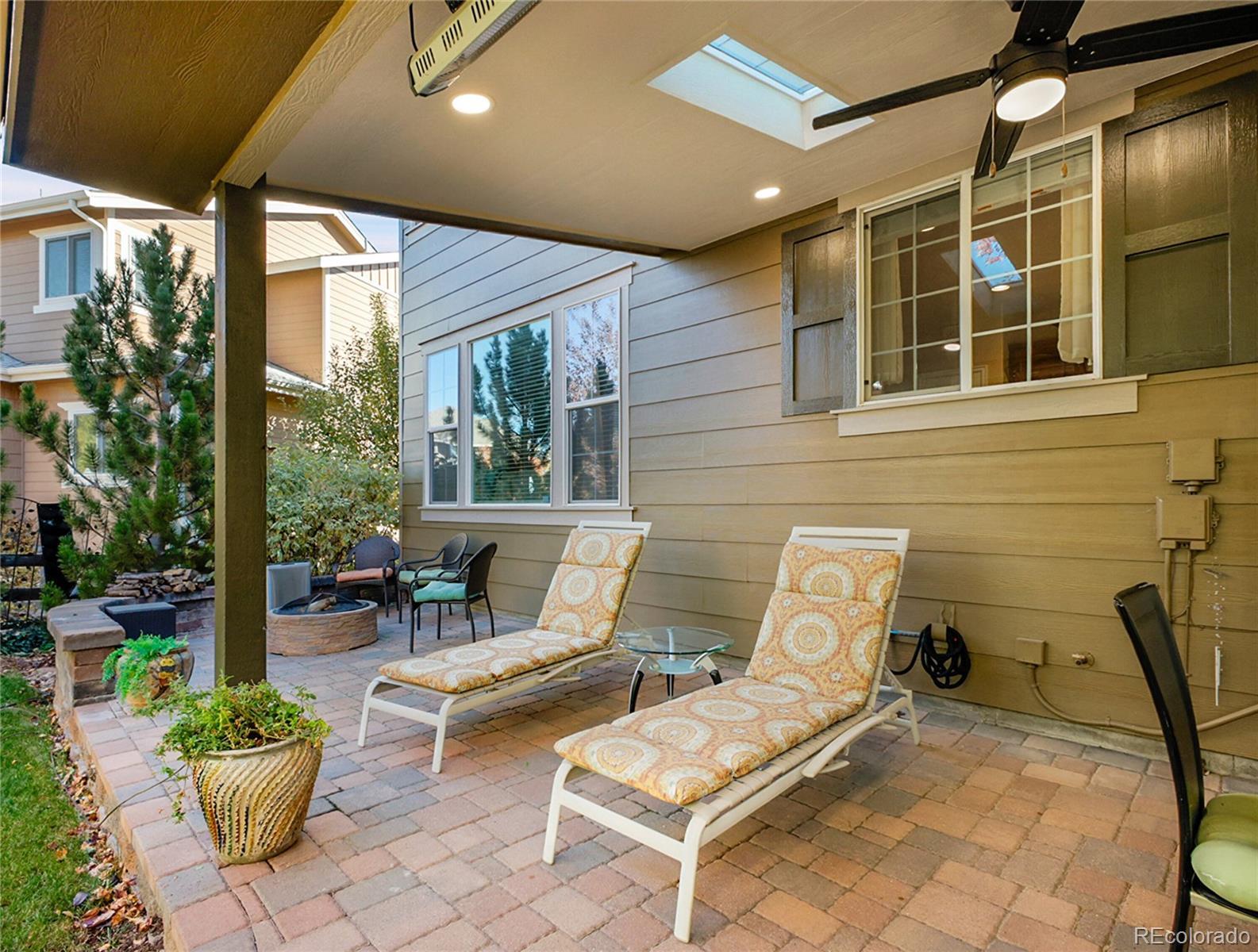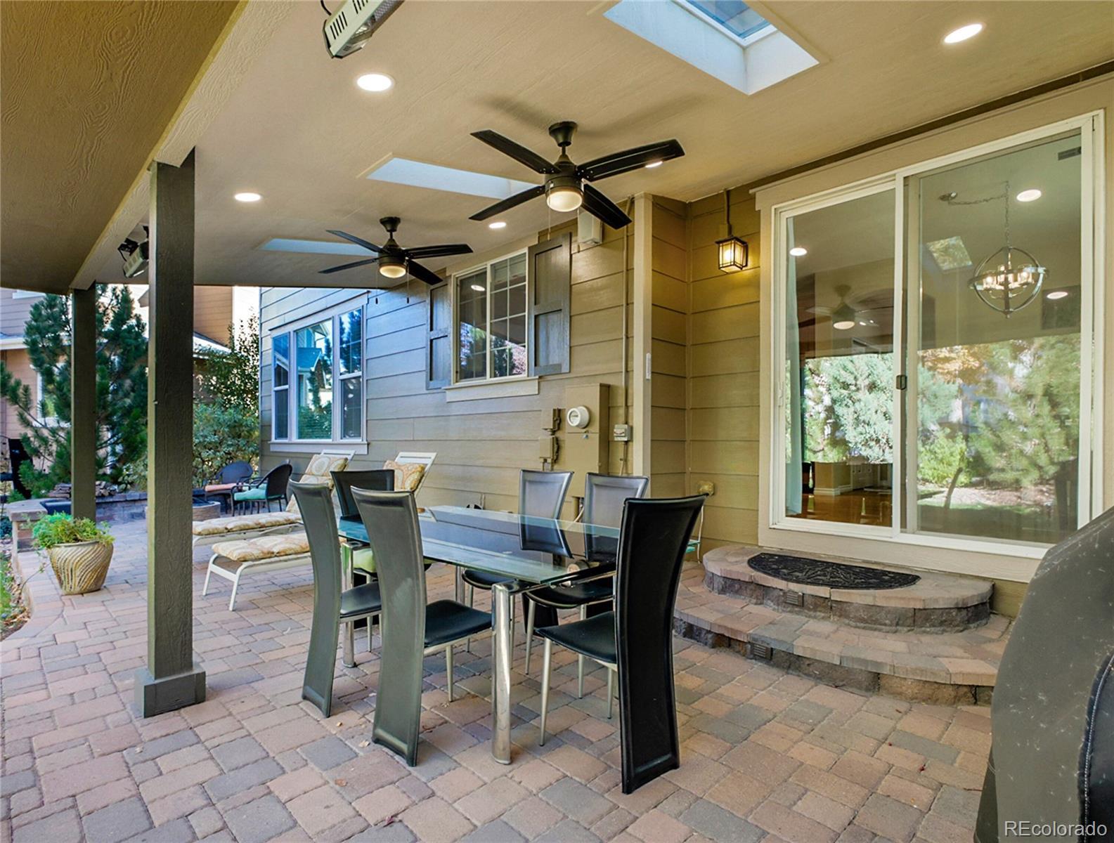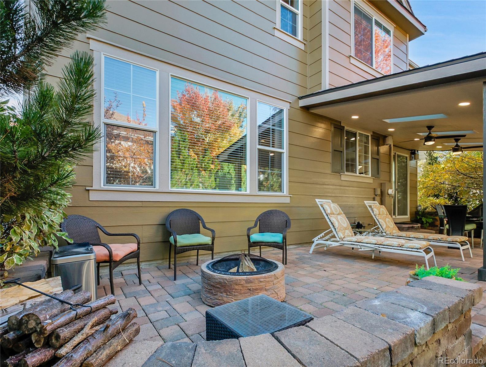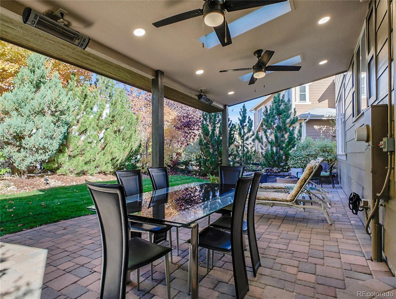 Welcome to this beautifully updated 4-bedroom home with a study, loft, and gym that perfectly blends modern comfort, timeless style, and quality craftsmanship. The exterior features a new Owens Corning Duration Storm Impact-Resistant Class 4 roof and gutters (2023), fresh Sherwin-Williams Duration exterior paint (2023), and eight new Andersen 100 Series energy-efficient windows (2023) that fill the home with natural light. Step outside to enjoy the professionally built covered patio (2021), complete with built-in heaters, skylights, a full sound system, dimmable lighting, and ceiling fans—ideal for entertaining year-round. The home is surrounded by mature, beautifully maintained landscaping and includes irrigation control valves and a backflow preventer (2025). Inside, warmth and character greet you at every turn. Hand-scraped Acacia ¾-inch real hardwood floors and custom-finished stairways (2019) add timeless charm, while designer light fixtures (2015) create a welcoming glow throughout. The upper level features new stain-resistant carpet with a premium ½-inch pad (2023), and the primary suite offers a beautifully updated glass shower (2022) for a spa-like touch. Recent system upgrades include a high-efficiency Bosch heat pump HVAC system (2024) and a newer water heater (2018). Every room is wired for high-speed internet (Xfinity and Ting), and both the living room and covered patio include a built-in sound system that will stay with the home—perfect for entertainment, work, and everyday living. The garage features durable epoxy flooring and generous overhead storage. Located in one of the area’s most desirable neighborhoods within the Cherry Creek School District, this home is proudly zoned for Cherry Creek High School and Campus Middle School, with easy access to Cherry Creek State Park, shopping, and restaurants, close to DTC .