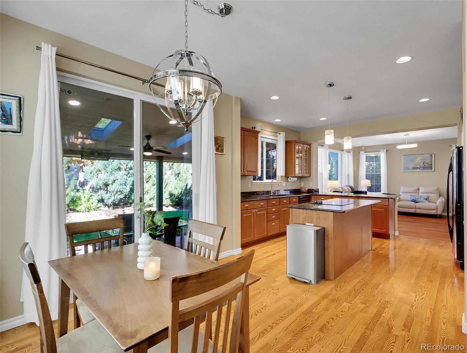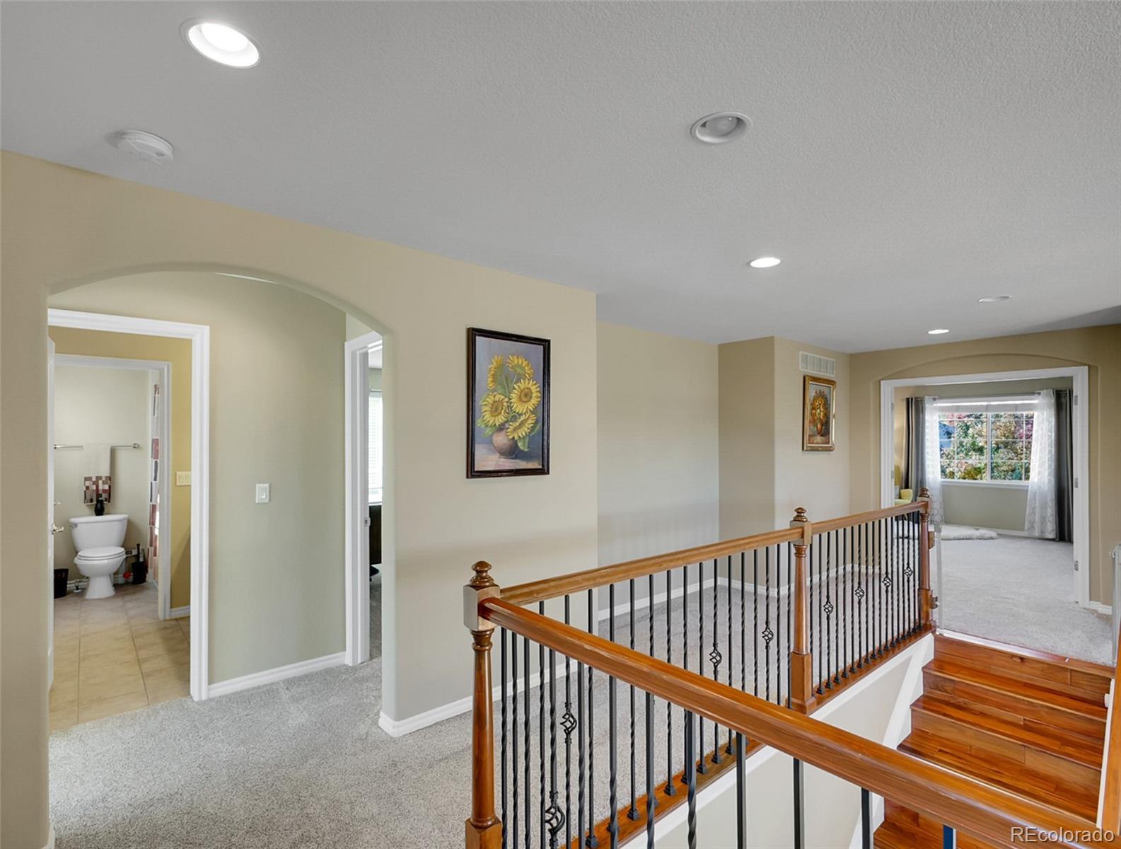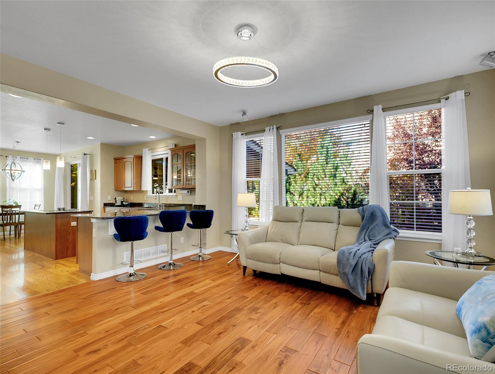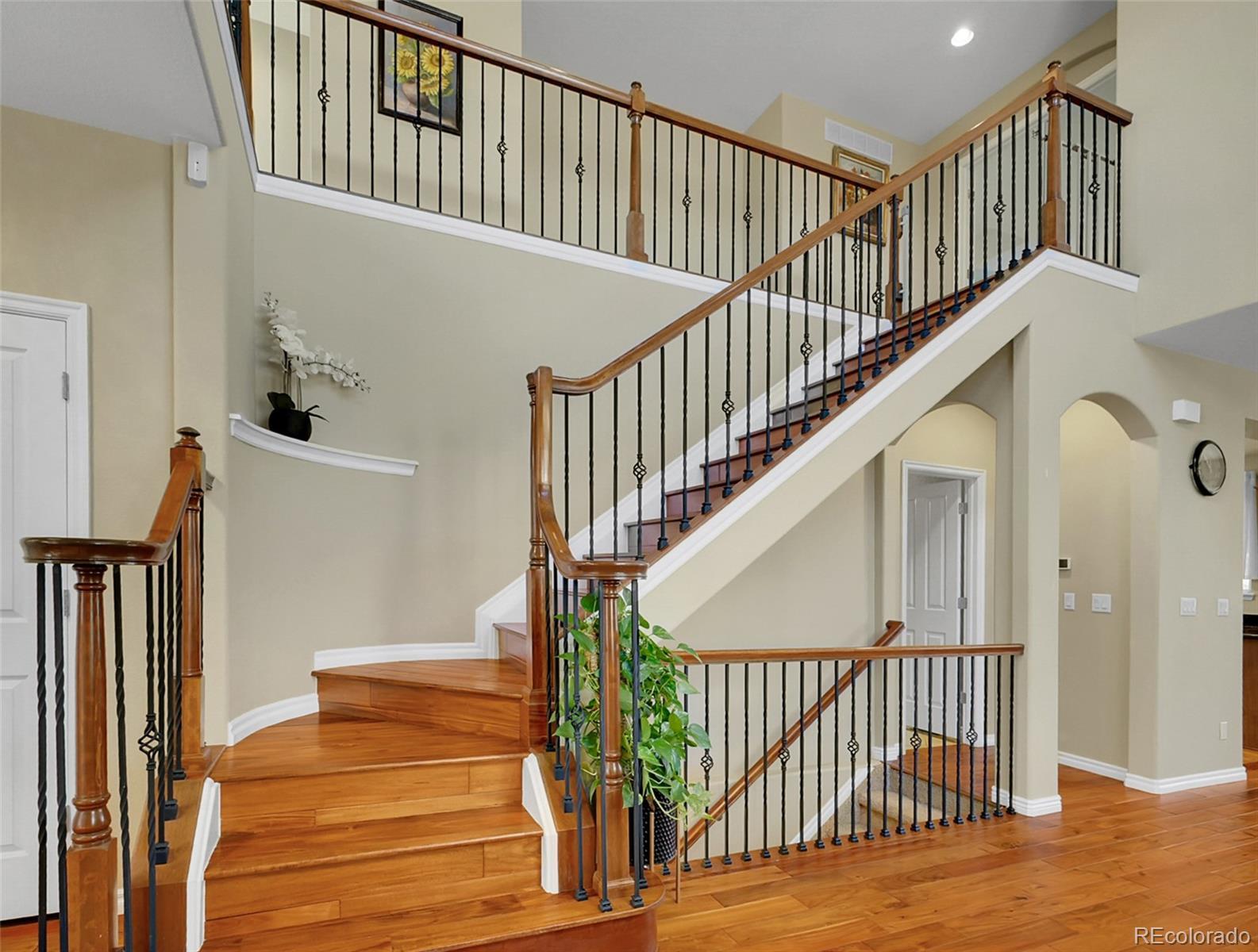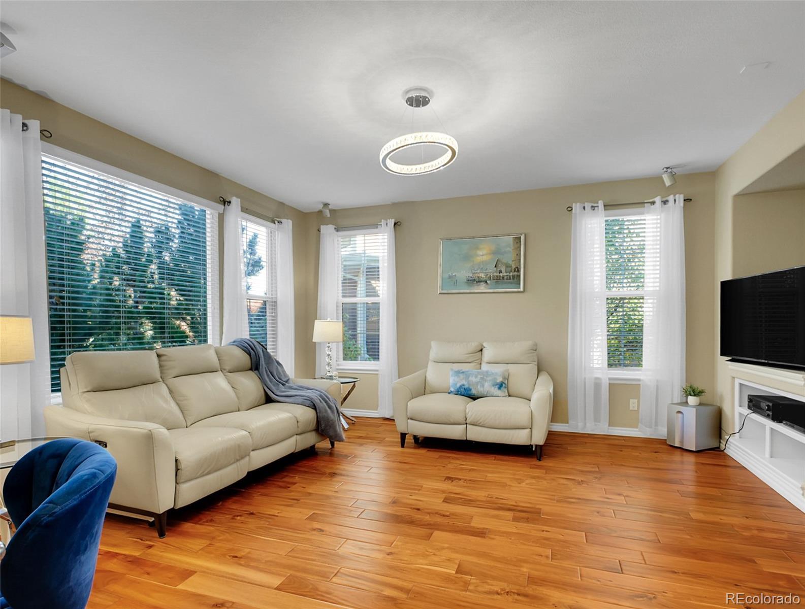 Welcome to this beautifully updated 4-bedroom home with a study, loft, and gym that perfectly blends modern comfort, timeless style, and quality craftsmanship. The exterior features a new Owens Corning Duration Storm Impact-Resistant Class 4 roof and gutters (2023), fresh Sherwin-Williams Duration exterior paint (2023), and eight new Andersen 100 Series energy-efficient windows (2023) that fill the home with natural light. Step outside to enjoy the professionally built covered patio (2021), complete with built-in heaters, skylights, a full sound system, dimmable lighting, and ceiling fans—ideal for entertaining year-round. The home is surrounded by mature, beautifully maintained landscaping and includes irrigation control valves and a backflow preventer (2025). Inside, warmth and character greet you at every turn. Hand-scraped Acacia ¾-inch real hardwood floors and custom-finished stairways (2019) add timeless charm, while designer light fixtures (2015) create a welcoming glow throughout. The upper level features new stain-resistant carpet with a premium ½-inch pad (2023), and the primary suite offers a beautifully updated glass shower (2022) for a spa-like touch. Recent system upgrades include a high-efficiency Bosch heat pump HVAC system (2024) and a newer water heater (2018). Every room is wired for high-speed internet (Xfinity and Ting), and both the living room and covered patio include a built-in sound system that will stay with the home—perfect for entertainment, work, and everyday living. The garage features durable epoxy flooring and generous overhead storage. Located in one of the area’s most desirable neighborhoods within the Cherry Creek School District, this home is proudly zoned for Cherry Creek High School and Campus Middle School, with easy access to Cherry Creek State Park, shopping, and restaurants, close to DTC .
