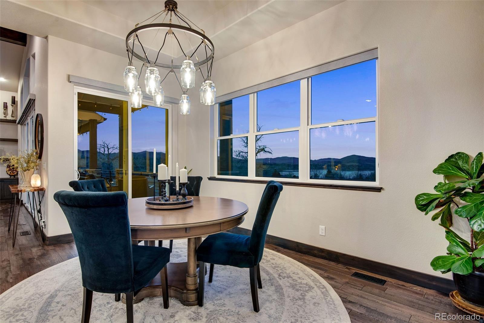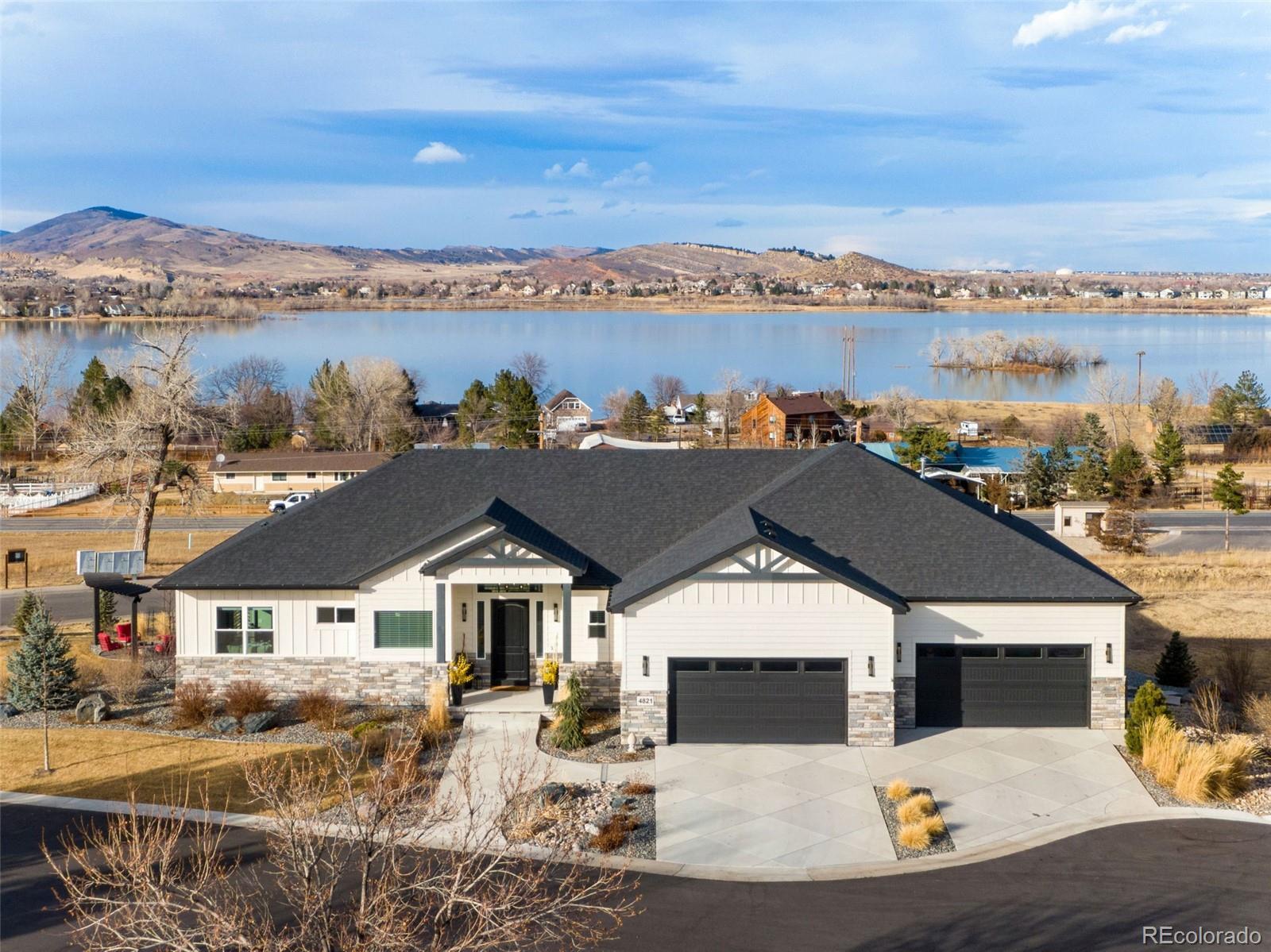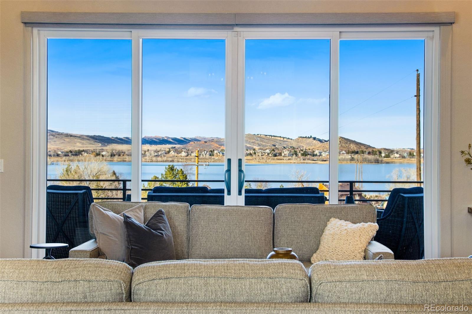 Open House Sat 21st and Sun 22nd, 12-3PM. Come see why Loveland, CO is frequently voted as one of the best places to live or retire in America. Known as the City of Love, Loveland is the gateway to Estes Park and Rocky Mountain National Park, and offers outstanding restaurants, entertainment, breweries, community festivities, trails, parks, and recreation. Incredible Boedecker Lake and Rocky Mountain views. This home offers luxury living at its finest and you can enjoy nature and wildlife from nearly every window. This custom-built ranch style property offers something for everyone with over 5,400 total square feet. 5 beds, 5 baths and an oversized 4 car finished garage with southern exposure for plenty of natural snow melt. The main floor features a split floor plan with an expansive primary bedroom taking the entire east wing. Both guest bedrooms are spacious and feature private baths and patio access. The gourmet kitchen features a walk-in pantry, stainless steel appliances, 5-burner gas range, double ovens, pot-filler, granite slab countertops and a center island with breakfast bar. Large dining area overlooks the open space and lake. The primary suite with retreat features a large walk-in closet plus a 5-piece luxury bath with oversized shower and freestanding clawfoot tub. The family room offers spectacular views, vaulted ceilings, and a gas fireplace with floor to ceiling stone. The walk-out basement features 9' ceilings, 2 additional bedrooms (one currently used as an office), media corner, billiard room, wet bar, and plenty of storage. The oversized covered and uncovered patio features Trex decking, iron railing, and landscape lights. Additional features include central A/C, 2 40-gallon water heaters, active radon system, wood-burning fire-pit with pergola, sprinkler and drip system, hardwood floors, high-end light fixtures, humidifier, and so much more. For a full list of features, floor plan, or to schedule a showing, please contact the listing brokers.