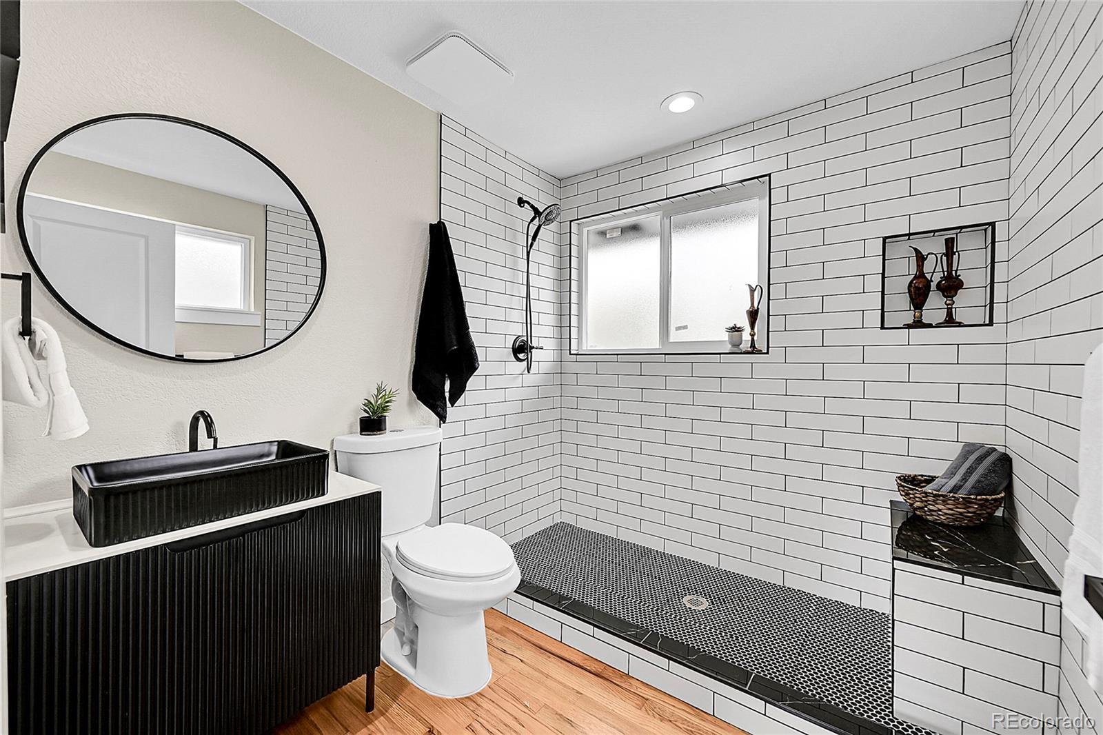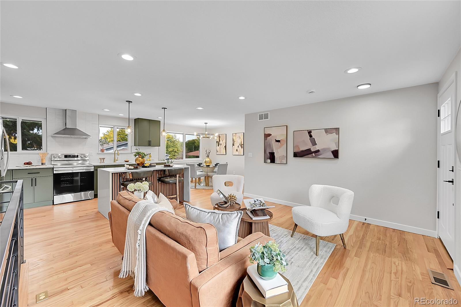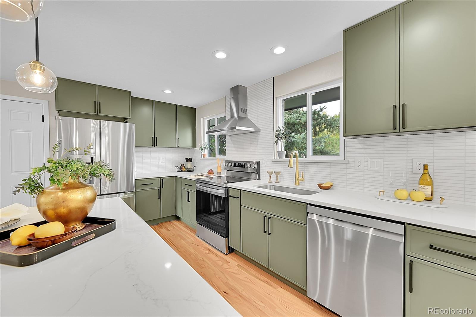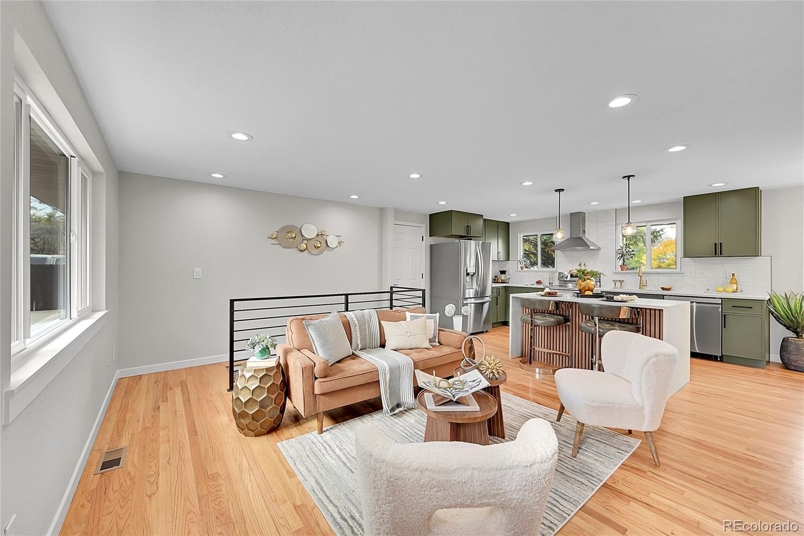 Beautifully updated and on a generous corner lot, this 5-bedroom, 3-bath residence in Denver’s desirable Berkley neighborhood is ready to impress! A wide front porch welcomes you into the bright, 2,000 sq ft interior, featuring an open-concept layout with wood-style flooring, recessed lighting, refined millwork, and soothing neutral hues. Seamlessly flowing from the living and dining areas, your entertainer’s kitchen shines with a pendant-lit waterfall island, abundant cabinetry, and stainless steel appliances. On the main level, two comfortable bedrooms each enjoy access to stylishly appointed baths. The walkout basement offers a relaxing family room and three additional retreats. Glass sliders open to an expansive concrete patio, ideal for weekend BBQs and outdoor activities. A fenced upper yard shaded by mature trees creates an inviting escape for conversation and cocktails. With laundry hookups, an attached one-car garage, RV parking, and dual driveways, this home combines convenience with serenity. With its proximity to I-25, I-70, public transit, parks, schools, and restaurants, you’re also just a short drive from all downtown Denver offers. Come see where your next chapter could unfold!