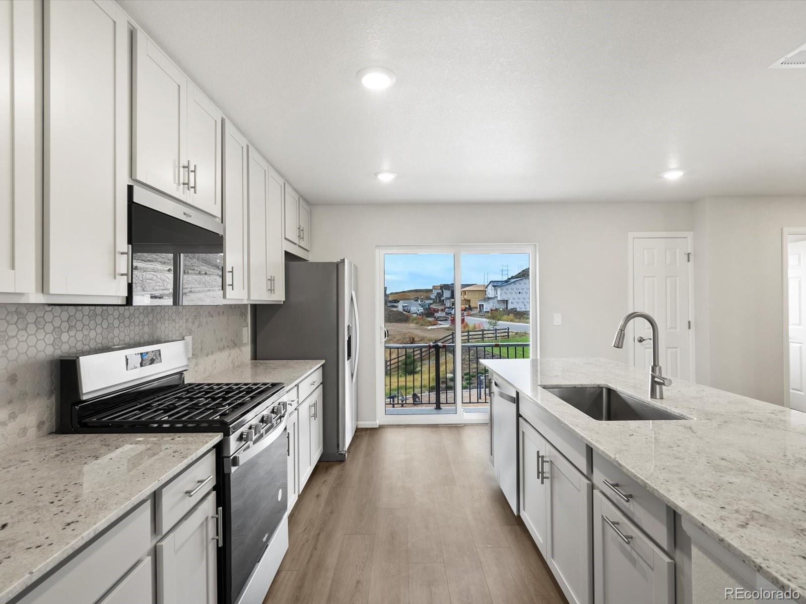 Introducing the Cameron! This sophisticated 3-bedroom, 3.5-bathroom home offers a luxurious living experience and a main floor office. Revel in the Colorado experience from the private rooftop deck, a perfect retreat. Inside, discover a seamless blend of style and functionality with gray shaker cabinets and luxury vinyl planking in the kitchen and great room. The kitchen dazzles with a honeycomb backsplash and granite countertops. Experience the epitome of comfort and design in the Cameron floorplan – your oasis with a view. Home expected to be complete in the long-awaited Three Hills community of Morrison this Summer. Close to Downtown Denver & Morrison, Red Rocks Amphitheatre, and nearby Soda and Bear Creek Lakes.