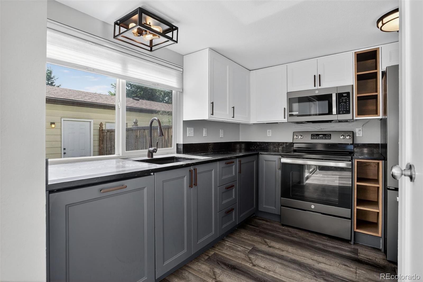 3 bedrooms, 2 bathrooms, a fenced yard and 2-car garage, this one has it all!! Welcome to this beautifully updated townhome located in the highly sought-after Mission Viejo community within the Cherry Creek School District. Tucked away in a quiet, tree-lined setting with a peaceful greenbelt out front, this home offers serenity and convenience in one perfect package. This stylish, renovated interior will impress with a fully remodeled kitchen that features quartz countertops, stainless steel appliances, and modern luxury vinyl plank flooring throughout the main level. The updated powder room is accented with sleek tile work, and the main-level laundry adds ease to your daily routine. Enjoy your own private fenced courtyard, leading to a detached 2-car garage—ideal for storage and parking! Relax on your private patio and enjoy the extra privacy provided by the privacy fence. Upstairs, you'll find newer carpet, three bright and spacious bedrooms, and an updated full bath featuring natural light from a large window. One bedroom has LVP flooring making it ideal for a home office! This well-maintained community is known for its lush greenbelts and walking paths. You're just a short walk from Mission Viejo Park, offering playgrounds, sports fields, picnic areas, and scenic trails. Outdoor enthusiasts will love being just minutes from Cherry Creek State Park, with endless options for biking, hiking, and water activities. This home is conveniently located near an abundance of shopping, dining, entertainment and much more. Cherry Creek Schools!!! Don't wait to see this amazing townhome, it's ready for a new owner now!