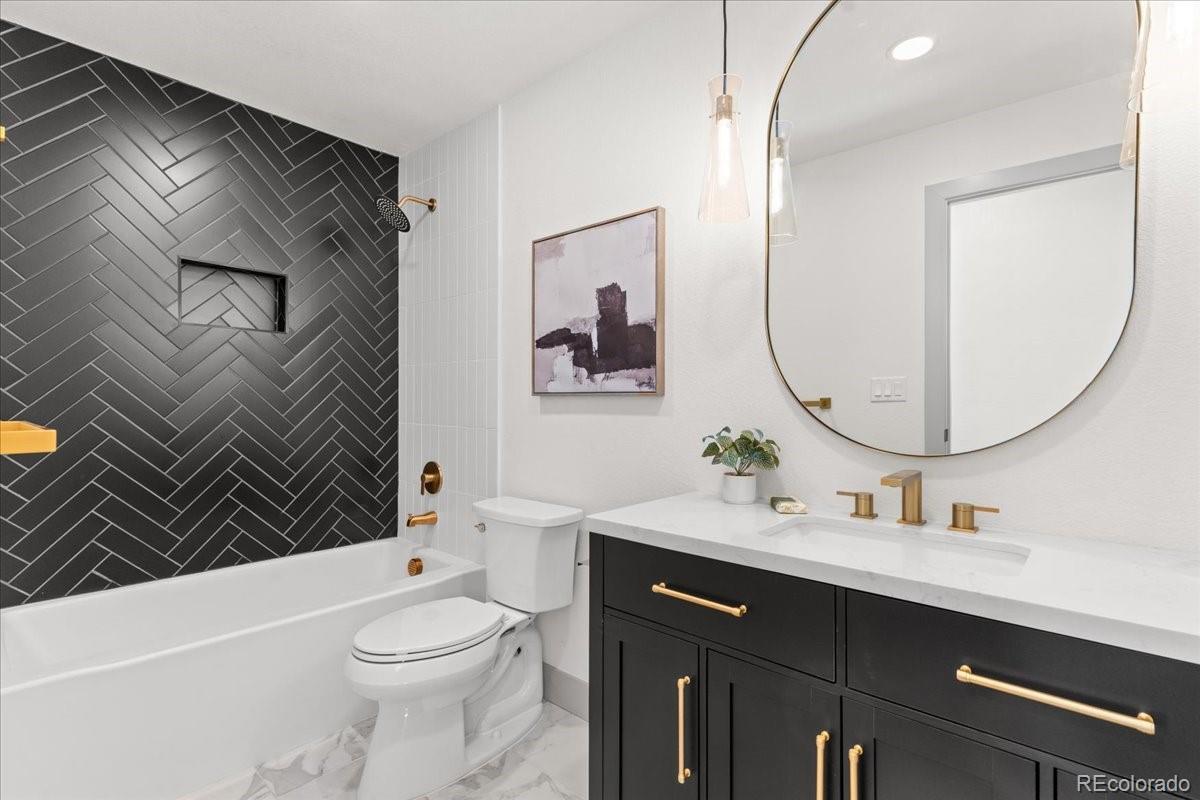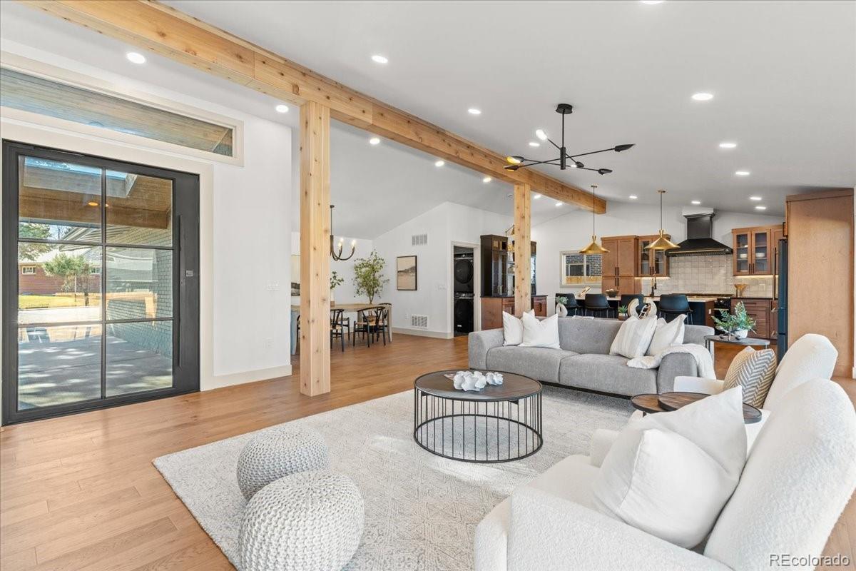 This home is a rare find; a fully renovated and fully permitted true mid-century modern ranch. This house has that cool factor and is located in Southern Hills with the top-rated Slavens K-8 school! From top to bottom this home has been thoughtfully converted into a modern space that greets you as soon as you walk through the 4’x8’ steel pivot door. Upon entry you will feel the vastness of the open floor plan and vaulted ceilings. Every detail has been intentionally planned out and built with fine craftsmanship. Nearly everything in the home is new! There are even upgrades you cannot see to meet modern efficiency standards like all new spray foam ceiling insulation and mid-floor insulation for sound control. Also NEW: drywall, sewer line, all new plumbing, all new electric including a new panel, all fixtures outlets and switches, HVAC systems are all new including high efficiency furnace and smart AC unit, all new real hardwood flooring, carpet and porcelain tile, interior and exterior doors with all new trim, windows (except for upstairs bedrooms), European style tilt/turn basement egress windows, new garage door, kitchen cabinets with backsplash, vanities, quartz counter tops, closets systems, Fridge, 48” gas range with a statement piece range hood, dishwasher, microwave drawer, mini fridge, garbage disposal with air switch, washer, dryer, utility sink, high efficiency tankless water heater for endless hot water. On the exterior; new concrete approach walk, rear walk and side patio, new sod and landscaping, cedar fence, cedar entrance ceiling, epoxy garage floor and all new exterior lighting. The irrigation system is rebuilt and has a new timer box. New gas meter and water meter. The roof has a certified 5-year warranty that transfers with the house. Upgraded black appliances, huge 12’ multi position collapsible rear sliding door that creates an unforgettable indoor outdoor space with back deck. The front horseshoe driveway adds elegant convenance and style. Enjoy