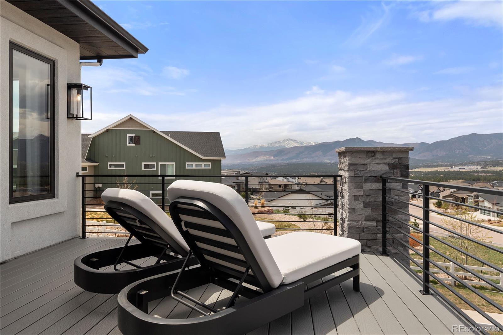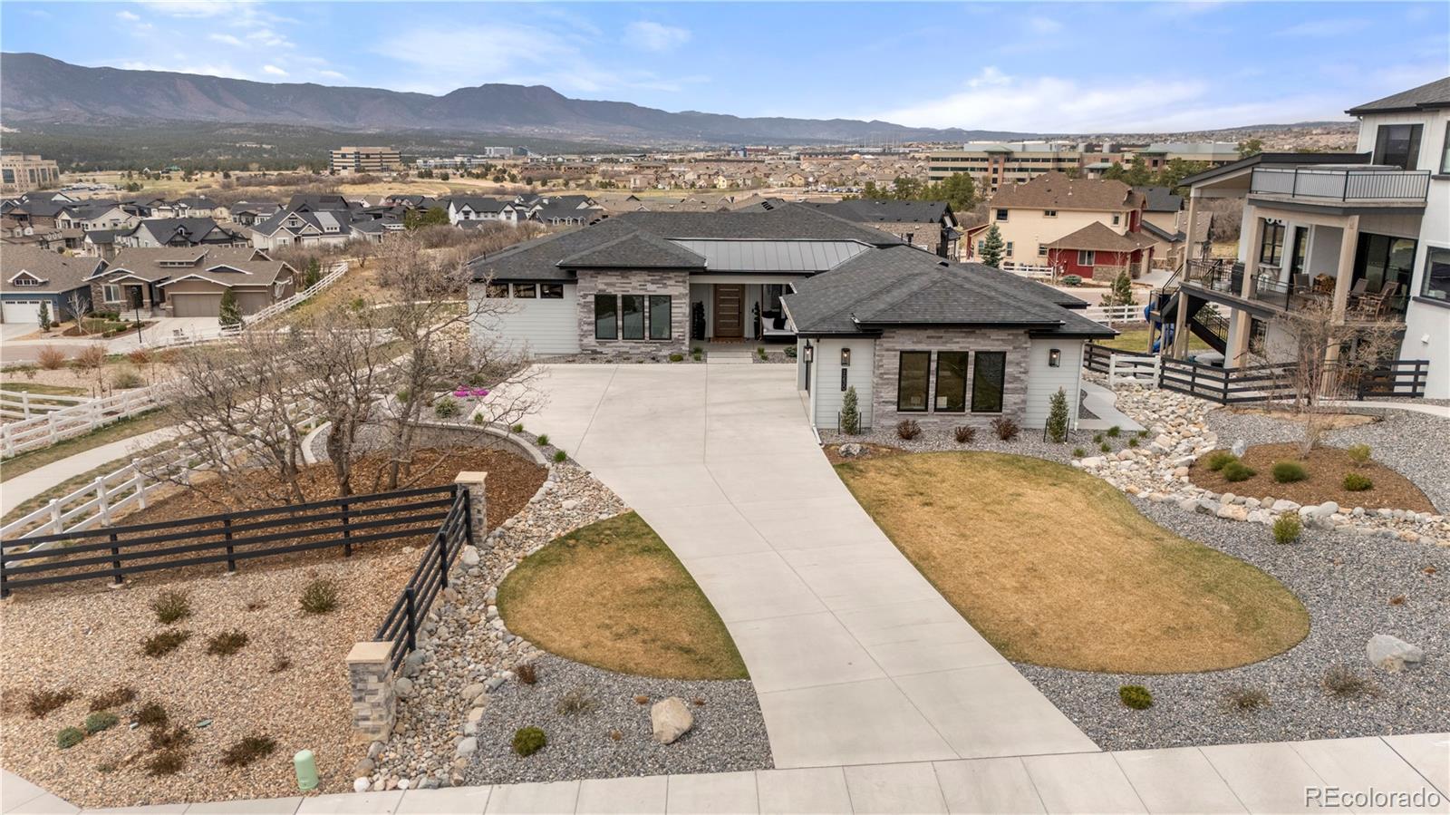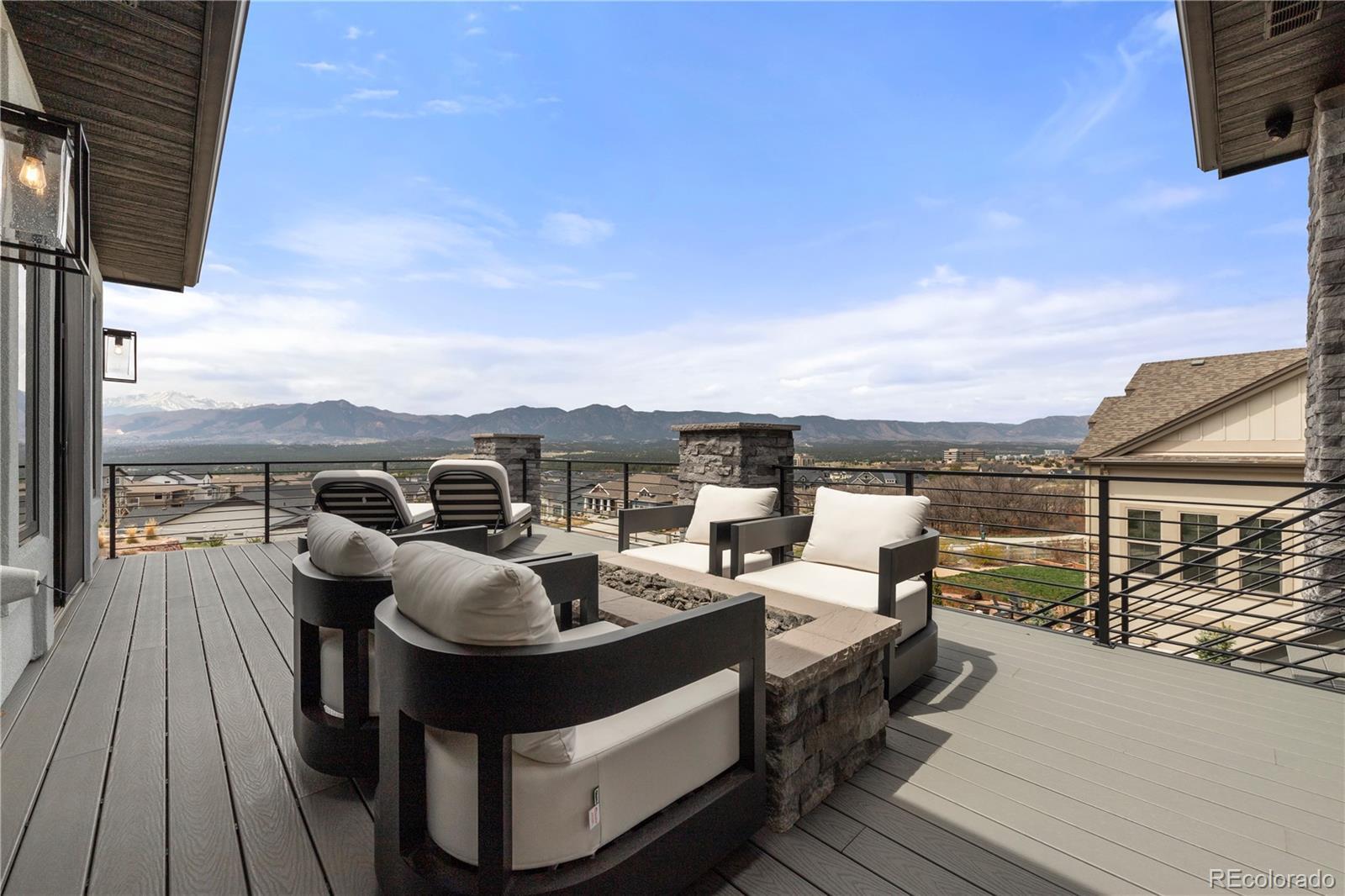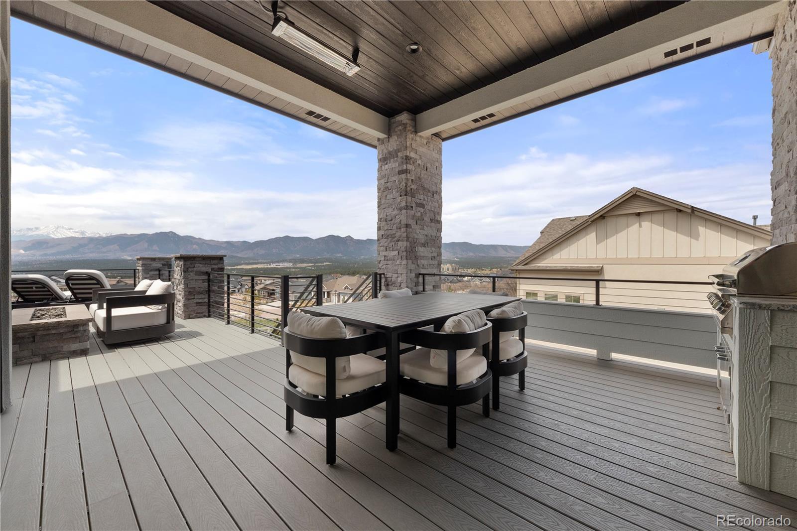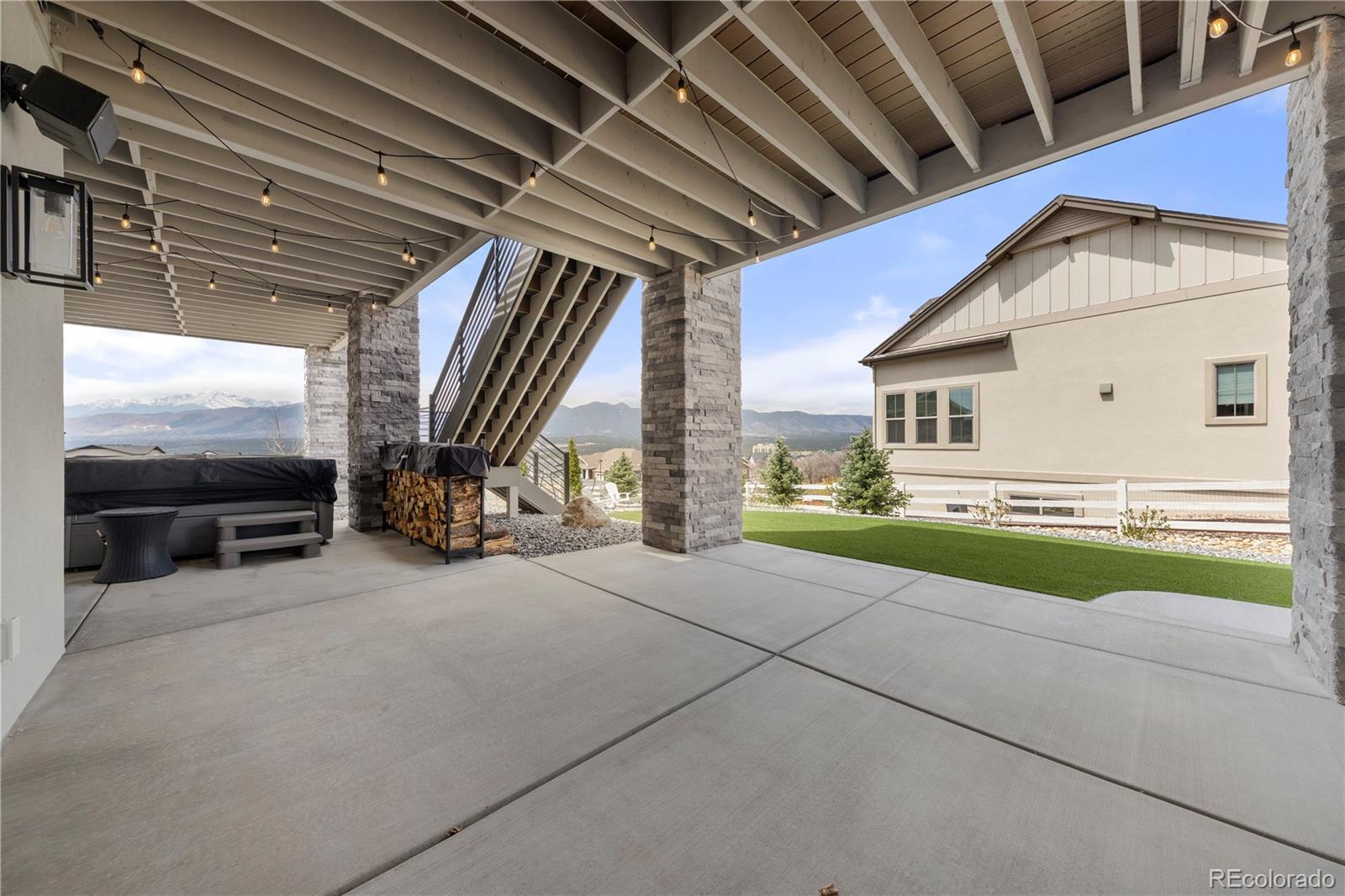 Stunning custom home in the coveted Julep Estates within The Farm Community featuring 5,304 finished square feet on a .44-acre lot with luxurious design, advanced systems, and exceptional indoor-outdoor living. This 5-bedroom, 4-bathroom residence includes wide-plank hardwood flooring, soaring vaulted ceilings in the great room, and a 15’ sliding glass door opening to a large covered deck and patio. The kitchen pulls out every stop to includes cherry cabinetry, a granite sink, all top of the line Bosch and Thermador appliances, double ovens, soft-close drawers, walk-in pantry, and 42” upper cabinets. The primary suite features a spa-style bathroom with steam shower, heated tile floors, hot tools drawer, and stackable laundry in the closet. The basement offers a full wet bar, dedicated gym, rec room, three bedrooms, sauna and a finished gym private flex room. The home includes a $60K+ Control4 smart system: whole-home audio, Triad speakers, motorized Lutron shades, video doorbell, surveillance, and integrated lighting and climate control. Additional features include a dog wash station, custom mudroom with lockers, and built-in bottle filler. The heated 3+ car garage spans 1,200 sq ft with an EV charger and adjacent 210 sq ft workshop. Exterior amenities include professional landscaping, composite decking covered and uncovered with 2 built in heaters, a built in gas firepit, hot tub pad, and direct access to community trails. Located in Academy District 20, the home also includes extensive smart prewiring, R-49 insulation in vaulted ceilings, and upgraded finishes throughout. Built for energy efficiency, comfort, and seamless living, this home delivers exceptional quality and functionality. When it comes to luxury-its the little things throughout every aspect of the home that makes the difference.