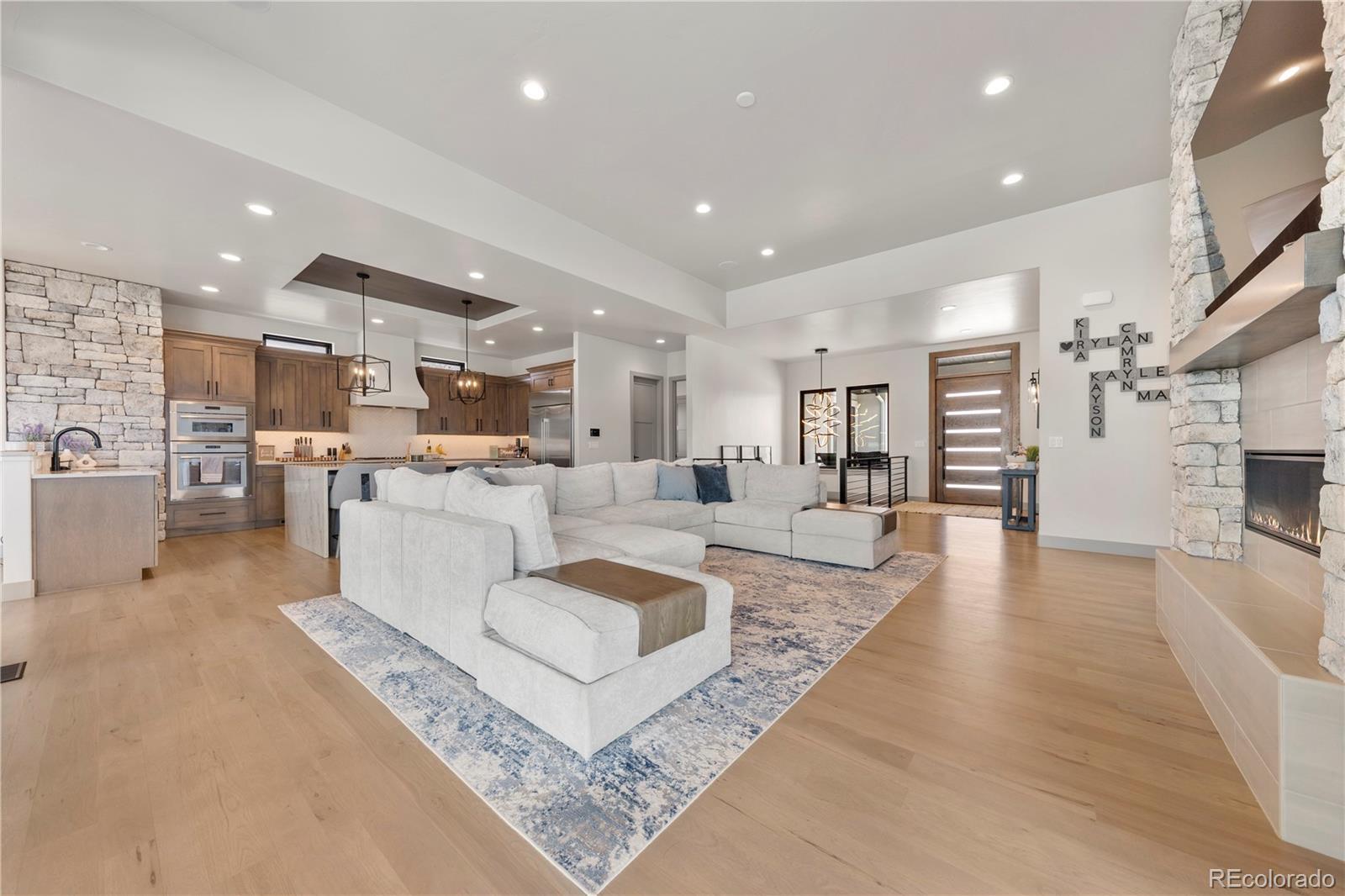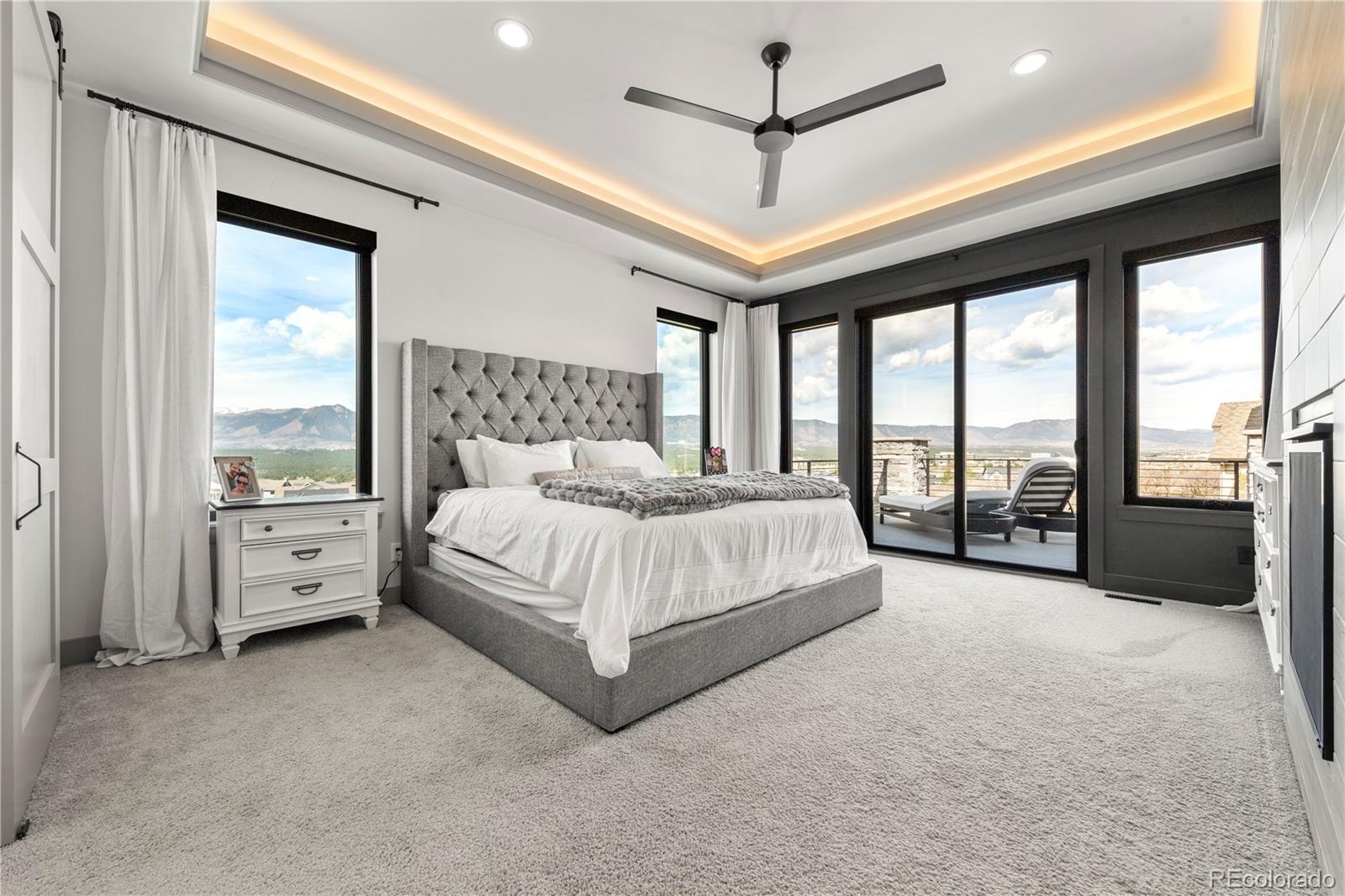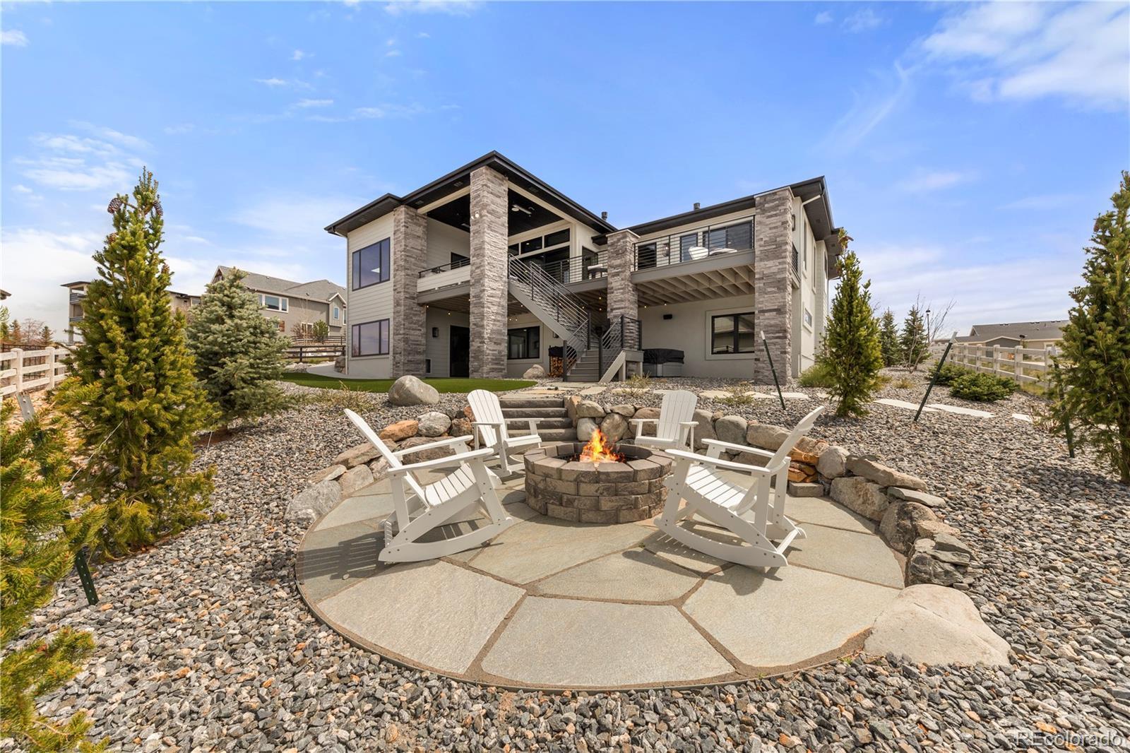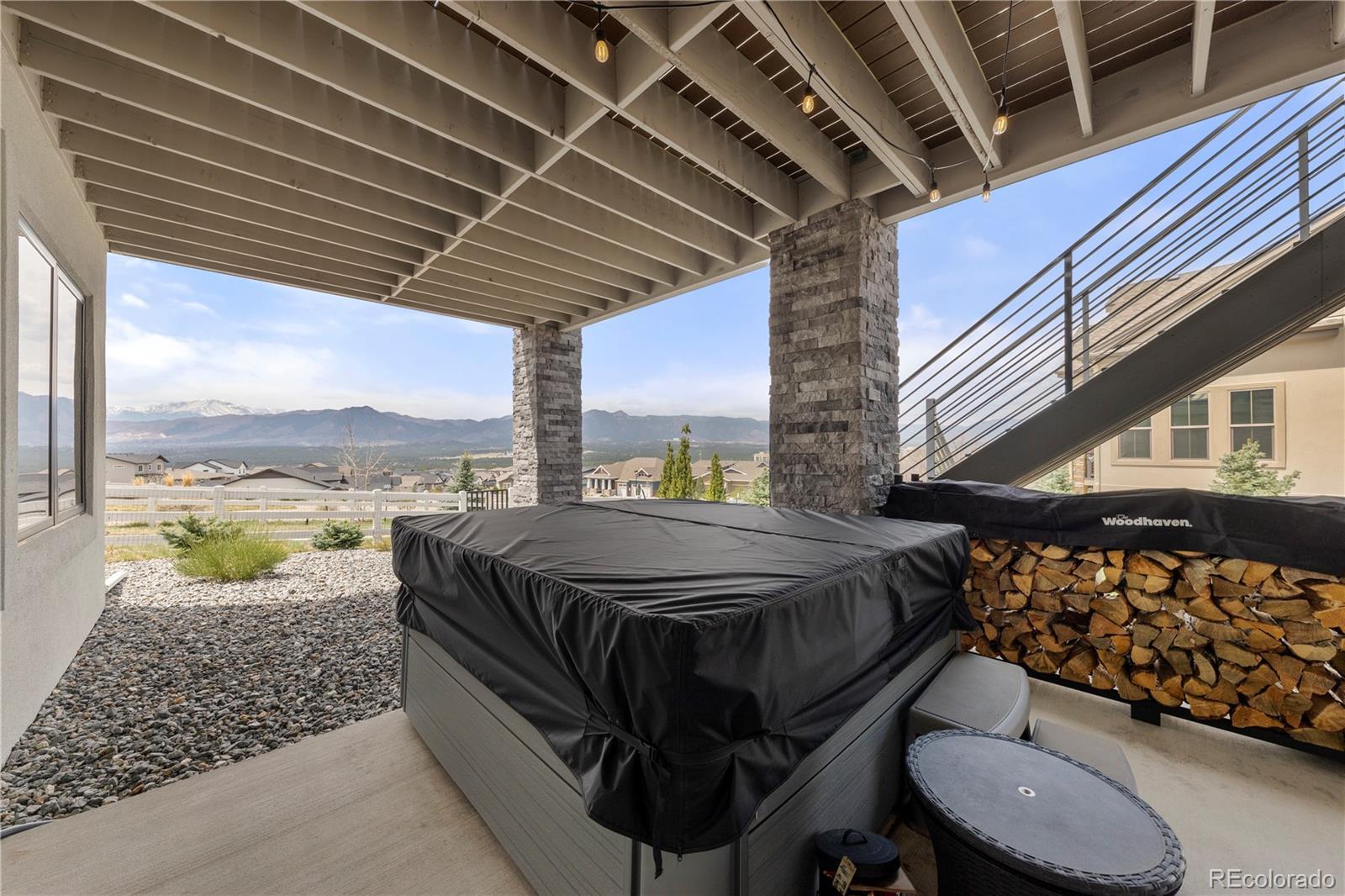 Stunning custom home in the coveted Julep Estates within The Farm Community featuring 5,304 finished square feet on a .44-acre lot with luxurious design, advanced systems, and exceptional indoor-outdoor living. This 5-bedroom, 4-bathroom residence includes wide-plank hardwood flooring, soaring vaulted ceilings in the great room, and a 15’ sliding glass door opening to a large covered deck and patio. The kitchen pulls out every stop to includes cherry cabinetry, a granite sink, all top of the line Bosch and Thermador appliances, double ovens, soft-close drawers, walk-in pantry, and 42” upper cabinets. The primary suite features a spa-style bathroom with steam shower, heated tile floors, hot tools drawer, and stackable laundry in the closet. The basement offers a full wet bar, dedicated gym, rec room, three bedrooms, sauna and a finished gym private flex room. The home includes a $60K+ Control4 smart system: whole-home audio, Triad speakers, motorized Lutron shades, video doorbell, surveillance, and integrated lighting and climate control. Additional features include a dog wash station, custom mudroom with lockers, and built-in bottle filler. The heated 3+ car garage spans 1,200 sq ft with an EV charger and adjacent 210 sq ft workshop. Exterior amenities include professional landscaping, composite decking covered and uncovered with 2 built in heaters, a built in gas firepit, hot tub pad, and direct access to community trails. Located in Academy District 20, the home also includes extensive smart prewiring, R-49 insulation in vaulted ceilings, and upgraded finishes throughout. Built for energy efficiency, comfort, and seamless living, this home delivers exceptional quality and functionality. When it comes to luxury-its the little things throughout every aspect of the home that makes the difference.