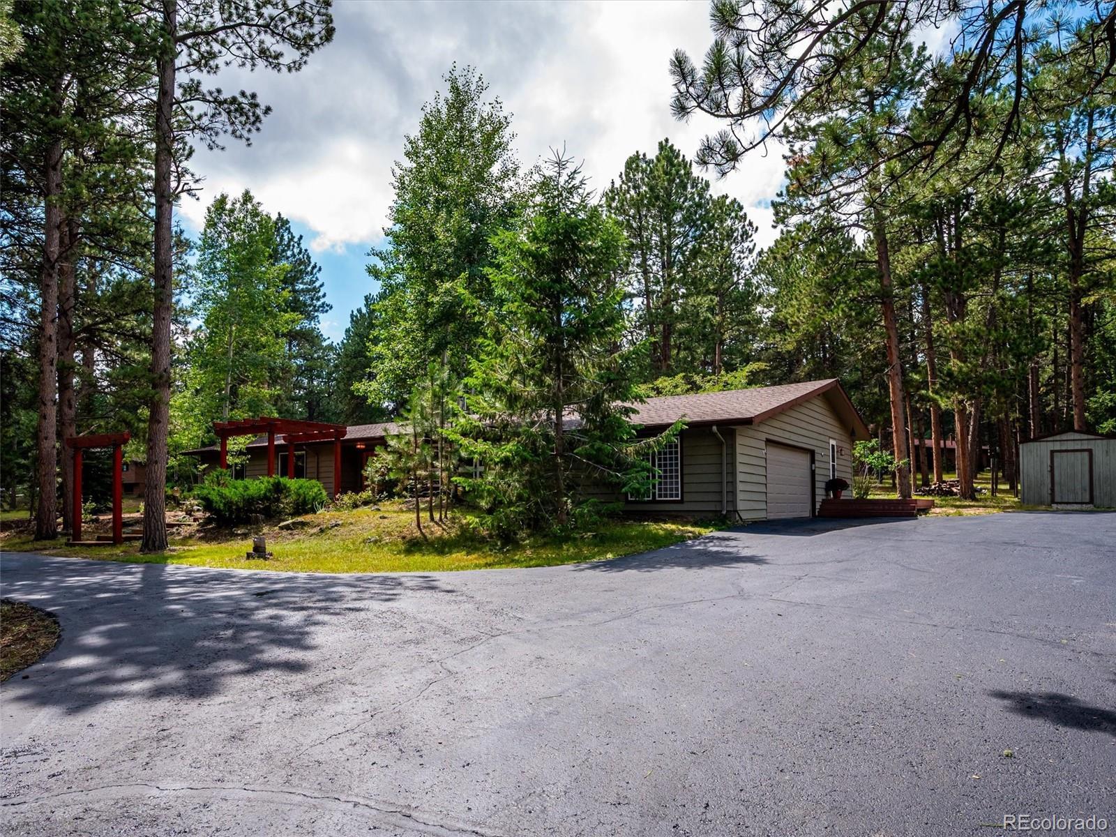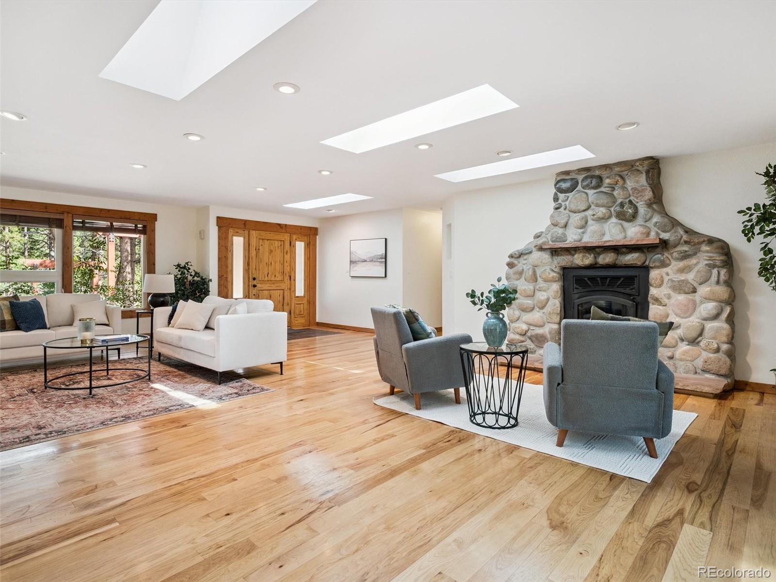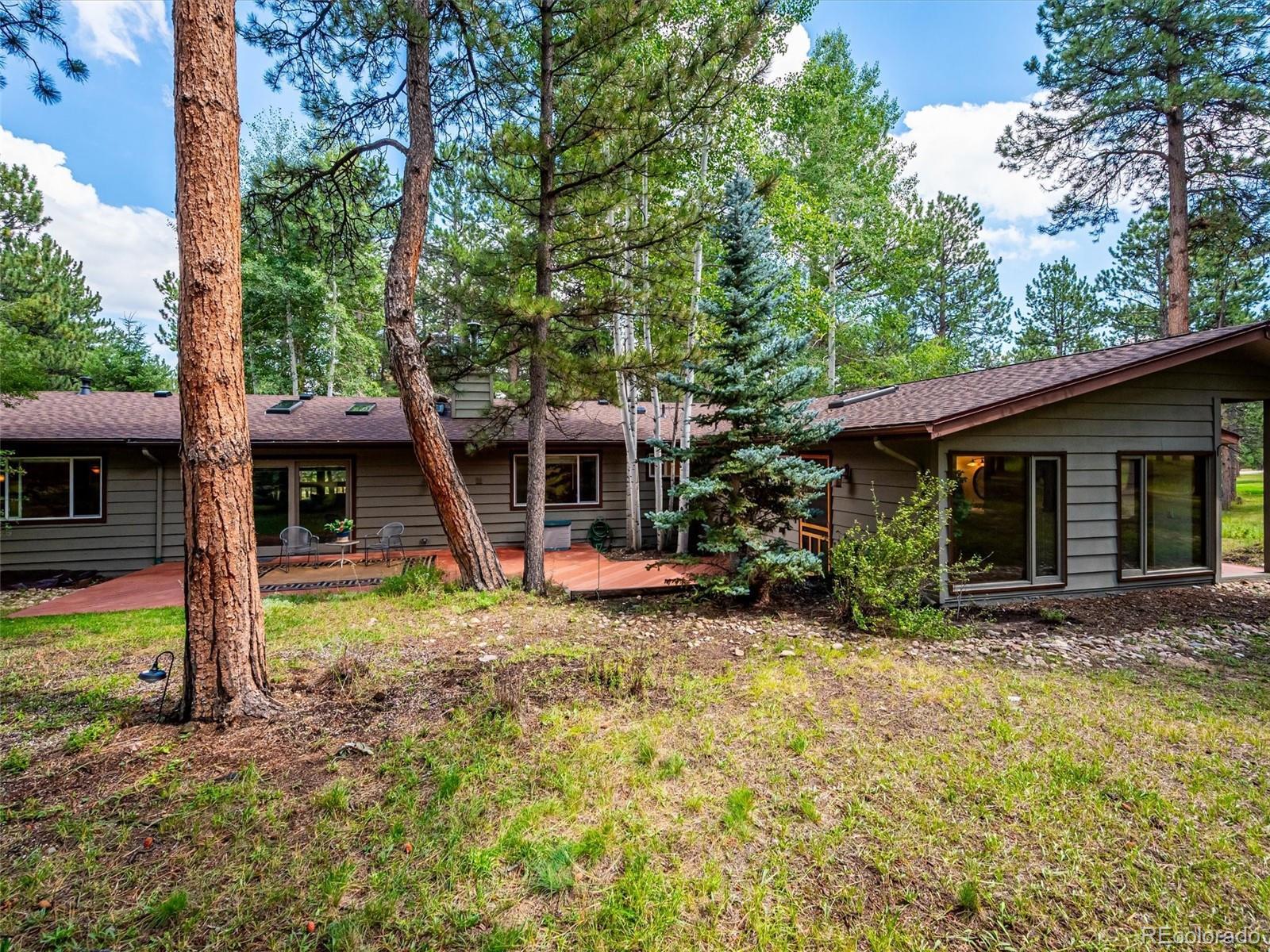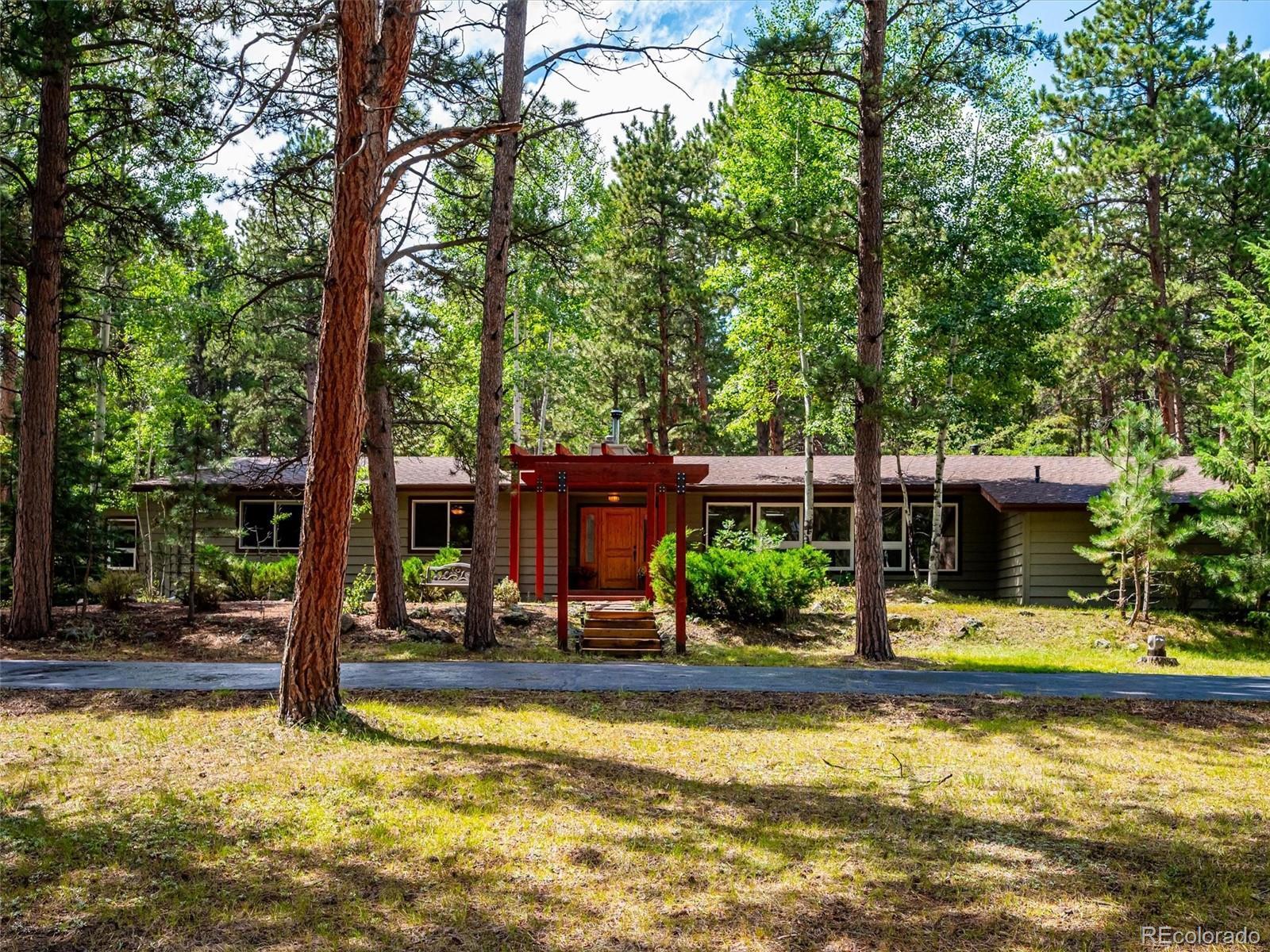 A rare one level property for true main floor living. This 1970’s home was enhanced with a large addition that includes a spacious pA rare one level property for true main floor living. This 1970’s home was enhanced with a large addition that includes a spacious primary suite, 5 piece primary bathroom, office, exercise area and adjacent laundry room. Four bedrooms with 3.5 bathrooms includes an ensuite guest bedroom while the remaining 2 bedrooms have a full bathroom to share. For convenience there are two locations for laundry, one within the primary suite and the other for the remaining guests/family members. Hardwood floors encompass the fireplace sitting area, living room, kitchen and formal dining room. The kitchen features a double oven, cook-top, ample cabinetry, granite countertops, island, and a built-in sideboard in the adjacent eating space. The layout opens to the stone fireplace sitting area that has access to the outdoor patio for easy entertaining. Many windows throughout the home allow the Colorado outdoors to be a part of your everyday living including the sightings of our beloved deer and elk. This property is complete with an oversized two car garage, easy circular driveway, flat useable yard, and paved county-maintained roads. Conveniently located to schools, shopping, DTC and DIA. Zoned SR-2 so you could build an auxiliary unit. New roof 2025, new hot water heater, updated electric, plumbing repaired and crawl space being sealed with proper ventilation, along with a great producing well. All receipts and inspection available with offer. Link for HOA governing documents https://www.emha.us/governing-docs
