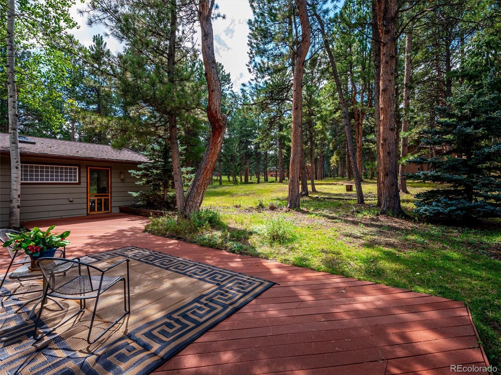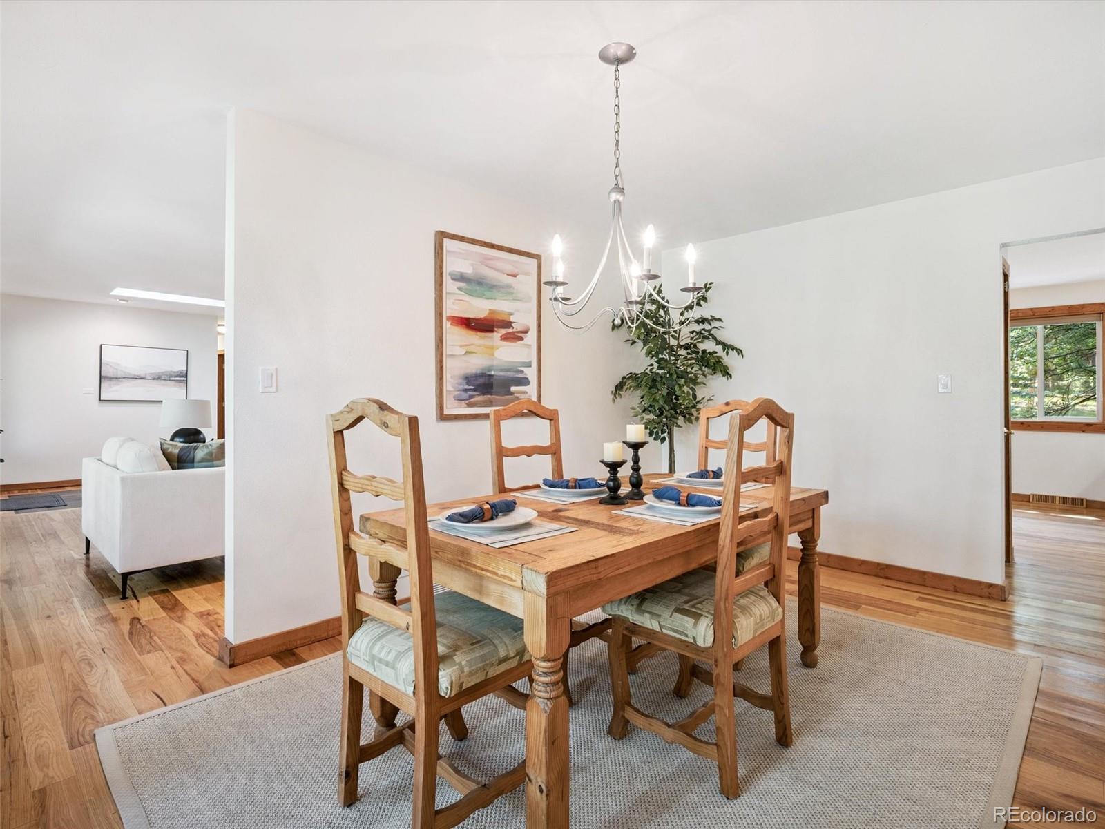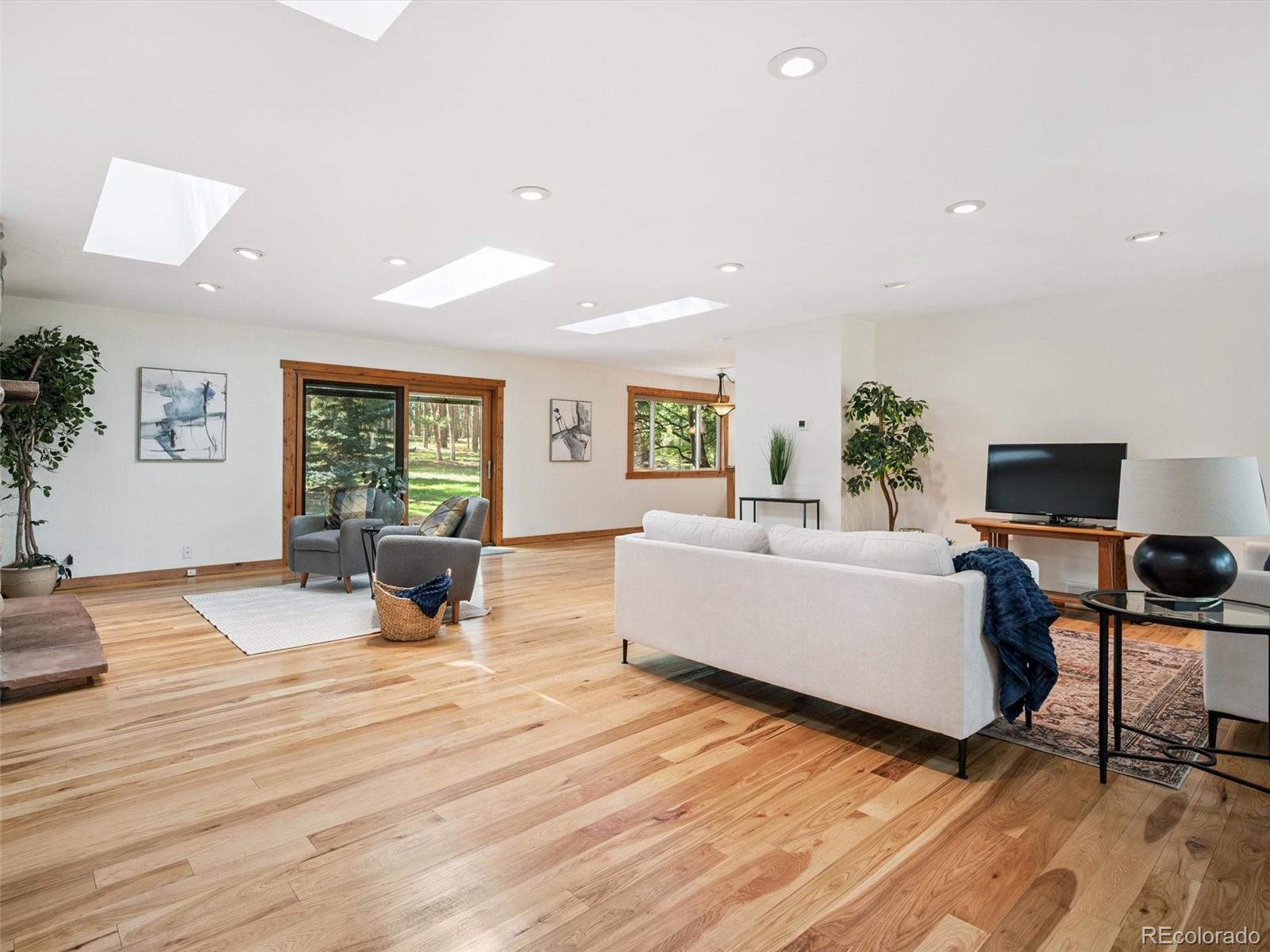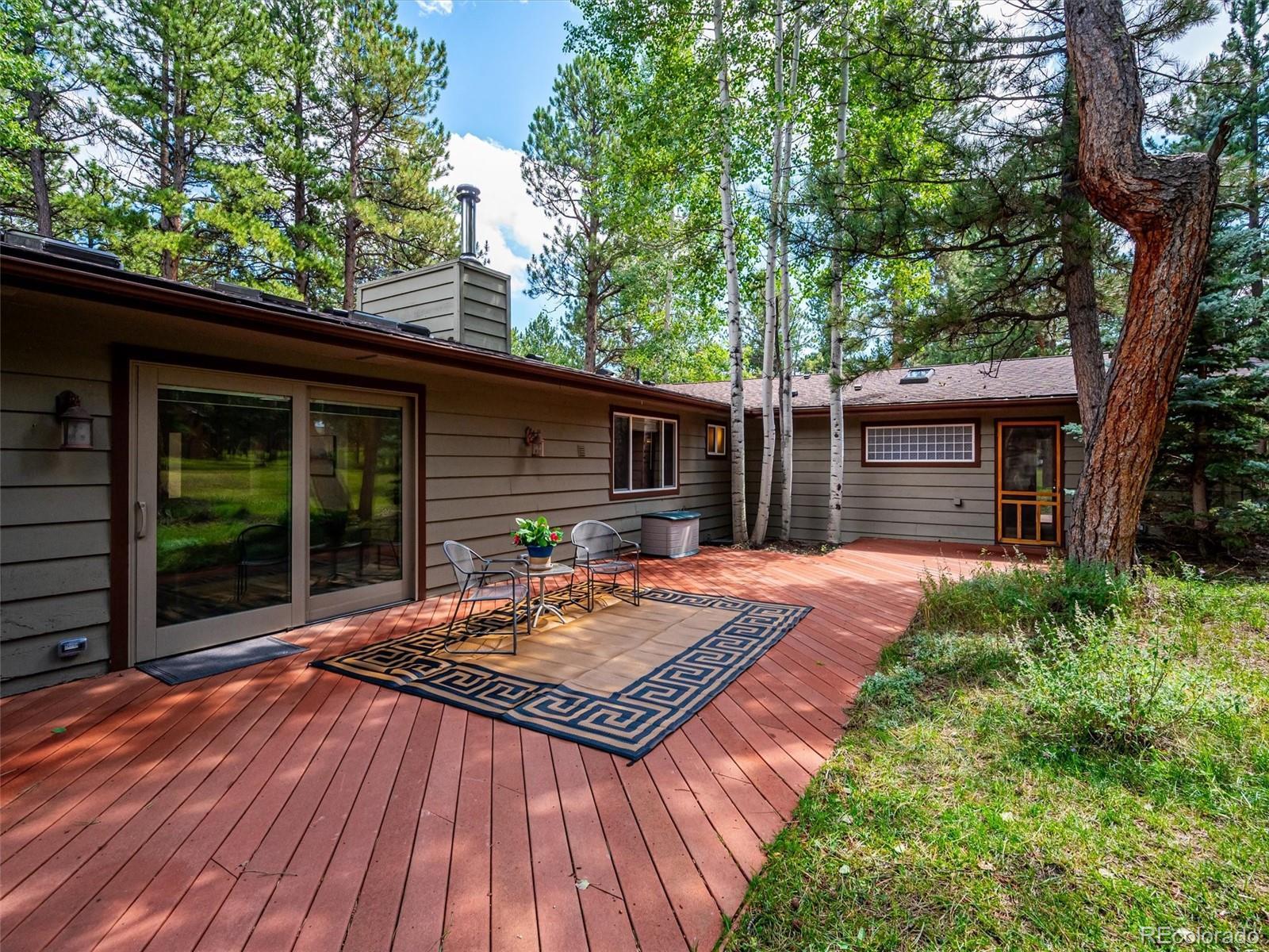 A rare one level property for true main floor living. This 1970’s home was enhanced with a large addition that includes a spacious pA rare one level property for true main floor living. This 1970’s home was enhanced with a large addition that includes a spacious primary suite, 5 piece primary bathroom, office, exercise area and adjacent laundry room. Four bedrooms with 3.5 bathrooms includes an ensuite guest bedroom while the remaining 2 bedrooms have a full bathroom to share. For convenience there are two locations for laundry, one within the primary suite and the other for the remaining guests/family members. Hardwood floors encompass the fireplace sitting area, living room, kitchen and formal dining room. The kitchen features a double oven, cook-top, ample cabinetry, granite countertops, island, and a built-in sideboard in the adjacent eating space. The layout opens to the stone fireplace sitting area that has access to the outdoor patio for easy entertaining. Many windows throughout the home allow the Colorado outdoors to be a part of your everyday living including the sightings of our beloved deer and elk. This property is complete with an oversized two car garage, easy circular driveway, flat useable yard, and paved county-maintained roads. Conveniently located to schools, shopping, DTC and DIA. Zoned SR-2 so you could build an auxiliary unit. New roof 2025, new hot water heater, updated electric, plumbing repaired and crawl space being sealed with proper ventilation, along with a great producing well. All receipts and inspection available with offer. Link for HOA governing documents https://www.emha.us/governing-docs