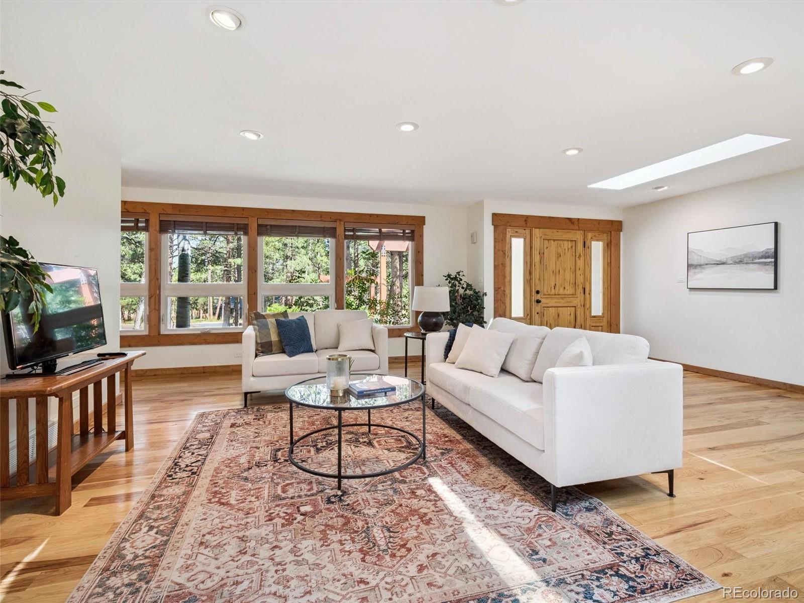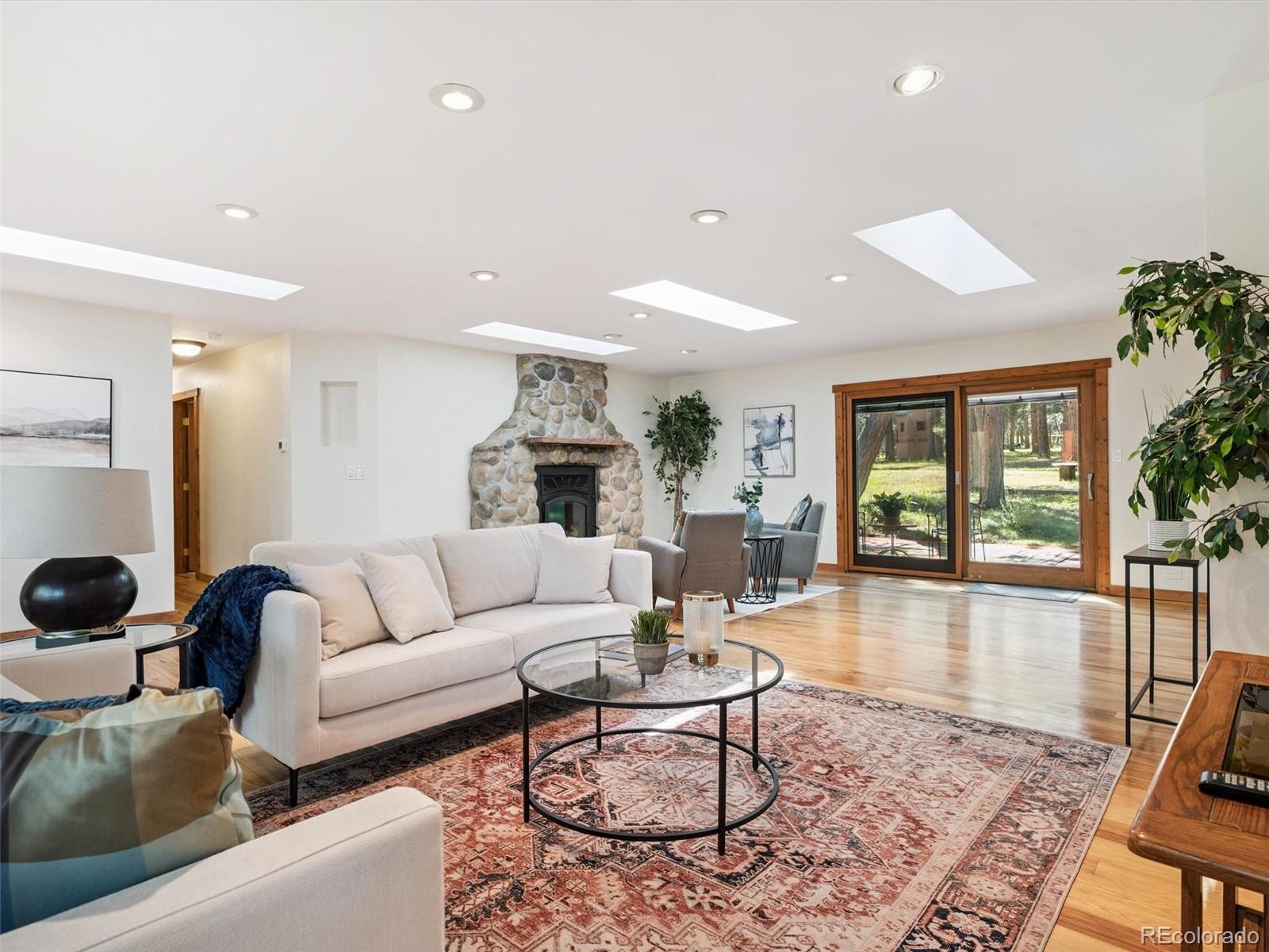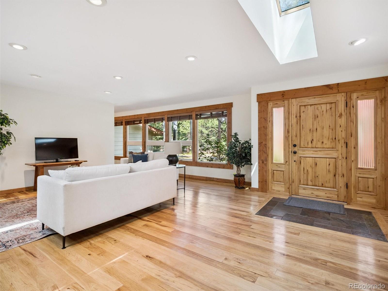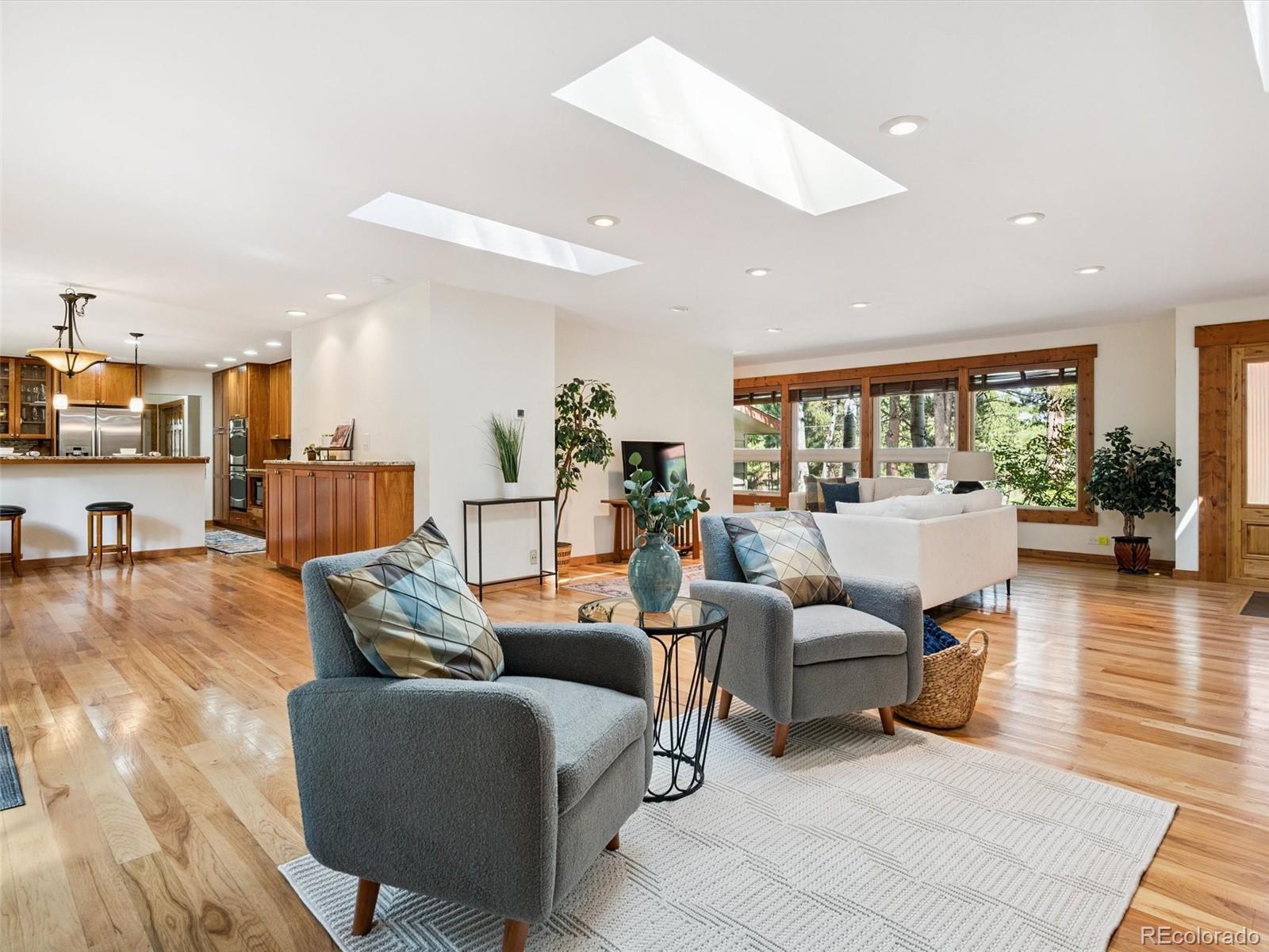 A rare one level property for true main floor living. This 1970’s home was enhanced with a large addition that includes a spacious pA rare one level property for true main floor living. This 1970’s home was enhanced with a large addition that includes a spacious primary suite, 5 piece primary bathroom, office, exercise area and adjacent laundry room. Four bedrooms with 3.5 bathrooms includes an ensuite guest bedroom while the remaining 2 bedrooms have a full bathroom to share. For convenience there are two locations for laundry, one within the primary suite and the other for the remaining guests/family members. Hardwood floors encompass the fireplace sitting area, living room, kitchen and formal dining room. The kitchen features a double oven, cook-top, ample cabinetry, granite countertops, island, and a built-in sideboard in the adjacent eating space. The layout opens to the stone fireplace sitting area that has access to the outdoor patio for easy entertaining. Many windows throughout the home allow the Colorado outdoors to be a part of your everyday living including the sightings of our beloved deer and elk. This property is complete with an oversized two car garage, easy circular driveway, flat useable yard, and paved county-maintained roads. Conveniently located to schools, shopping, DTC and DIA. Zoned SR-2 so you could build an auxiliary unit. New roof 2025, new hot water heater, updated electric, plumbing repaired and crawl space being sealed with proper ventilation, along with a great producing well. All receipts and inspection available with offer. Link for HOA governing documents https://www.emha.us/governing-docs
