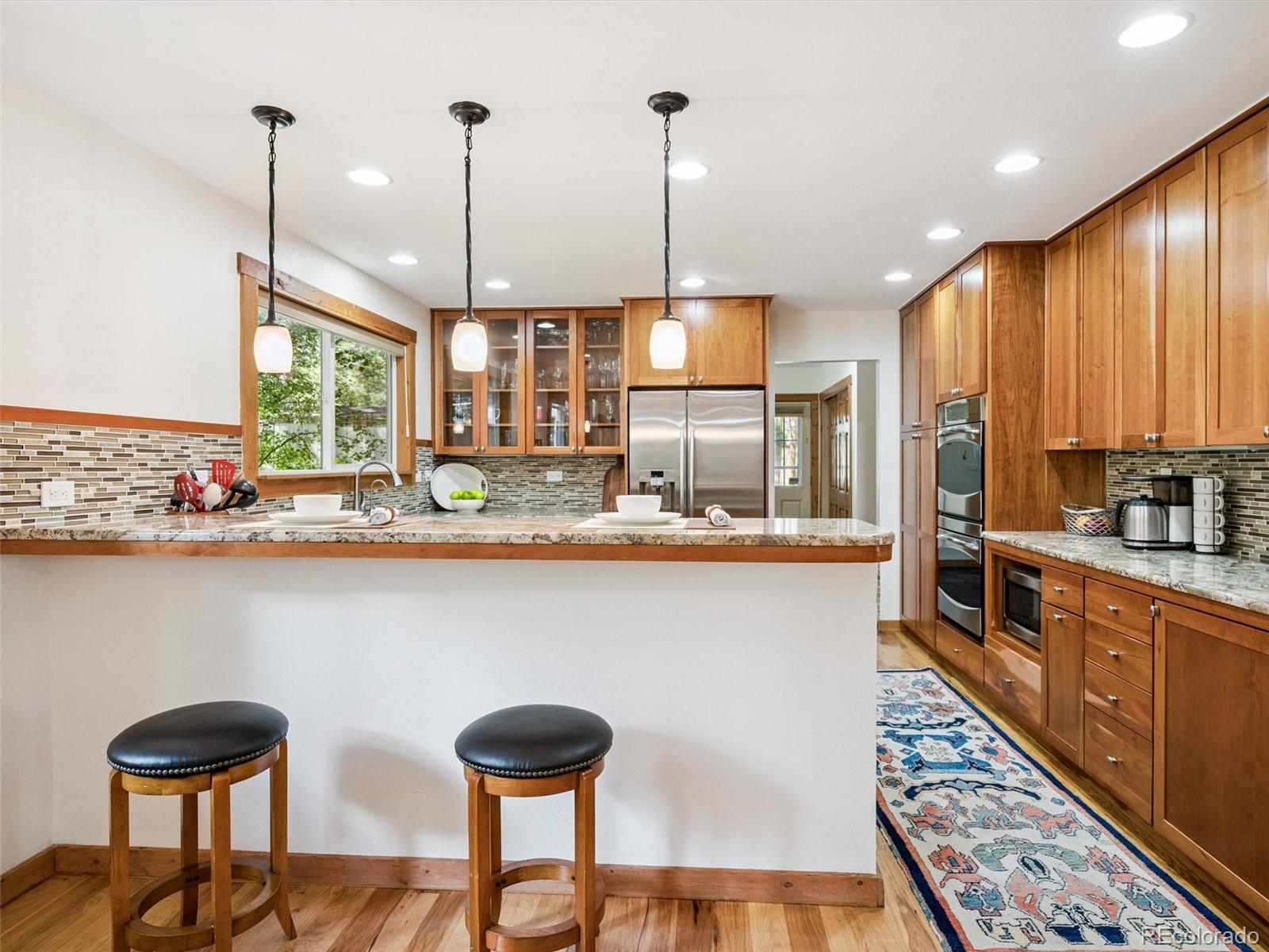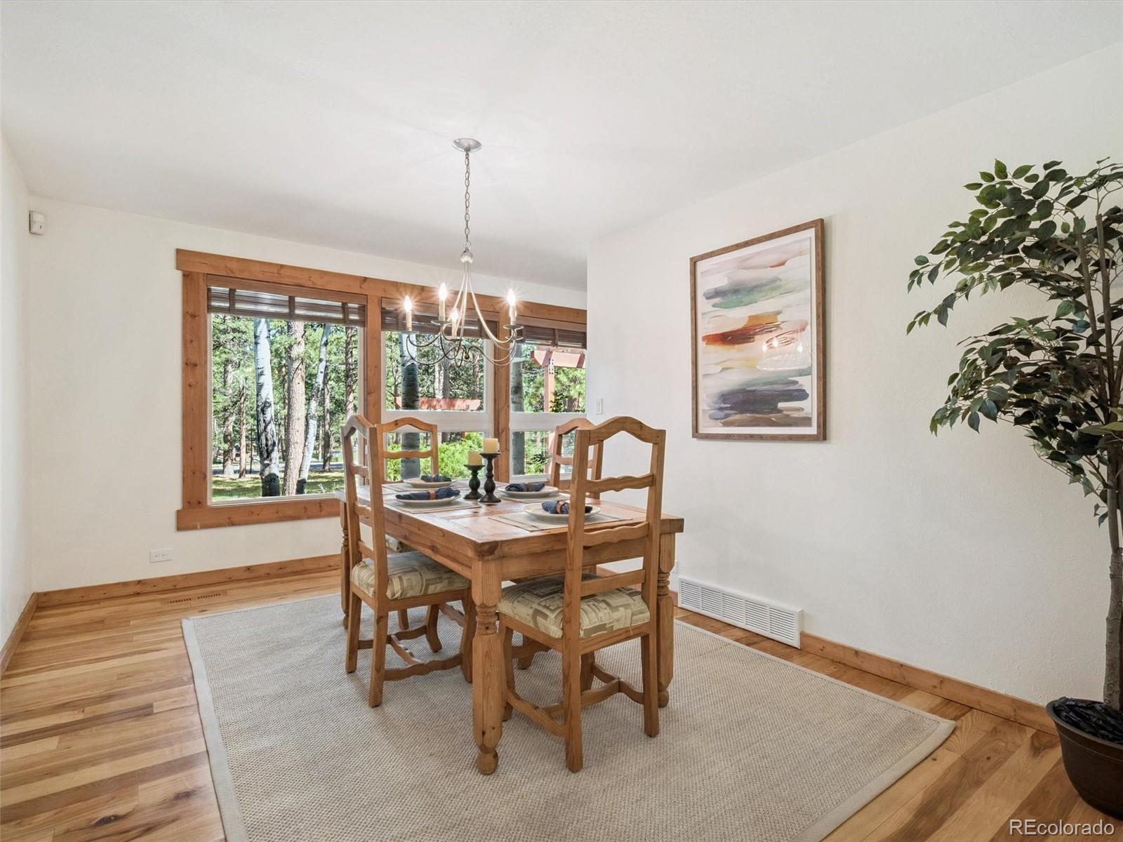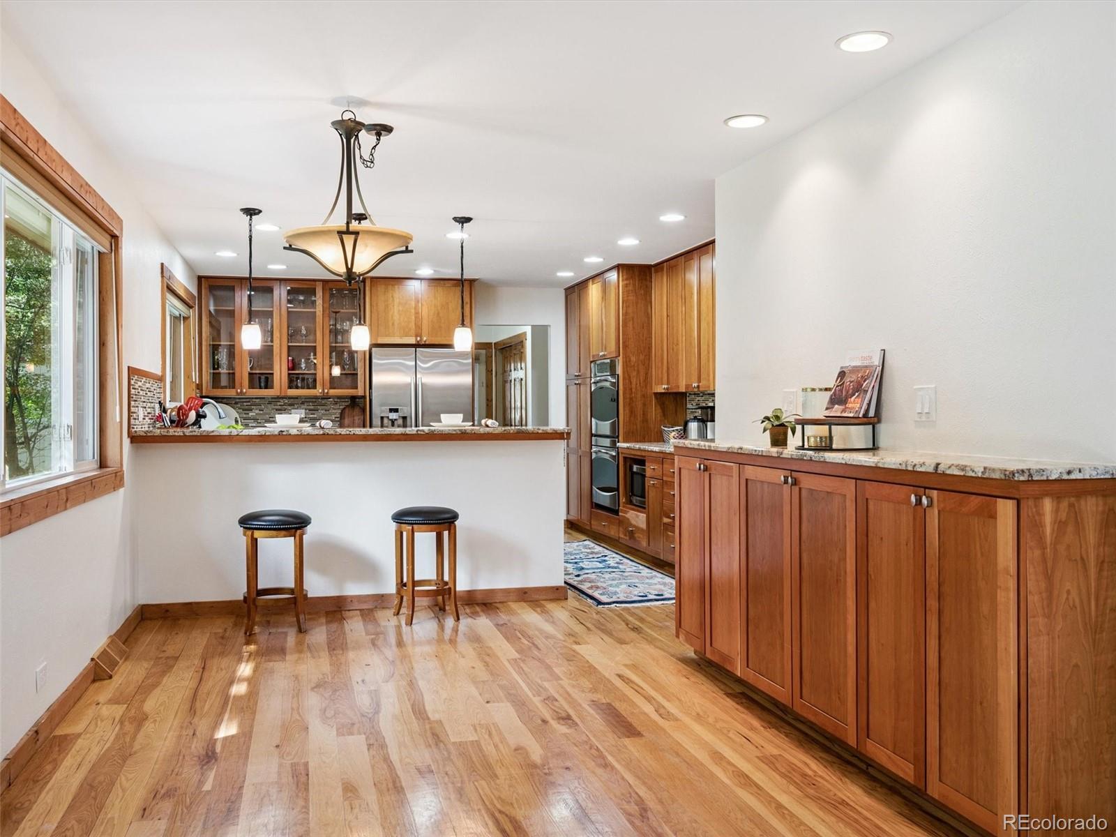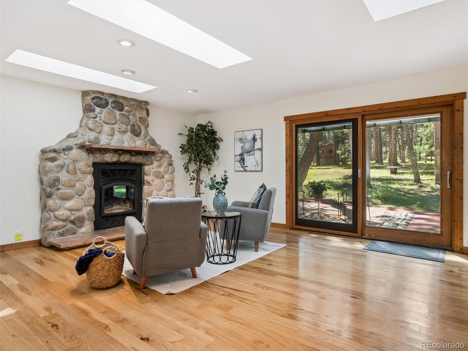 A rare one level property for true main floor living. This 1970’s home was enhanced with a large addition that includes a spacious pA rare one level property for true main floor living. This 1970’s home was enhanced with a large addition that includes a spacious primary suite, 5 piece primary bathroom, office, exercise area and adjacent laundry room. Four bedrooms with 3.5 bathrooms includes an ensuite guest bedroom while the remaining 2 bedrooms have a full bathroom to share. For convenience there are two locations for laundry, one within the primary suite and the other for the remaining guests/family members. Hardwood floors encompass the fireplace sitting area, living room, kitchen and formal dining room. The kitchen features a double oven, cook-top, ample cabinetry, granite countertops, island, and a built-in sideboard in the adjacent eating space. The layout opens to the stone fireplace sitting area that has access to the outdoor patio for easy entertaining. Many windows throughout the home allow the Colorado outdoors to be a part of your everyday living including the sightings of our beloved deer and elk. This property is complete with an oversized two car garage, easy circular driveway, flat useable yard, and paved county-maintained roads. Conveniently located to schools, shopping, DTC and DIA. Zoned SR-2 so you could build an auxiliary unit. New roof 2025, new hot water heater, updated electric, plumbing repaired and crawl space being sealed with proper ventilation, along with a great producing well. All receipts and inspection available with offer. Link for HOA governing documents https://www.emha.us/governing-docs