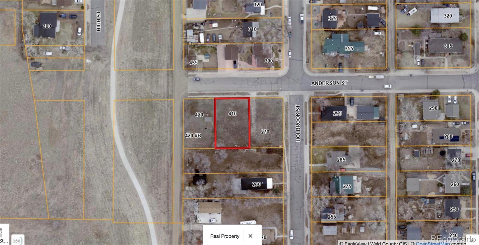 Here is your chance to build your Dream Home within walking distance of Old Town. Why not take advantage of the ability to include an ADU to make some rental income at the same time! Seller has plans available that the city has looked at a pre-construction meeting and has determined they fit the elements they are looking for. This lot does not include sewer and water taps. However, electricity installation has been paid for and should be installed in the near future. There are 3 other lots available as well , 420 Anderson, and 270 Holbrook (which does include sewer and water taps) and the lot that is south of these 3. Buyer is responsible for verifying all information regarding Zoning, Permitted uses, Water, and Tap fees. Check out the county map link to see the lots https://maps.weld.gov/propertyportal/ Then enter parcel ID 146718347002