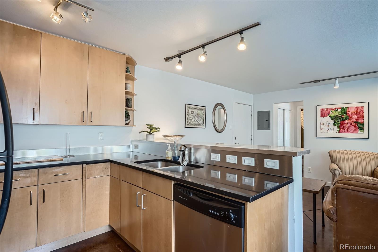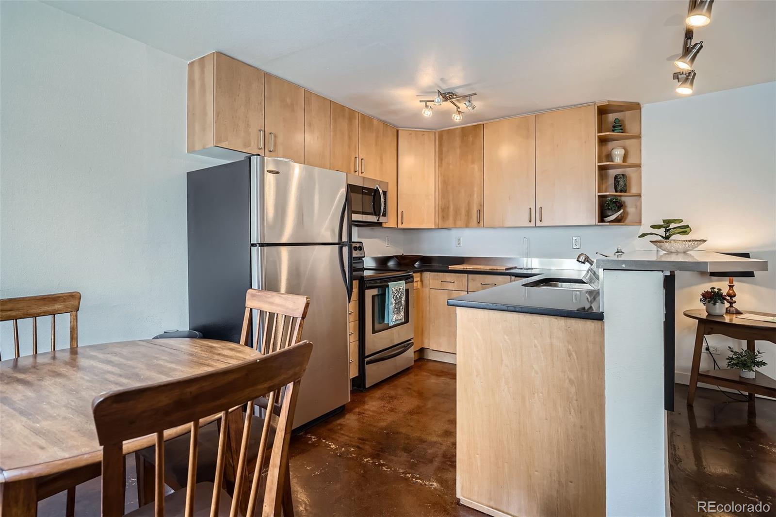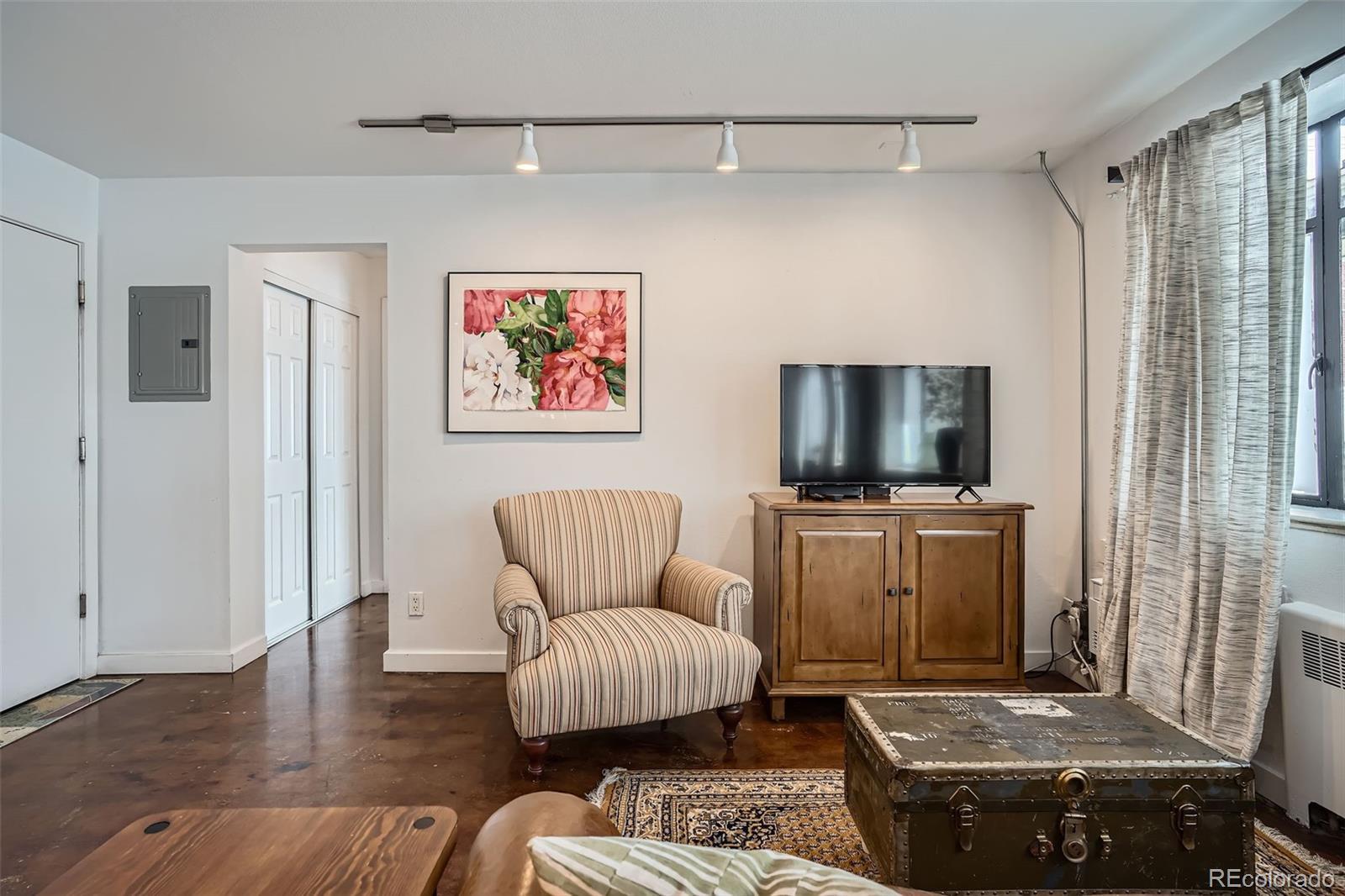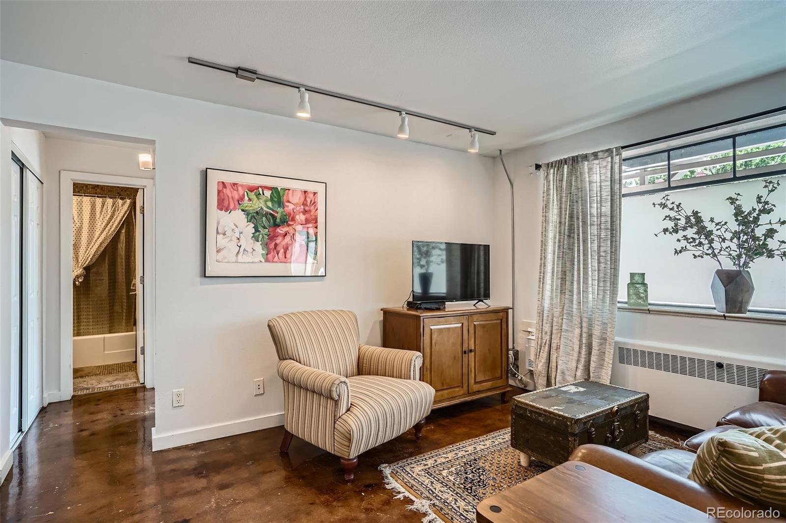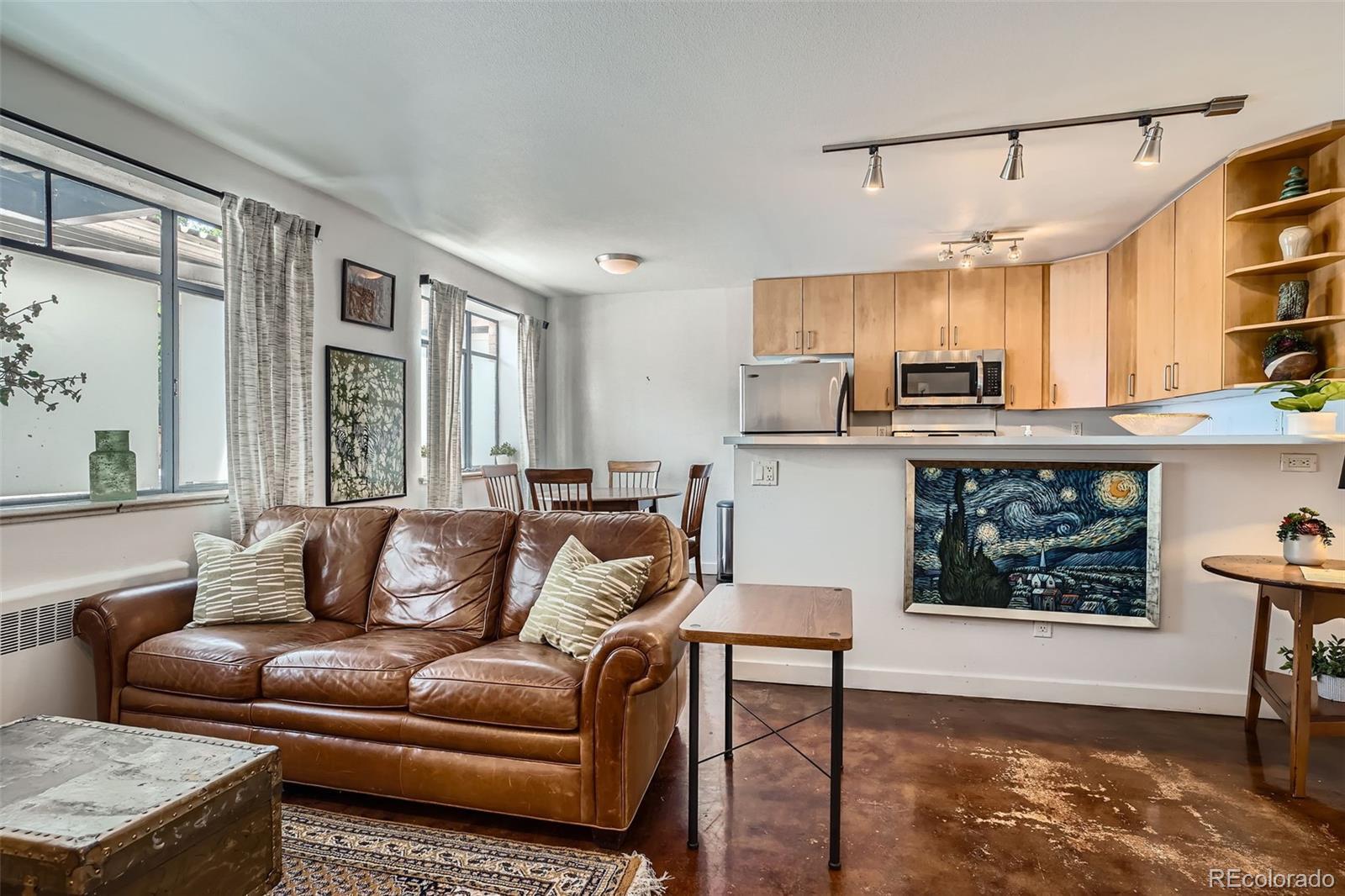 Welcome to this charming 1-bedroom / 1-bathroom condo in the heart of Capitol Hill! This 615 sqft apartment offers modern living, an open-concept layout with warm natural light, polished concrete floors, an unbeatable location with the added bonus of TWO deeded parking spaces in one of Denver's most vibrant neighborhoods. Enjoy the perfect balance of comfort and convenience, ideal for relaxing or entertaining, highlighted by large windows, an updated light fixture, and a neutral color palette ready for your personal touch. The kitchen is smartly designed with sleek cabinetry, stainless steel appliances, and bar seating, making it both functional and inviting. Whether you're a first-time buyer, downsizing, or looking for a low-maintenance city pad, in a secured building, this condo is a perfect fit. Come experience the charm and energy of Capitol Hill living, while being conveniently located near Cheesman Park, Trader Joe’s, great coffee shops, restaurants, and public transit—everything you need is just steps away! Schedule a showing today and make this beautiful space your new home!