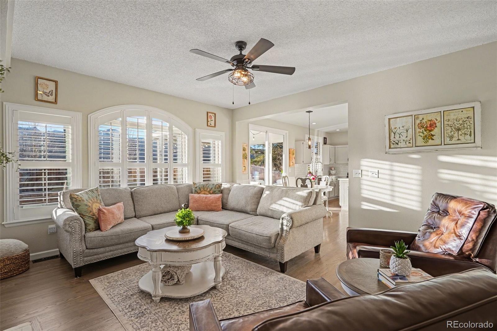 OPEN HOUSE ON SATURDAY FROM 11-2!!! Welcome to the highly coveted Stonegate lifestyle! This beautifully updated, meticulously cared-for 5-bedroom, 4-bath home is truly move-in ready. You will immediately notice the pride of ownership. The main level shines with rich, refinished hardwood floors throughout, fresh quartz kitchen countertops. new backsplash, modern lighting, plantation shutters, and updated stair railings that pull it all together. The primary suite is a showstopper, featuring a stunning five-piece bath that feels more like a private spa retreat than a bedroom. Behind the scenes, the big-ticket items are already done—newer roof, new HVAC system, new upgraded water heater, new electrical panel, and a 220V EV charger already installed. The back yard is a virtual oasis! Enjoy low-maintenance, high-quality turf, a covered patio, and a gas fire pit—perfect for Colorado evenings with friends or family. A spacious laundry/office combo and a generous mudroom keep daily life organized and easy. Located in one of Parker’s most highly sought-after communities, Stonegate is known for its top-rated schools, multiple pools, parks, miles of trails, and vibrant community events—all just steps from your front door. With quick access to downtown Parker, shopping, dining, and commuter routes, this home delivers exactly what Stonegate is famous for: comfort, connection, family, and an unbeatable lifestyle.