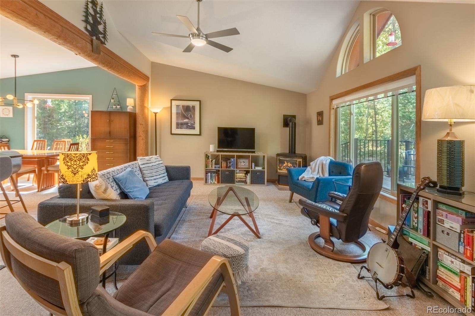 Do you enjoy watching the wildlife go by? This Columbine Lake cabin is for you! Easy living all on one level with elevated ceilings and lots of natural light. 3 Bedroom, 2 Bath cabin with an inviting interior. Gather your friends around the granite island, great space for entertaining. Windows frame aspen groves and wildlife views. There is a wonderful sense of privacy! Great storage in the generous-height usable lighted crawl space and in the nice 10' x 12' shed. Plans for building a garage are included with the sale. A few minutes walk to the lakefront open space. Enjoy all Columbine Lake has to offer; clubhouse, heated pool, hot tub, stocked fishing lake, paddle boarding and community events. Association fee of $116 per month covers snow removal from roads, a trash removal area and access to the clubhouse amenities. Furnishings which are included are not those in the photos; ask us for a list of inclusions. R154130 Lot 27, Block 14. #113 GCR 4948 $675,000
