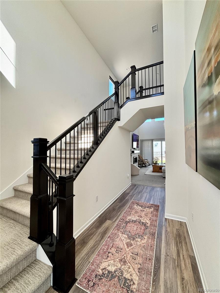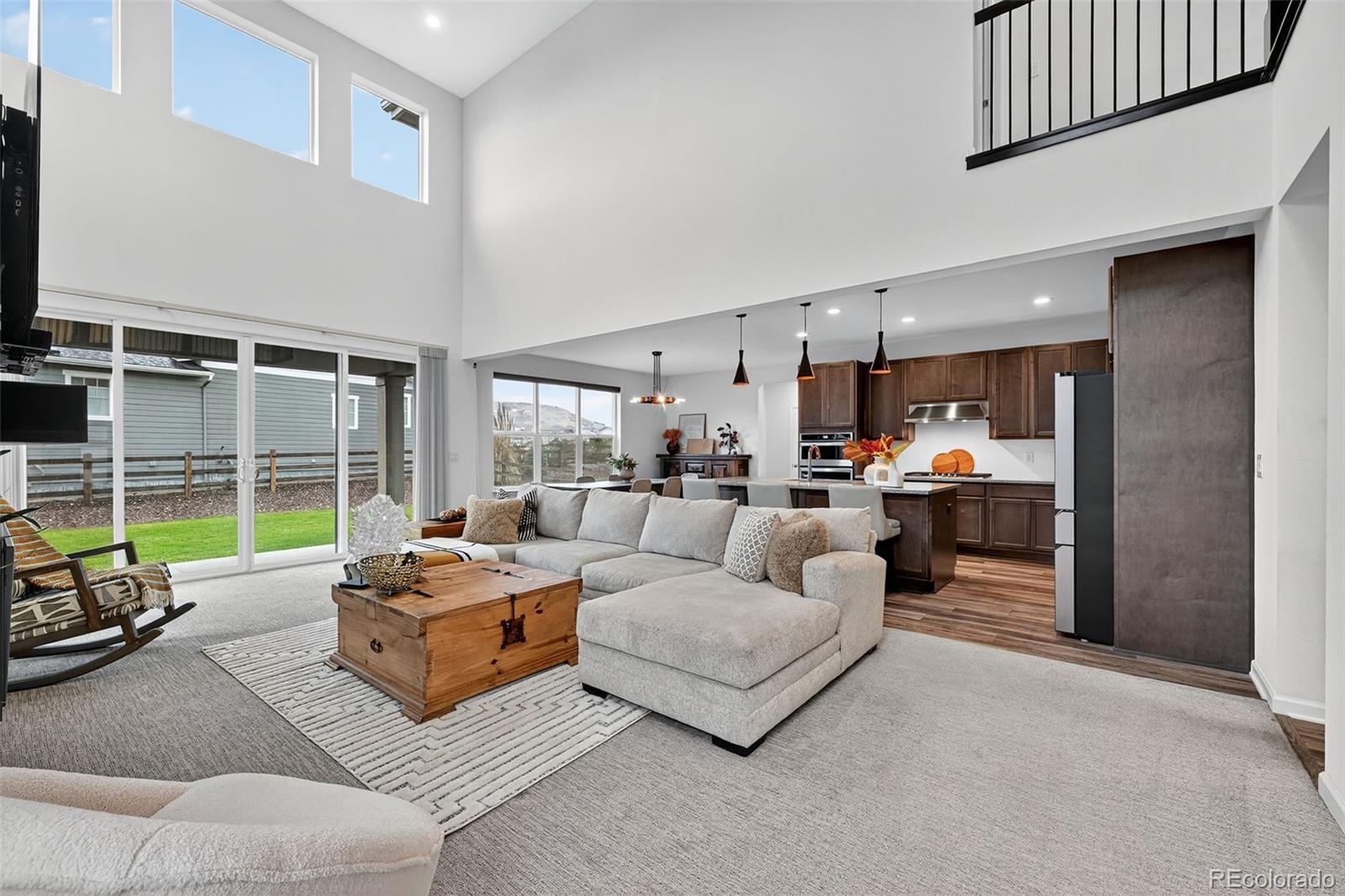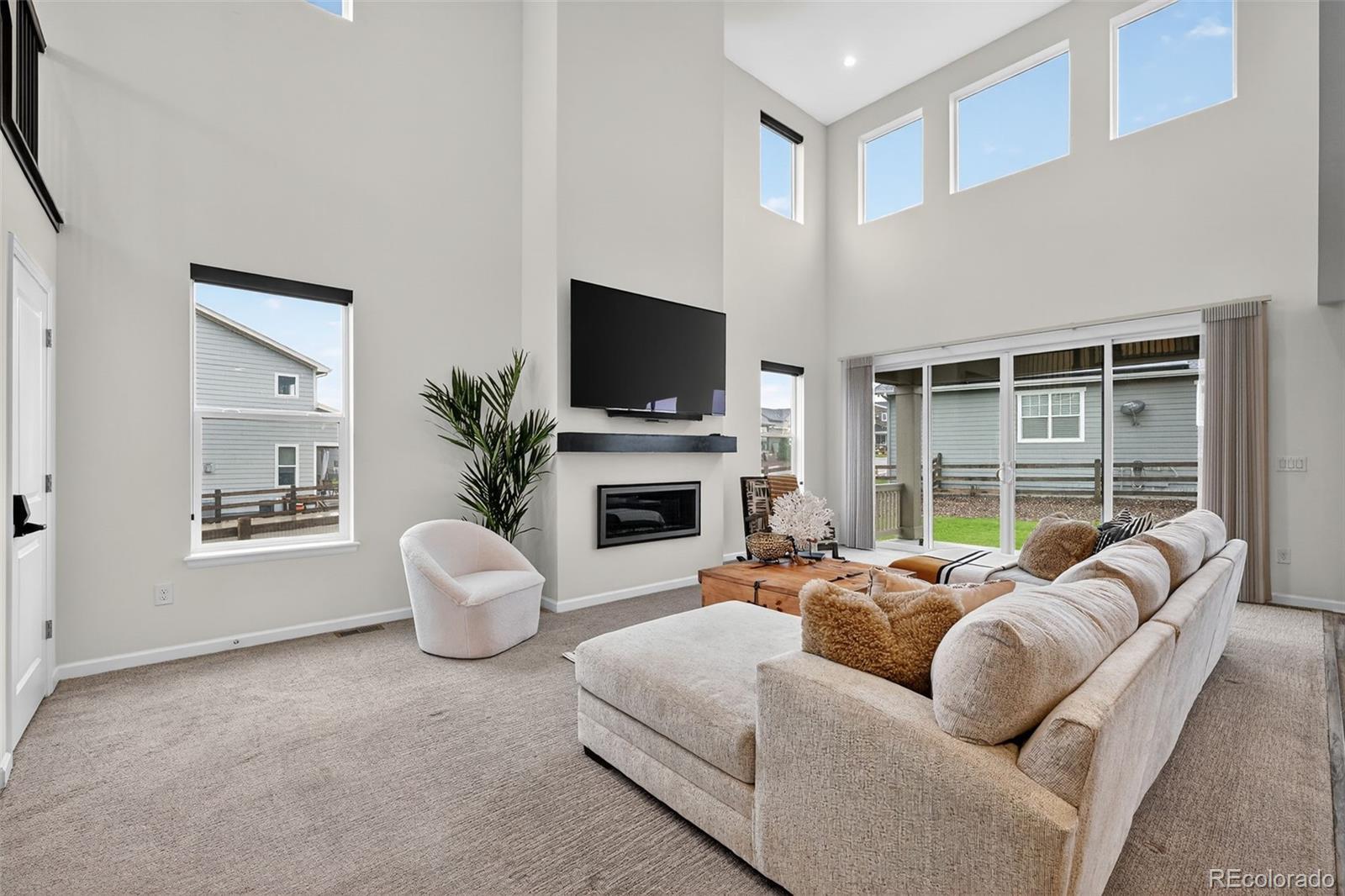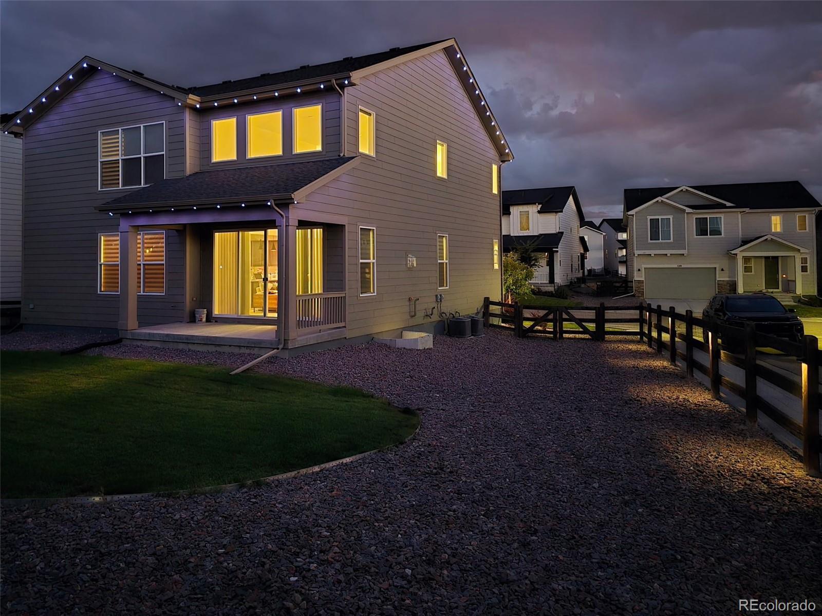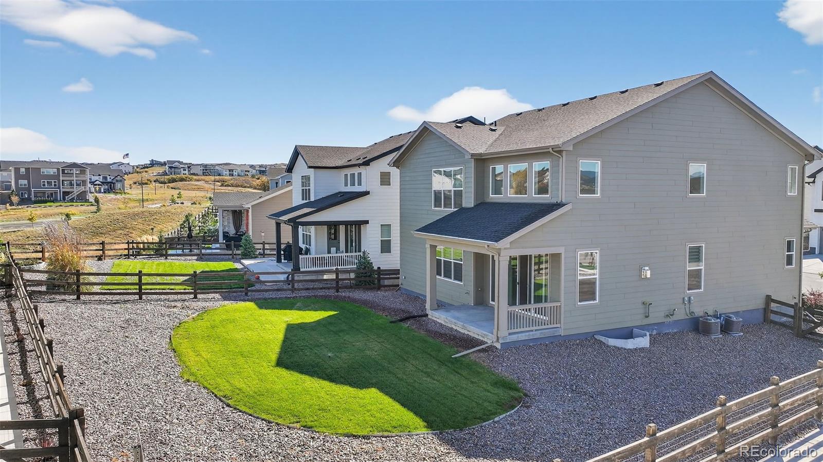 Enjoy Colorado's beautiful sunrise and sunsets from the serene patio on this highly upgraded Toll Bros. home in Montaine. *Over $110,000 in upgrades*. This home is perfectly located on a huge corner lot. The two-story entry unfolds in dramatic height with an ornamental iron staircase that sweeps upward inviting you in. Beyond the entry is a grand living room with custom window coverings, gorgeous linear fireplace with remote and a four-panel center slider. The kitchen is a Chef's dream with sleek granite counters, stainless appliances, large island with seating for casual dining or entertaining. It flows effortlessly into the dining room, creating an ideal space for entertaining groups large or small. A walk-in pantry offers abundant storage without disrupting the elegant aesthetic of the space. A light-filled home office with wifi and TV prewire installed — perfect for meal planning or catching up on tasks. The upper level features a laundry room with built-in cabinetry and is conveniently located near all bedrooms. Samsung washer and dryer are included. Washer has its own internal presoak tub. The luxurious primary suite on the upper level is a tranquil space with recessed lighting in the tray ceiling. Spa-like bath has a dramatic walk-in shower with a frameless glass enclosure and double shower heads. Walk-in closet completes this private primary retreat. Additional bedrooms have great views and generous closet space. Daylight windows and 10' ceilings in the full basement let in natural light. Pet washing station with hot and cold water lines is a great addition in the basement. Whole house WiFi connectivity, programmable Jellyfish exterior lighting, and upgraded carpet are some of the many features of this beautiful home. Montaine is a desirable neighborhood located just north of Bell Mountain Ranch. Convenient to downtown Castle Rock and I-25.