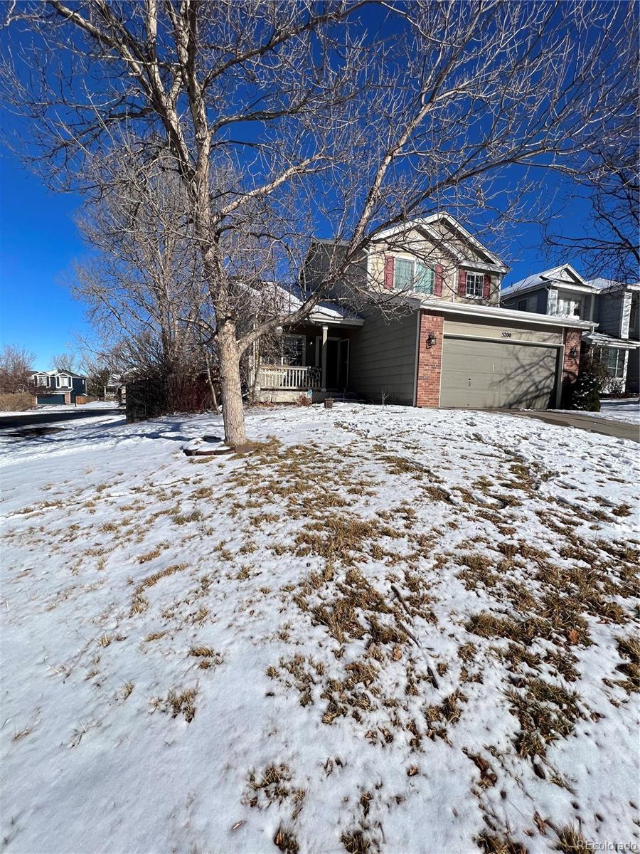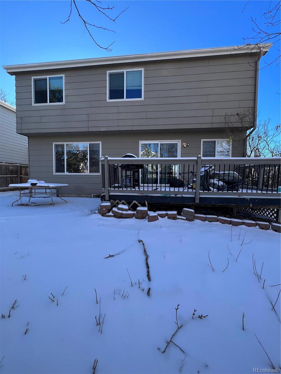 Spacious 5-bedroom, 3-bath home located in the highly desirable Cherry Creek School District. The main floor offers two versatile living spaces, a cozy gas fireplace, and an open-concept kitchen perfect for entertaining. A convenient laundry area with stackable washer and dryer is tucked away, while a main-floor bedroom with built-in shelving and an en-suite ¾ bath is ideal as a guest room or home office. Upstairs, you’ll find four generously sized bedrooms, including the primary suite with dual walk-in closets and a luxurious five-piece en-suite bath complete with granite counters, soaking tub, and glass shower. The secondary full bath includes a double vanity with tile countertops. The finished basement includes a bonus room with a dry bar—perfect for movie nights or a game room—and a storage room with rough-in plumbing for a future bathroom. Enjoy outdoor living with a spacious backyard that wraps around the home, featuring a deck and flagstone patio ideal for relaxing or entertaining.