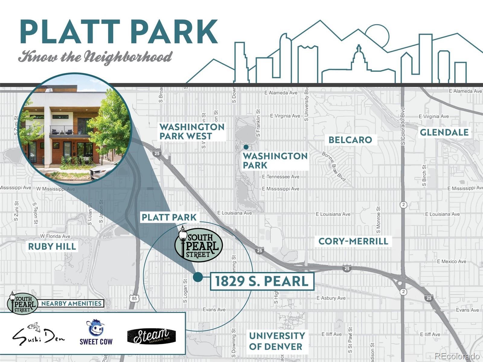 Experience elevated living in this modern 2-bed, 3-bath townhome located in the heart of South Pearl Street’s thriving dining and entertainment district. Surrounded by local favorites like Steam, Sweet Cow, Platt Park Brewing Company, Sushi Den, and nearby parks, this 2019-built residence combines thoughtful design with unmatched convenience. Inside, you’ll find freshly painted interiors and newly refinished white oak hardwood floors that add warmth and style throughout the open main level. The spacious living area flows into a sleek, contemporary kitchen featuring modern finishes and an ideal setup for everyday living or entertaining. A main floor powder room adds function and ease for guests. Upstairs, both bedrooms offer privacy and comfort, each with access to a full en-suite bath. The layout is efficient yet spacious, maximizing every square foot of the 1,348 interior space. One of the home’s most distinctive features is the expansive rooftop patio—perfect for hosting, lounging, or enjoying Colorado’s beautiful weather. A detached 1-car garage adds valuable parking and storage, rounding out this exceptional opportunity. If you're seeking stylish finishes, low-maintenance living, and a location near some of Denver’s most popular destinations, this home delivers.