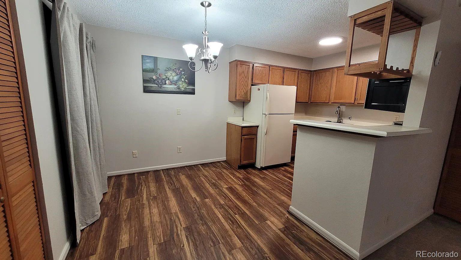 Luxurious, clean, newer paint throughout, corner unit, vaulted ceiling in the living room with large skylight. Fire place and balcony overlooking green area. Open kitchen includes peninsula that would fit a couple of bar stools. Large master with large walk in closet. Second bedroom also large with a walk in closet. Washer and dryer included. Central AC. Storage unit off the balcony. Outdoor pool and tenis court. Great area close to restaurants, and open space Bear Creek trail. Reserved parking spot #102. Quiet location, great condition. Small pet will be considered with additional pet rent and deposit. Great price for this beautiful condominium.