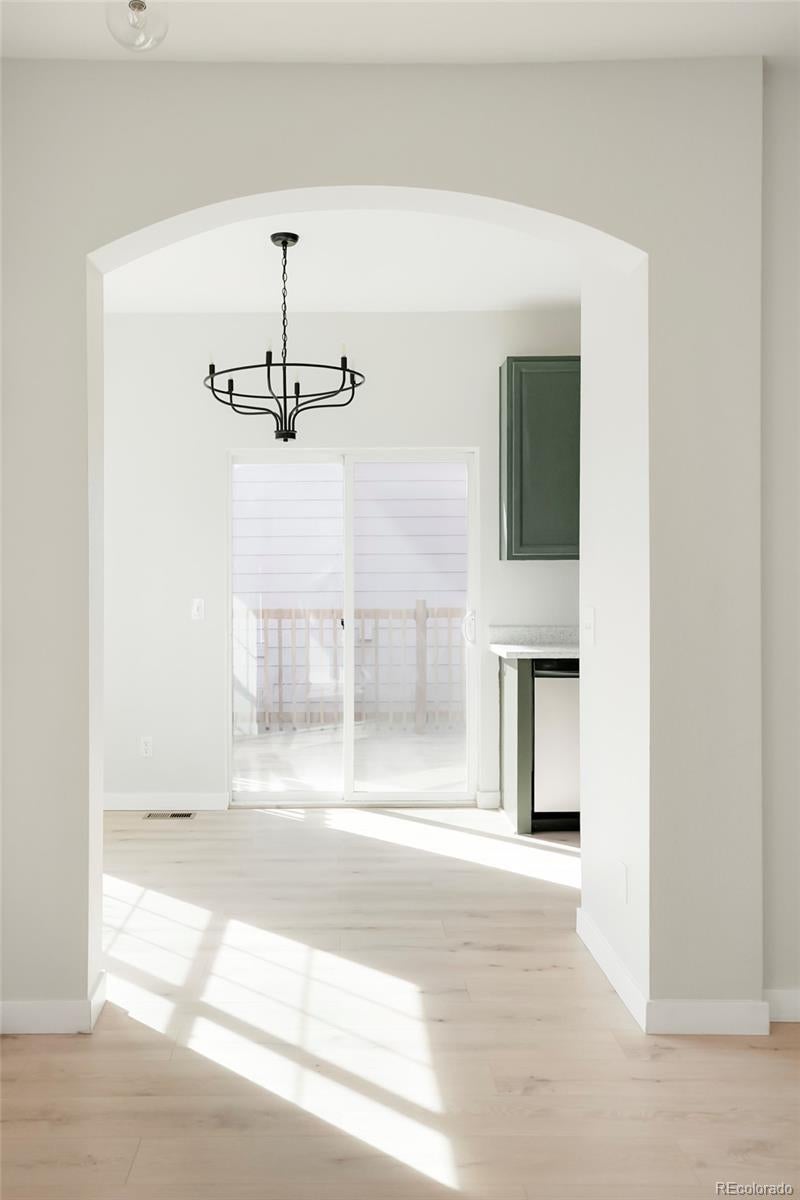 Affordability meets luxury in this beautifully refreshed home - tucked onto a quiet street and on a block where pride of ownership shines. The end of the block leads directly to the community pool and green space, while the surrounding neighborhood features well-kept homes and manicured lawns, creating a welcoming community feel. A covered front porch invites you inside to a light-filled main level featuring a living room with stylish trim detail, a dining area, and sliding glass doors leading to your private, fully fenced yard. The kitchen offers refinished countertops, freshly painted cabinets, and stainless steel appliances—all included. An updated half bath, laundry room, and abundant closet space complete the main level, along with direct interior access to the two-car garage with tall ceilings for added storage flexibility. Upstairs, the vaulted primary suite includes a stylishly updated en-suite full bathroom, a walk-in closet, plus two additional closets. Two more bedrooms are served by another updated full bathroom. Outside, enjoy a spacious deck perfect for grilling or relaxing, paired with low-maintenance xeriscaped landscaping. Updates include fresh interior paint, all-new flooring throughout (carpet, laminate, and tile), stainless steel appliances, updated light, plumbing, and door fixtures, refinished countertops and cabinets, and newly landscaped outdoor space. Conveniently located with easy access - just blocks from restaurants, grocery stores, coffee shops, parks, schools, and entertainment, plus quick access to I-225 for commuting throughout the metro area. This home is move-in ready and priced right. Jump on this opportunity before someone else does!