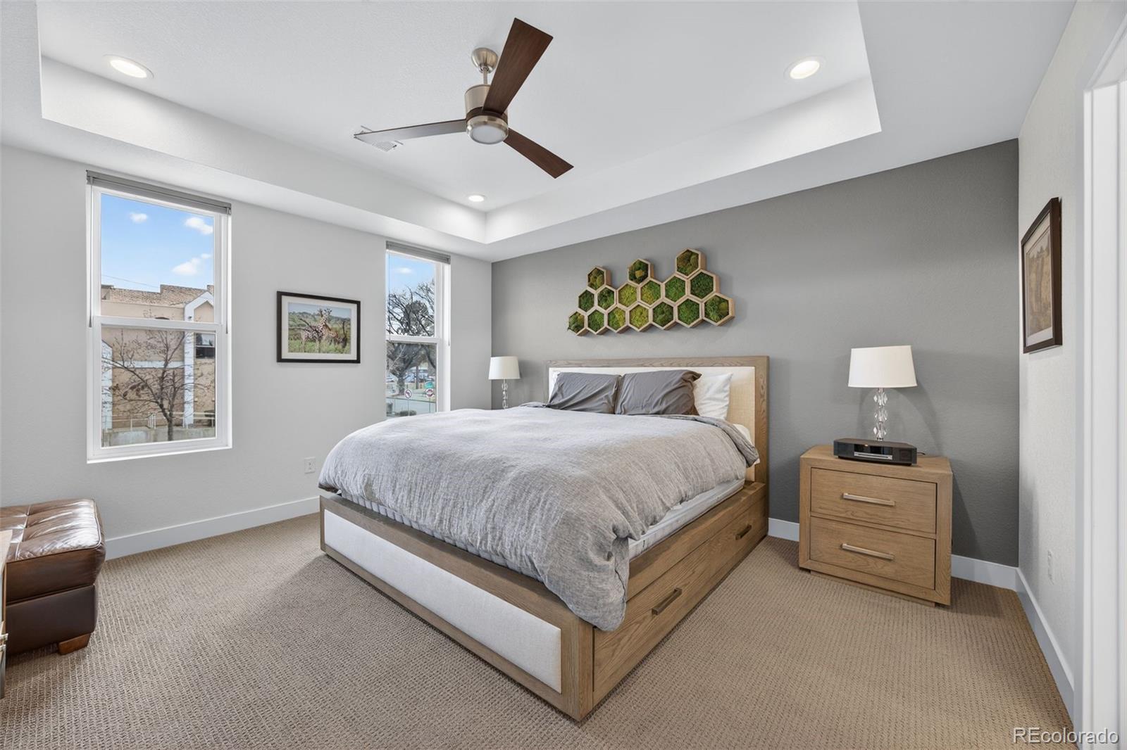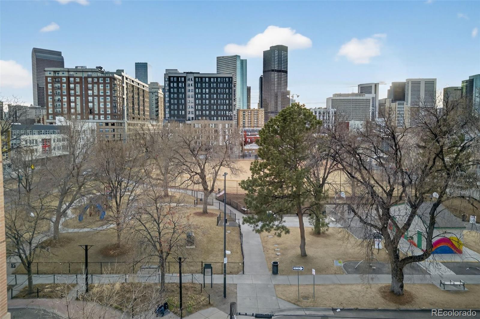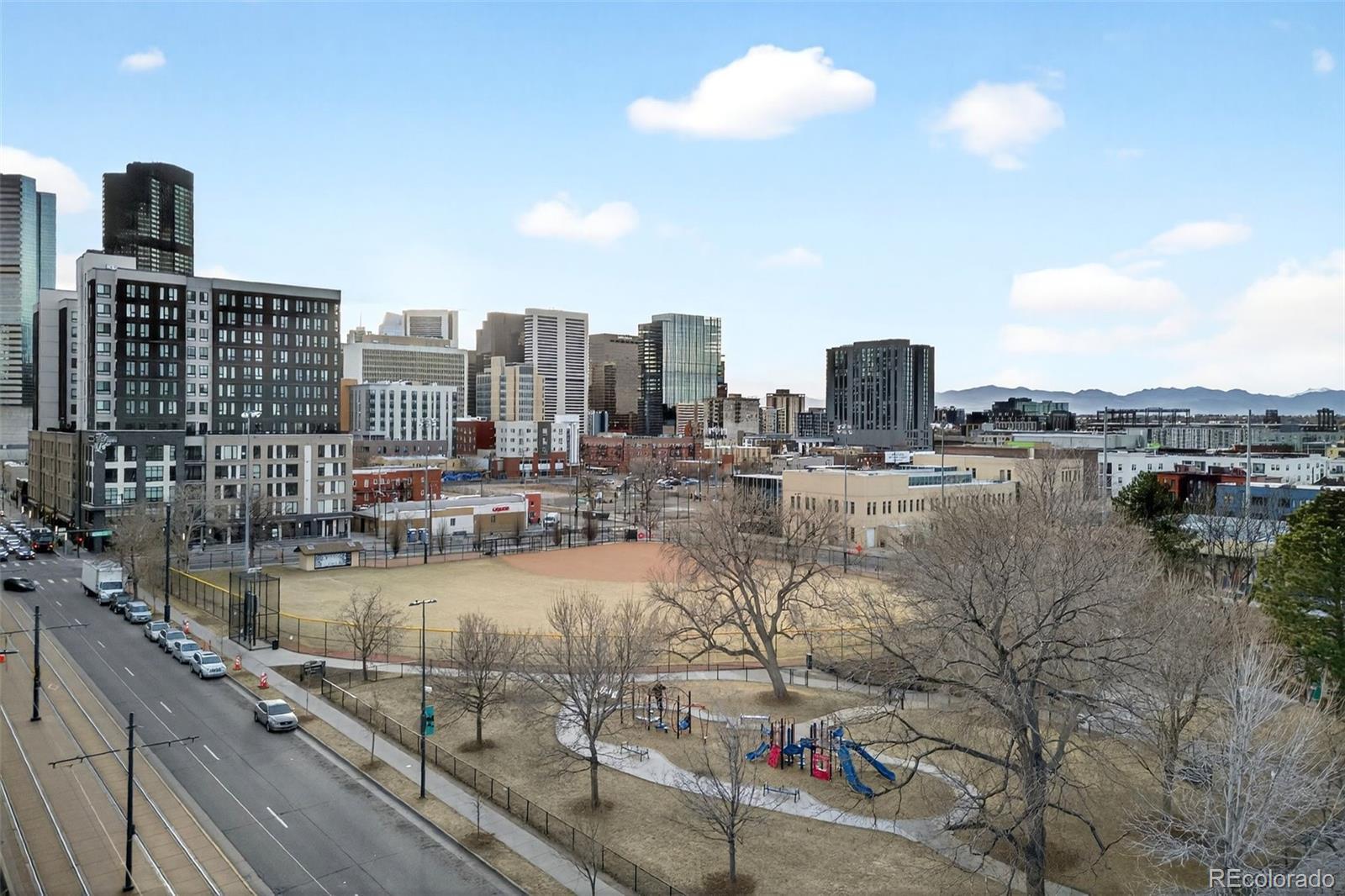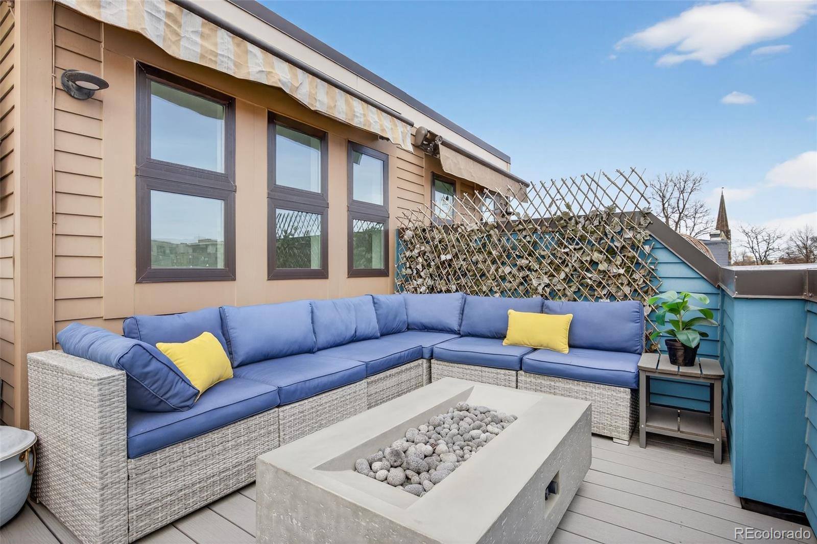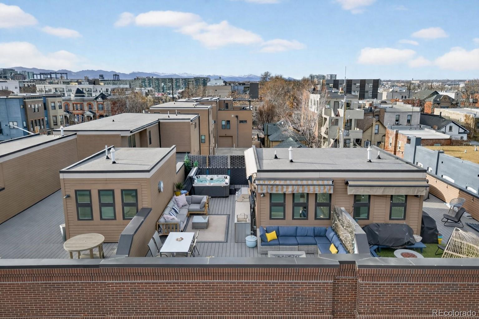 Visit 2411CaliforniaSt.com - Highlight Video, 3D Tour & Floor Plans. Welcome to 2411 California Street, a stylish brick row home offering the perfect blend of modern comfort, outdoor living, and unbeatable walkability in the heart of Denver. This thoughtfully designed residence features two spacious bedrooms, three bathrooms, and contemporary finishes throughout. Inside, the open living space is centered around a sleek kitchen featuring quartz countertops, stainless steel appliances, and wide plank flooring that create a clean, modern feel perfect for both daily living and entertaining. The primary suite serves as a peaceful retreat with a walk-in closet and an attached bathroom highlighted by an oversized shower, while the secondary bedroom offers its own ensuite bath for added comfort and privacy. Upstairs laundry with washer and dryer included adds everyday ease. Outdoor spaces truly set this home apart. A large, fully fenced front yard and covered porch create a welcoming entry, while the expansive rooftop deck delivers an exceptional outdoor experience featuring a grill island, hot tub, outdoor TV, motorized retractable sun shades, and sweeping views of Downtown Denver and the Rocky Mountains. Additional highlights include an attached one car garage, access to a community garden, and professional management that handles snow removal and lawn care, making this an ideal lock and leave property. Set directly across from Lawson Park and the Denver Public Library, and moments from Coors Field, restaurants, and coffee shops, this home delivers a truly walkable urban lifestyle in a prime Denver setting.
