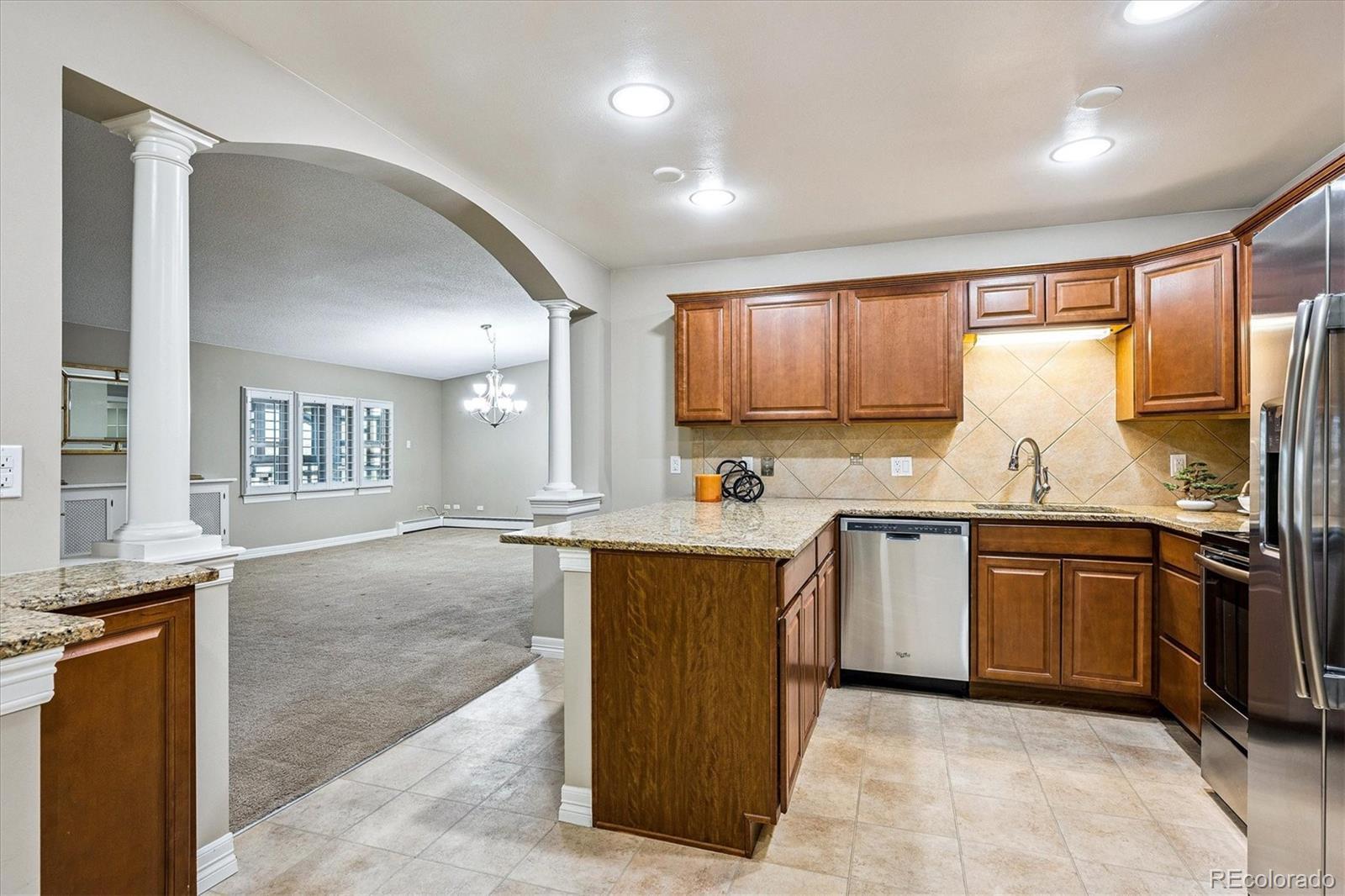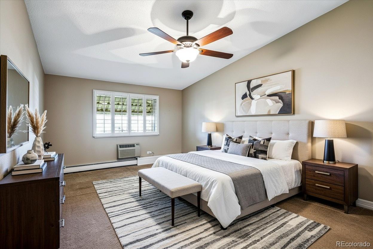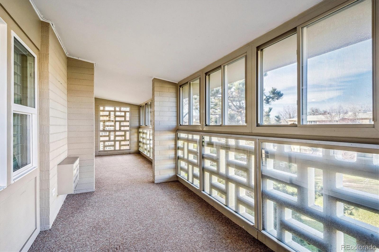 One of Windsor Gardens rare finds- you won't want to miss this one! Penthouse remodeled double primary unit overlooking large courtyard- one of few 1710 sf floorplans, featuring 2 oversized bedrooms w/en-suite bathrooms. Gorgeous remodel thru-out, reconfigured in several areas. Open kitchen w/wood cabinetry, granite slab counters, tile backsplash, stainless appliances, and breakfast bar seating. Both bathrooms remodeled w/newer vanities, granite tops, new fixtures, and tiled tub/shower surrounds and floors. What was the oversized dining room has been enclosed with glass french doors for bonus office/sitting area space. Double lanai with french doors, and vinyl glass/screen enclosure. Other features include interior window shutters on all windows/doors, 4 updates wall a/c units, neutral and updated paint/carpet/tile color scheme, and bonus double sized storage room on same floor as condo. 2 car detached garage included! **Windsor Gardens is Colorado's Largest Age 55+ Active Adult Living Condo Community. Did you know? Monthly HOA Dues include annual property taxes! And heat, water, sewer, trash, round-the-clock patrolling community responders, full time onsite association management, grounds/building maintenance, and activities department. Enjoy clubhouse amenities such as fitness center, indoor/outdoor pools, hot tub, sauna, billiards, library, craft rooms for ceramics, sewing, woodworking, and 9 hole par 3 golf course and onsite restaurant both open to the public. Stay engaged with a wide array of activities, clubs, and events scheduled every month. Additional features include garden plot program, private walking trail and nature preserve, and RV/Boat storage. The Highline Canal runs full length along south side of the complex. RTD Bus Stops located thru-out the community. FHA/VA approved. Close to restaurants, stores, shopping…Minutes to Lowry, Hwy 225, Cherry Creek…Easy access to DIA and downtown. Come see for yourself what Windsor Gardens has to offer. ©2021**