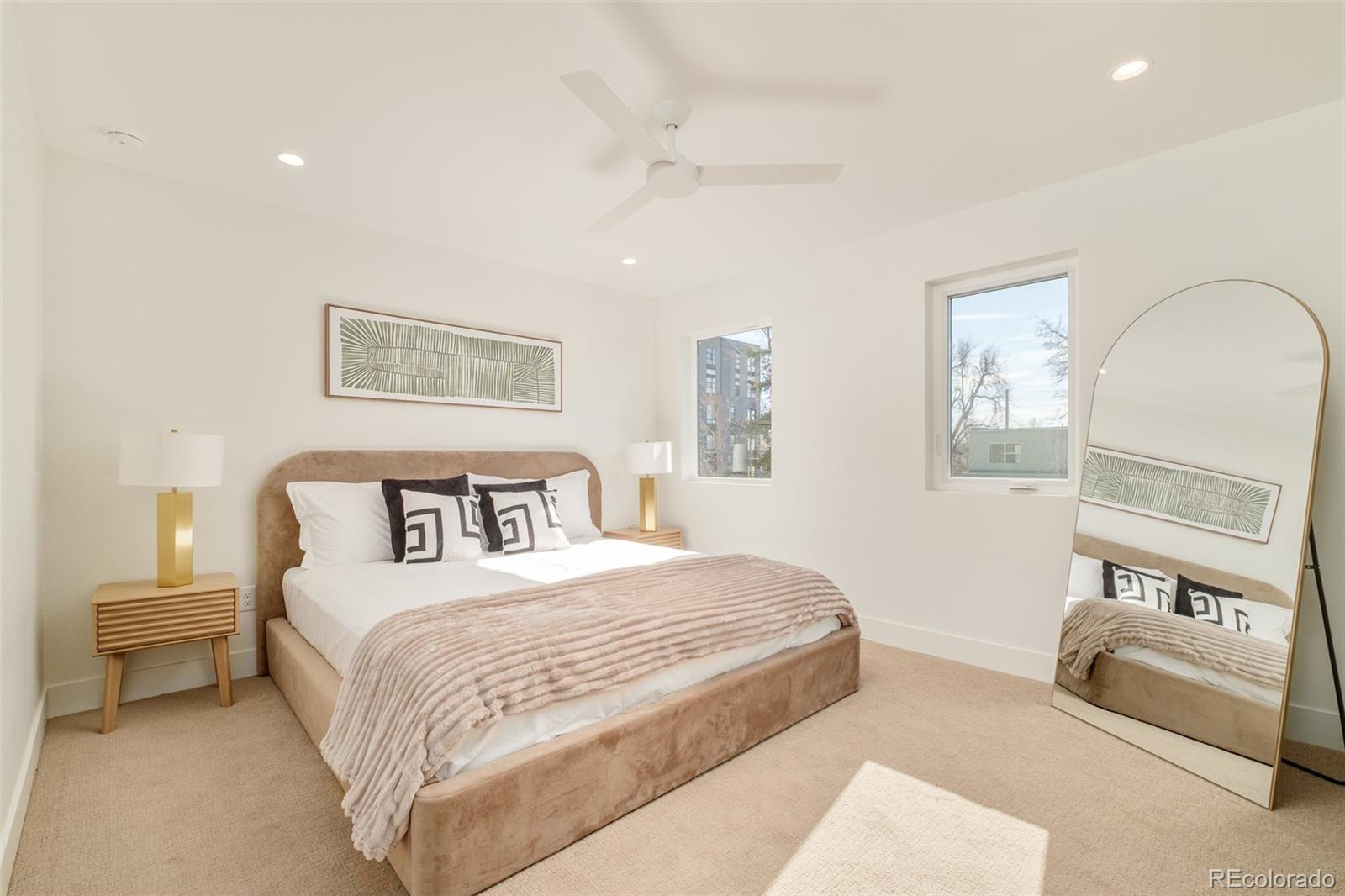 South + High introduces a collection of newly built luxury duplex residences designed for modern living near the University of Denver. Contemporary architecture, large windows, and a balanced palette of warm and cool designer finishes create light-filled interiors with clean lines and functional flow. Spanning four levels, each home offers flexible spaces, outdoor living, and thoughtfully crafted details suited for a variety of uses. The main level centers around an open-concept living area and a gourmet kitchen equipped with quartz countertops, modern cabinetry, stainless-steel appliances, and a large island ideal for meal prep and everyday gatherings. Adjacent dining and living spaces connect seamlessly, creating an efficient layout for both daily living and entertaining. The second level includes two spacious bedrooms, a full bath with modern tile selections, and a dedicated laundry area. The third level adds valuable living flexibility with a flex space, and access to an enclosed rooftop-style patio designed for outdoor dining, relaxation, or sunset evenings. The primary suite serves as a private retreat with a large bedroom layout, dual-vanity bath, walk-in shower, and refined finishes throughout. The basement level expands the home’s versatility with generous recreation space, an additional bedroom, and a full bath, ideal for guests, office use, fitness, or multigenerational living. Additional features include a detached garage, energy-efficient systems, contemporary lighting, durable flooring, and multiple indoor-outdoor transitions. The location offers immediate access to the University of Denver area, approximately 0.3–0.5 miles from nearby cafés, dining, parks, and neighborhood services. With new-construction quality, modern design, and a highly functional multi-level layout, South + High offers a rare opportunity for contemporary living in one of Denver’s most convenient and amenity-rich neighborhoods.