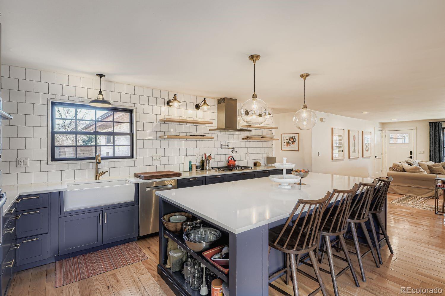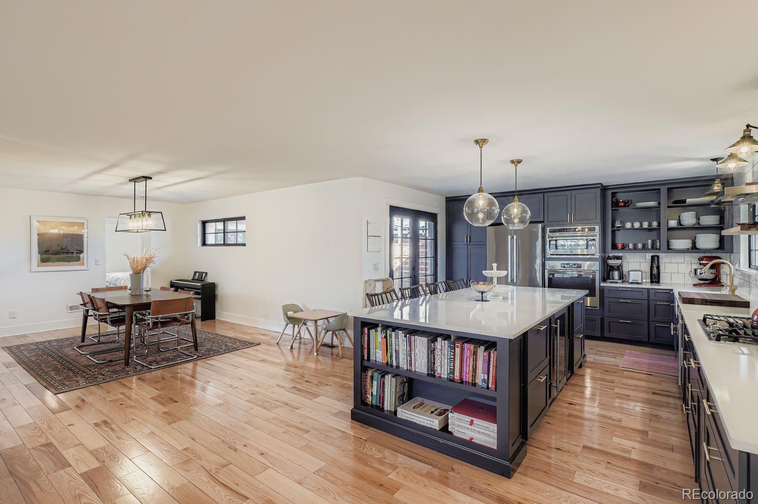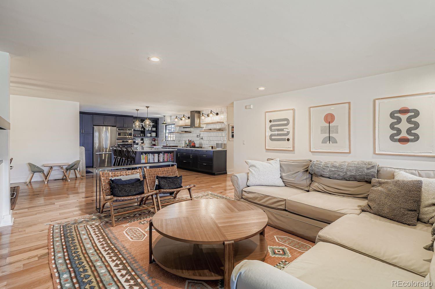 Nestled in the heart of Virginia Village, this beautifully reimagined mid-century ranch seamlessly blends timeless charm with thoughtful, high-end updates—delivering the open-concept layout today’s buyers crave. At the center of the home is a stunning new kitchen designed for both style and function: a generous island with seating, soft blue-gray shaker cabinetry, gleaming quartz countertops, and premium stainless-steel appliances. Flowing effortlessly into the bright dining and living areas, the space is anchored by a cozy fireplace and framed by oversized windows that flood the rooms with natural light. The private primary suite is a true retreat, featuring an expansive walk-in closet and a spa-inspired bathroom finished with classic, enduring design. Three additional well-proportioned bedrooms share a beautifully updated full bath, while a convenient laundry/mudroom connects directly to the attached two-car garage. Step outside to a rare 12,000-square-foot lot—fully fenced and offering both a spacious patio and lush lawn, perfect for play, entertaining, or quiet evenings under the stars. Move-in ready and ideally located just minutes from everything Denver has to offer, this turnkey ranch is the one you’ve been waiting for—elegant, effortless, and truly special.