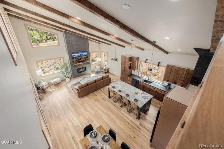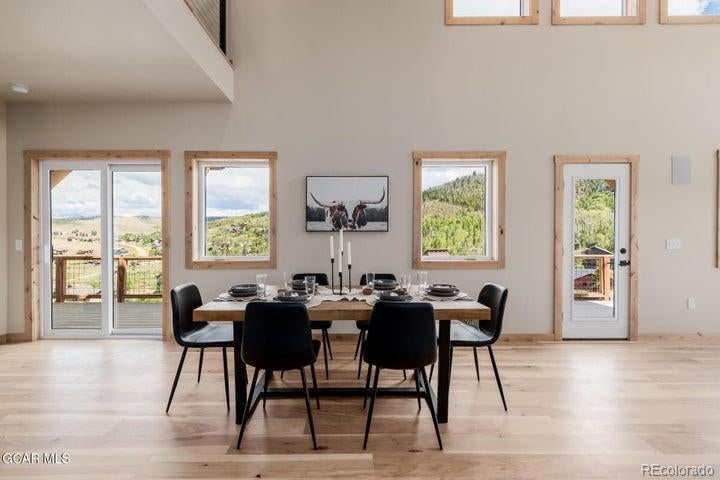 Wow! Outstanding two-story residence perfectly located to enjoy the Grand County lifestyle at its finest! This beauty showcases an exquisite contemporary curb appeal and a meticulously designed open floor plan promoting a sleek & functional interior that shouts attention to detail!! Upon entry, you're welcomed by a custom mud room with black cabinetry and slate stone floor. The massive great room is made bright & airy by soaring ceilings, and its stylish gas fireplace provides a warm & cozy ambiance for an inviting area. Nude knotty doors, recessed lighting, wood floors, soft paint, and spectacular views from every window are features that can't be left unsaid. The impressive kitchen features stained wood cabinets, tile backsplash, black appliances & matching granite countertops, a 6-burner gas range, and a large island with black cabinets & contrasting white granite counters. Upstairs, discover a sizable loft great for a reading nook. The large owner's suite has double-height ceilings, breathtaking mountain views, and a lavish ensuite with a dual granite vanity, a freestanding tub, and a sizable room perfect for your custom walk-in closet. The walk-out basement offers a family room, a neat bathroom with designer touches, and two perfectly sized bedrooms with plush new carpet. This extraordinary home has multiple decks with awe-inspiring views! The backyard is a blank canvas for you to get creative & add your personal touch. All this is located just outside Granby, Granby Ranch, and the Grand Elk Golf Course, allowing a variety of activities like skiing, fishing, golfing, biking, and hiking. What's not to like? This gem is a true dream!