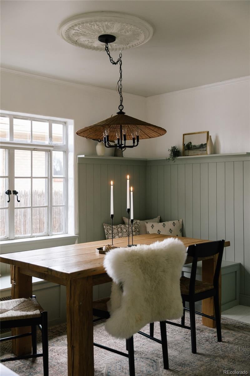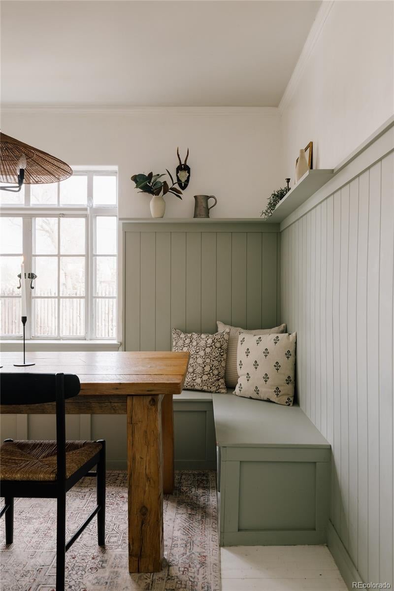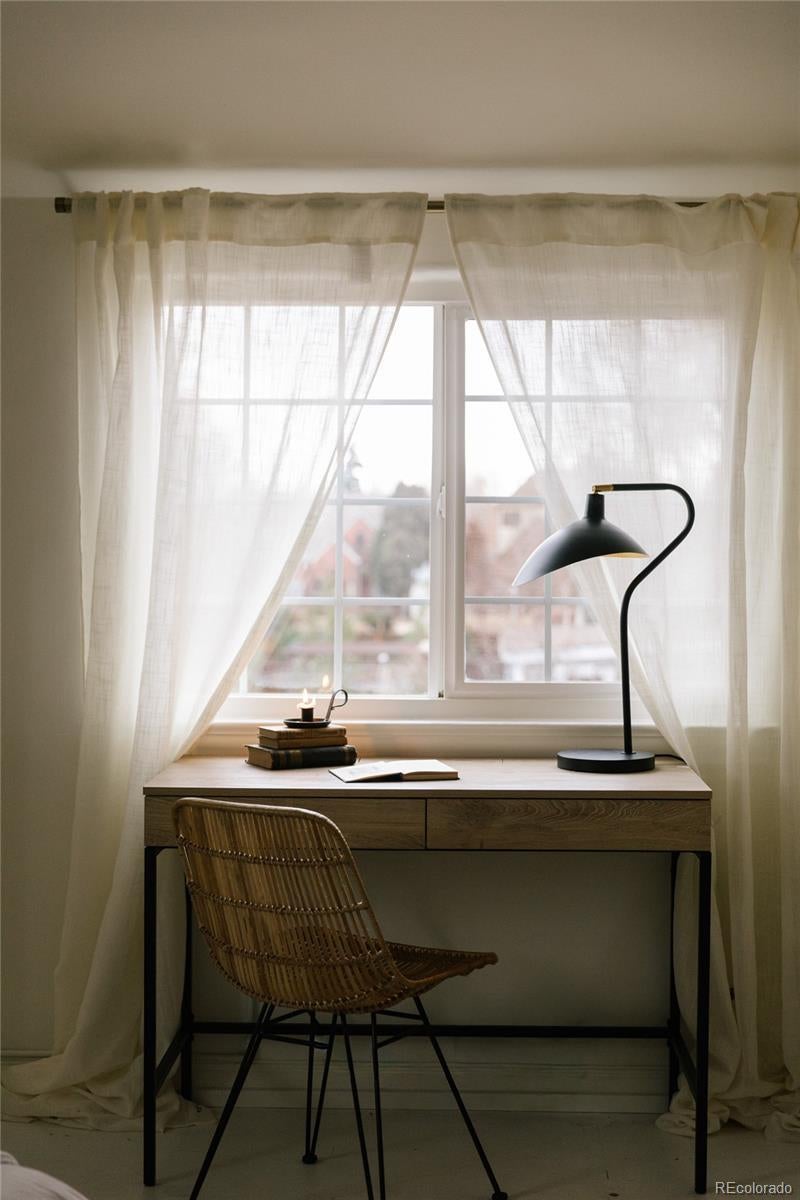 Storybook charm meets soulful personality in this truly one-of-a-kind home. From the moment you arrive, it’s clear this is no ordinary Denver residence. Inside, a color-drenched foyer sets the tone for a home that feels curated, creative, and full of character. The sun-kissed living room invites slow mornings and quiet evenings, anchored by a wood-burning fireplace that’s perfect for curling up with a favorite book. The heart of the home is designed for connection—an open, updated kitchen flows effortlessly into a cozy family room with a wood burning stove and a spacious dining area complete with a built-in banquette made for long dinners, laughter, and memorable gatherings. A main-level office offers a peaceful work-from-home retreat, while a flexible main-level bedroom provides the option for a primary suite or welcoming guest space. Upstairs, three comfortable bedrooms are paired with a beautifully finished bathroom that feels both classic and indulgent. Downstairs, the spacious basement with tall ceilings is ideal for movie nights, game days, or a relaxed hangout space for friends and family alike. Outside, the magic continues. Set on an expansive 9,000+ square foot lot, the outdoor spaces feel like a private escape. Mature landscaping and planting beds frame the backyard, while the front yard features a large sitting area centered around a gas fire pit—perfect for evening conversations and neighborhood hellos. Tucked away on a quiet, private street, yet just around the corner from City Park, museums, the Denver Zoo, and the beloved shops and restaurants of Park Hill, this location blends tranquility with effortless access to the best of city life. Downtown Denver, I-70, DIA, and the mountains are all within easy reach, making everyday adventures simple. There is truly nothing else like this home in Denver. Welcome home