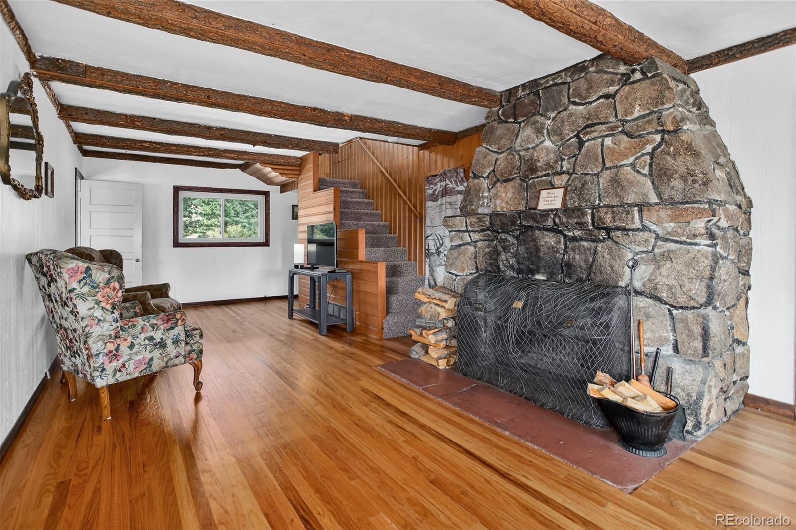 Charming 1929 Cabin with Endless Potential Nestled in the foothills between Evergreen and Marshdale, this 1929 cabin offers stunning views of Mount Blue Sky and a rare opportunity to create your dream mountain retreat. Bursting with character, it features a classic stone fireplace, large windows that flood the interior with natural light, and a flexible upstairs space perfect for guests, hobbies, or additional living. The kitchen area vintage, with panoramic view of Mount Blue Sky. Outside, the spacious lot provides privacy, room to expand, and endless potential for decks, gardens, or outdoor living spaces—all surrounded by breathtaking mountain scenery. Whether you’re an investor, builder, flipper, or someone eager to customize a mountain getaway, this property is the perfect canvas. With quick access to local shops, dining, and schools, you’ll enjoy both convenience and the serenity of mountain living. The well is permitted for domestic use. Home is being sold as is. Don’t miss your chance to restore and transform this charming foothills cabin into the mountain escape of your dreams!