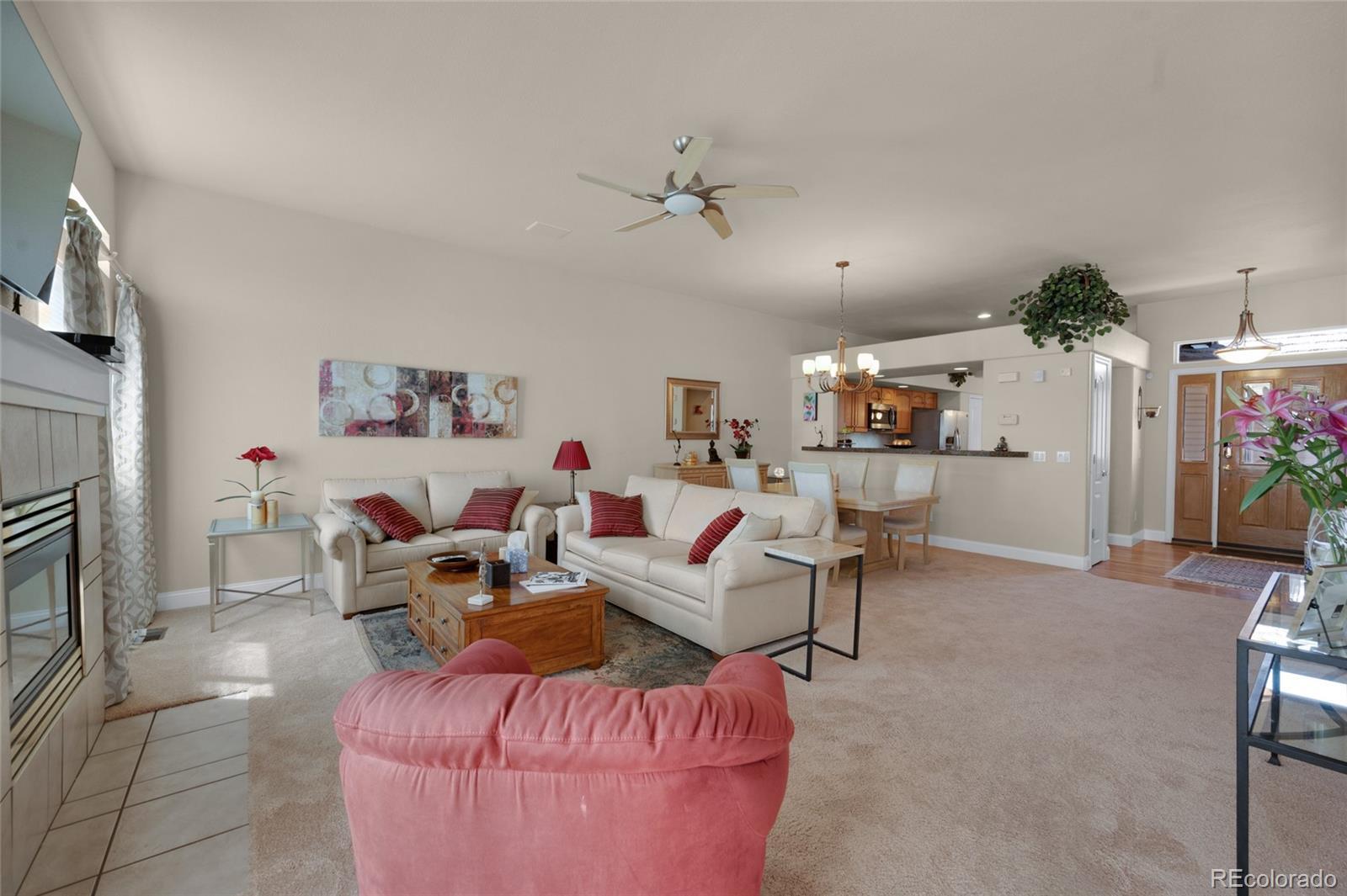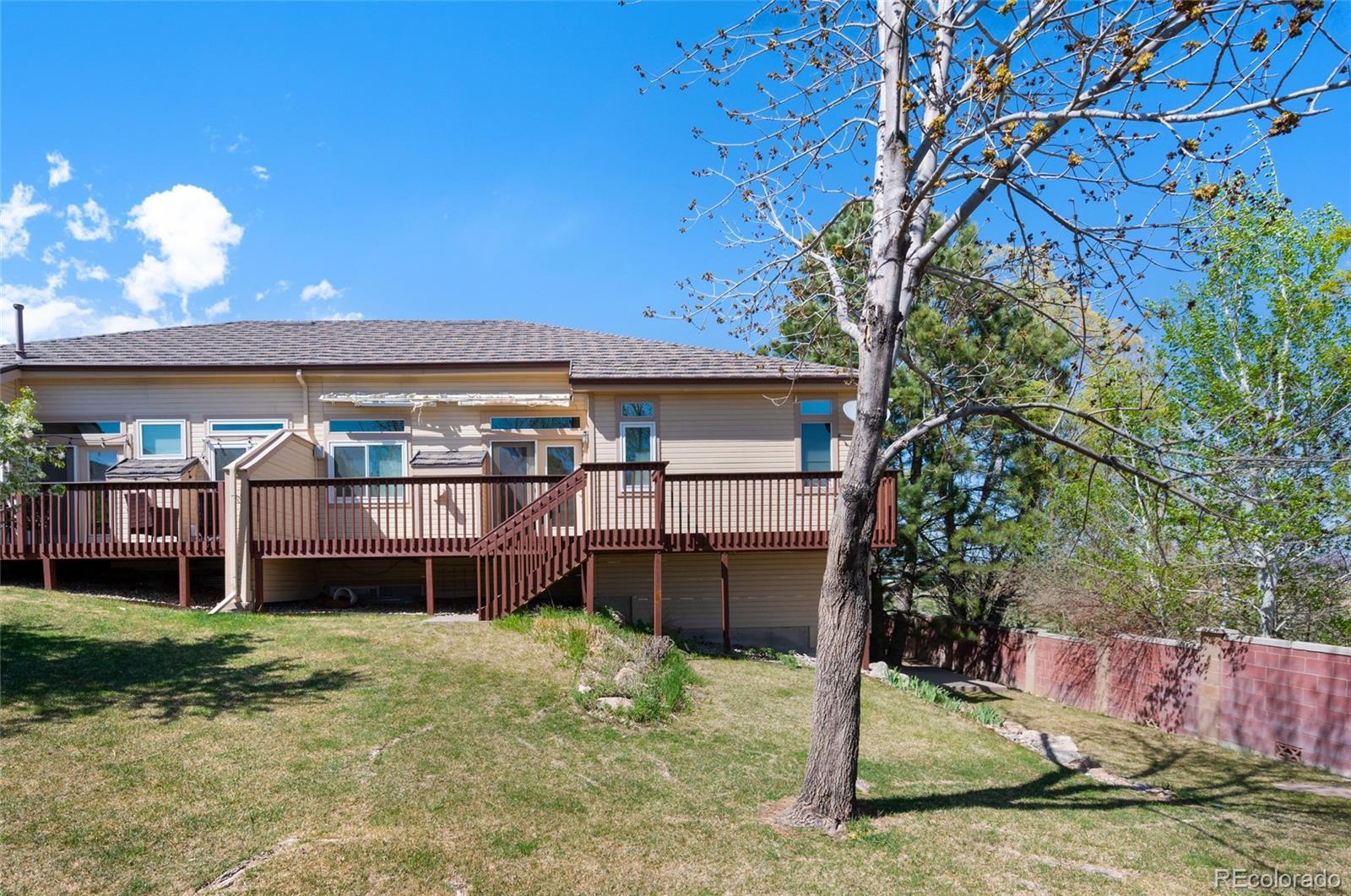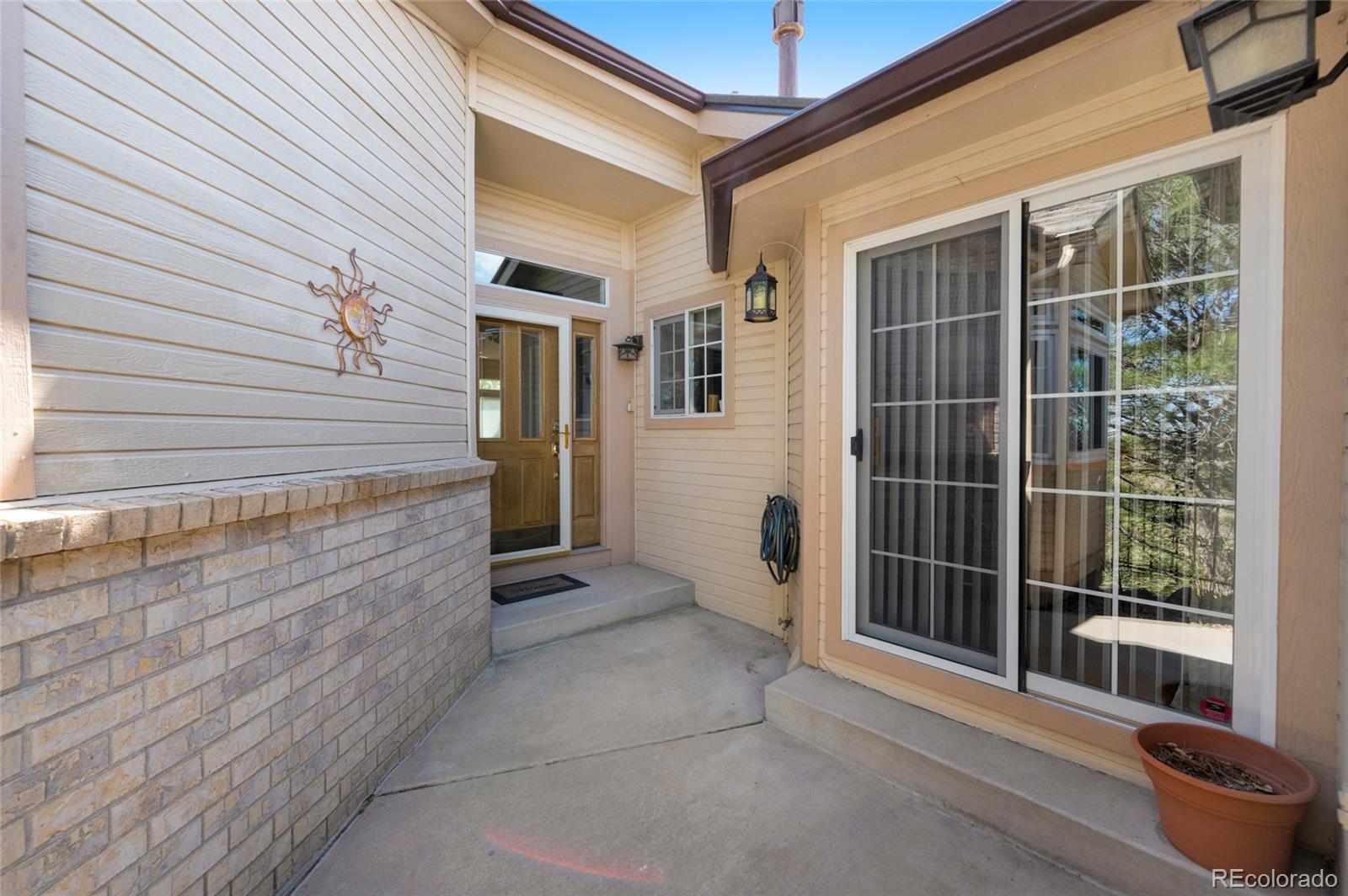 Welcome to your serene retreat in the desirable Enclave at Broadmoor community! This beautiful ranch-style townhome offers the epitome of privacy, nestled at the end on the largest lot in the rear of the enclave. Enjoy the perks of attached-home living without any exterior maintenance, thanks to the comprehensive HOA services covering gardening, landscaping, and snow removal. Step into your own fenced-in front courtyard, a charming welcome home greeting. Inside, the ambiance is airy and inviting with a light-filled open floor plan. Entertain effortlessly in the spacious eat-in kitchen featuring warm wood cabinetry, stainless steel appliances, granite countertops, and a generous eat-in nook. The main level also hosts a cozy living room with a gas fireplace and adjoining dining area, both offering access to the deck showcasing stunning mountain and open space views. Retreat to the main level primary suite boasting a luxurious 5-piece en-suite and a sizable walk-in closet. Enjoy stereo and built-in speakers throughout the house. An additional bedroom on the main level ensures convenience, while two more spacious bedrooms await downstairs along with a family room complete with a wet bar. Step outside to the wonderful backyard deck, perfect for soaking in the outdoor ambiance. Recent updates elevate the home's appeal, including tiled bathrooms, fresh paint, a durable deck replacement, updated some interior doors, professionally cleaned carpet, enhanced energy efficiency with a new furnace motor blower, and even sanitized grout for a pristine shower experience. Further enhancing the appeal is the built-in safe and the community's prime location, offering walking trails, majestic mountain vistas, and proximity to amenities such as parks and lakes and grocery stores. With its move-in ready status, this townhome is ready to welcome you to a life of comfort and convenience.