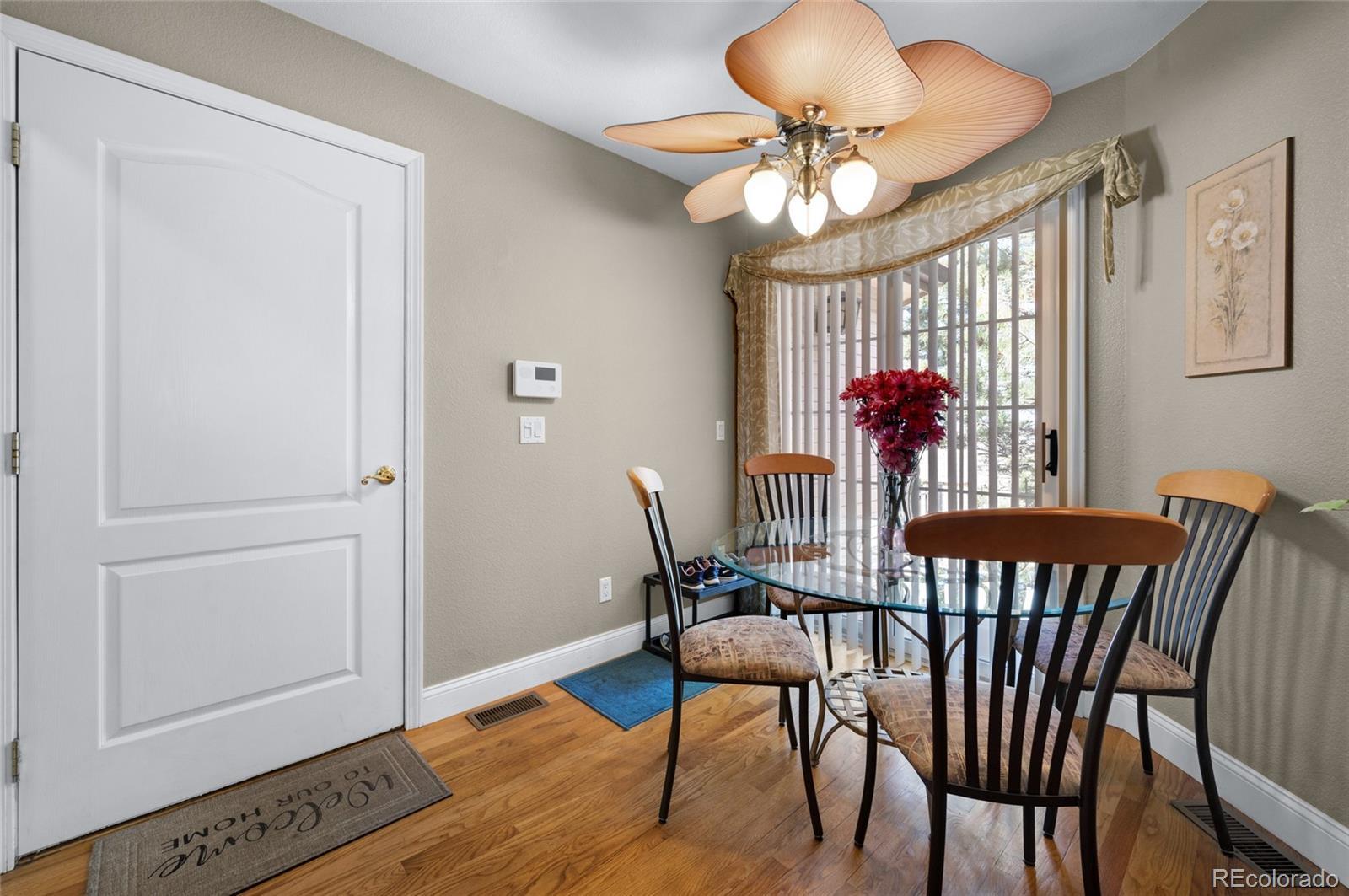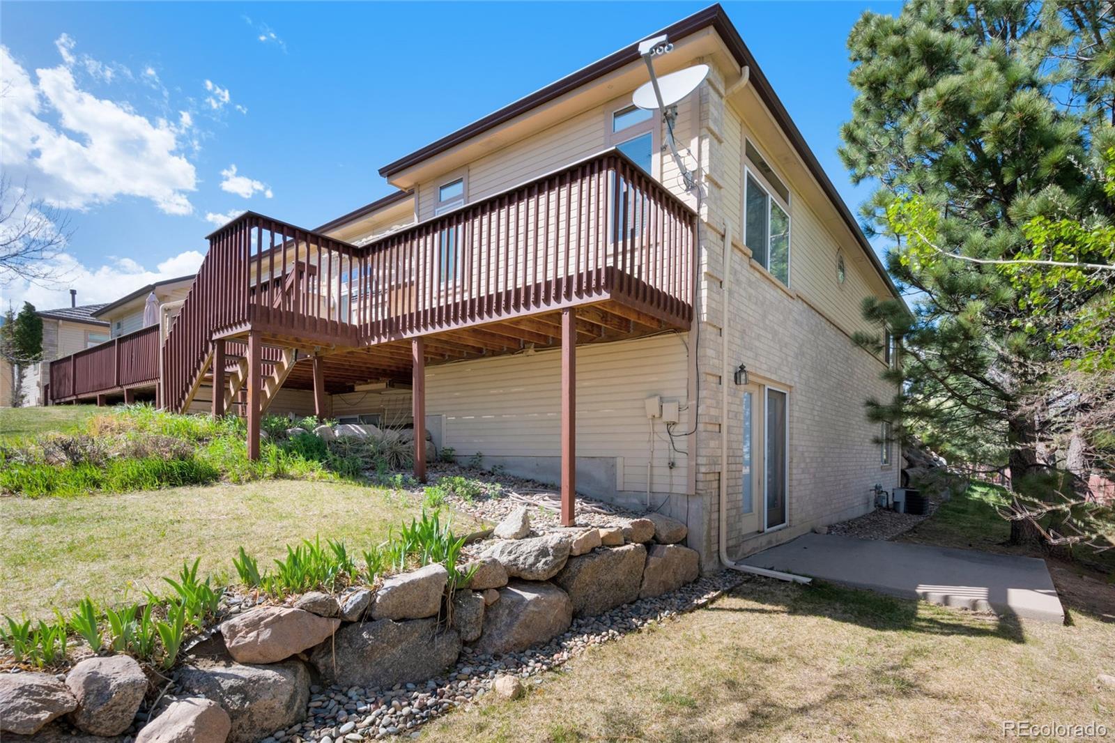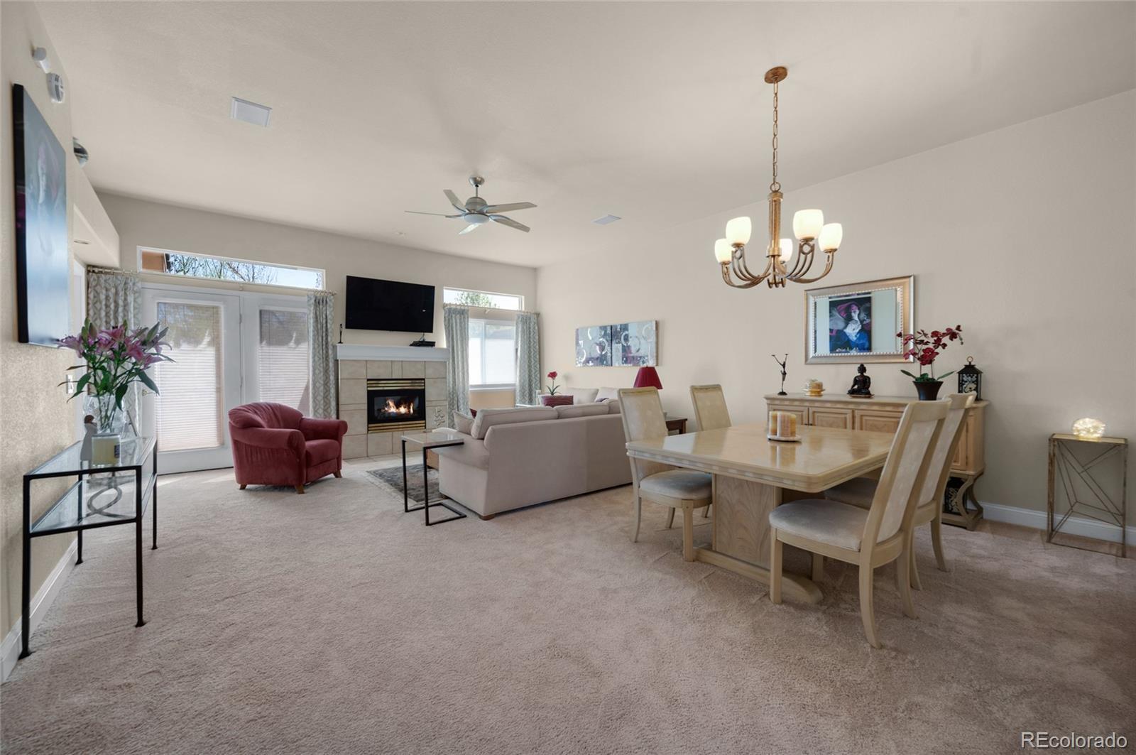 Welcome to your serene retreat in the desirable Enclave at Broadmoor community! This beautiful ranch-style townhome offers the epitome of privacy, nestled at the end on the largest lot in the rear of the enclave. Enjoy the perks of attached-home living without any exterior maintenance, thanks to the comprehensive HOA services covering gardening, landscaping, and snow removal. Step into your own fenced-in front courtyard, a charming welcome home greeting. Inside, the ambiance is airy and inviting with a light-filled open floor plan. Entertain effortlessly in the spacious eat-in kitchen featuring warm wood cabinetry, stainless steel appliances, granite countertops, and a generous eat-in nook. The main level also hosts a cozy living room with a gas fireplace and adjoining dining area, both offering access to the deck showcasing stunning mountain and open space views. Retreat to the main level primary suite boasting a luxurious 5-piece en-suite and a sizable walk-in closet. Enjoy stereo and built-in speakers throughout the house. An additional bedroom on the main level ensures convenience, while two more spacious bedrooms await downstairs along with a family room complete with a wet bar. Step outside to the wonderful backyard deck, perfect for soaking in the outdoor ambiance. Recent updates elevate the home's appeal, including tiled bathrooms, fresh paint, a durable deck replacement, updated some interior doors, professionally cleaned carpet, enhanced energy efficiency with a new furnace motor blower, and even sanitized grout for a pristine shower experience. Further enhancing the appeal is the built-in safe and the community's prime location, offering walking trails, majestic mountain vistas, and proximity to amenities such as parks and lakes and grocery stores. With its move-in ready status, this townhome is ready to welcome you to a life of comfort and convenience.