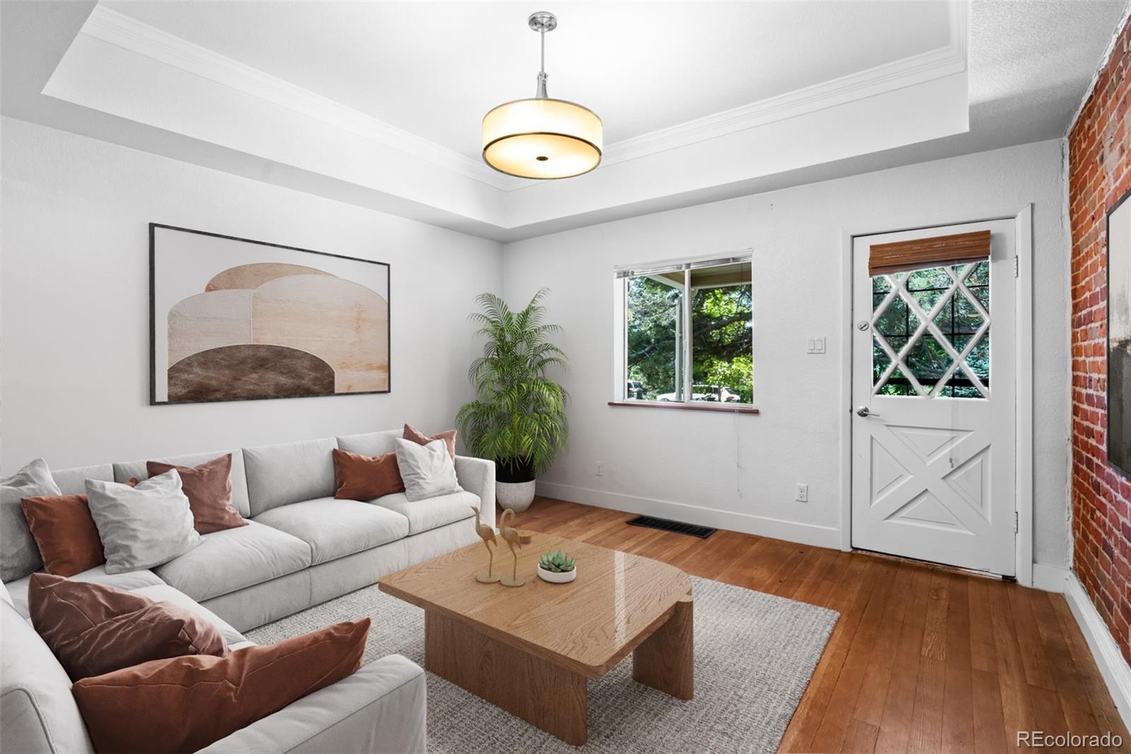 Welcome home! This is your rare opportunity to own an END UNIT row home with NO HOA mere blocks from the restaurants and shops in the heart of Highland Square! This fully updated 2 bedroom / 1 bathroom unit features awesome exposed brick, charming wood floors, a kitchen with quartz countertops and stainless steel appliances, an updated full bathroom, an included stacked washer/dryer, a private fenced back yard, and an oversized off-street parking space. Central A/C keeps you cool on hot summer days! The covered front porch overlooking the oasis of a yard is a wonderful place to enjoy morning coffee on a lovely and quiet block--one that is mere steps from some of the best restaurants/shops in Denver. Easy access to LoHi, downtown Denver, and I-70 to the mountains. Quick possession available--schedule your private showing today!! Listing broker has an ownership interest in the property and is licensed to practice real estate brokerage in the state of Colorado. Some photos are virtually staged. Buyer to verify all information.