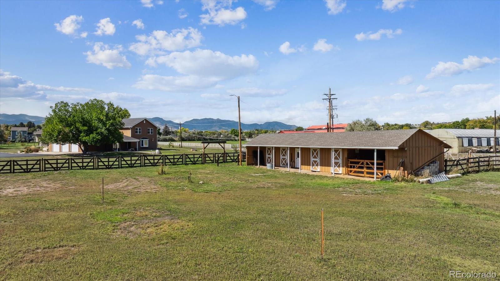 1.94-acre side-by-side double lot in west Arvada zoned A-2 that allows for horses and other animals. With ample fencing and a 4-stall barn with tack room, this property is a horse lover’s dream! The 2,862 sqft 2-story stucco home has a freshly painted interior and brand new carpeting. The main floor has hardwood floors throughout seamlessly joining all the generously sized rooms. The formal living room has a wood burning fireplace and adjoins the formal dining room. The family room has a wood burning fireplace and vaulted wood beam ceiling. The spacious kitchen has a breakfast nook with bay window, tons of cabinetry & countertop space, and stainless steel appliances including a Thermador gas cooktop. Rounding out the main floor is a half bath and the laundry room with utility sink. The upper level features the primary bedroom suite with walk-in closet and 5-piece bath with jetted tub, 3 additional bedrooms, a full bath with double sinks, and a walk-in hall closet. 2 furnaces. A/C for upper level only. Enjoy multiple outdoor living spaces including the flagstone patio with iron gazebo off the dining room and the covered patio that walks out to the firepit off the family room. Oversized 864 sqft, 3 car attached garage and plenty of extra parking in the circle drive. The property is serviced by 2 wells and septic. Conveniently located to all that Arvada has to offer such as the Arvada Indoor Equestrian Center, Apex Center, multiple shopping & dining options, Jeffco schools, and highway access to Downtown Denver or the mountains.
