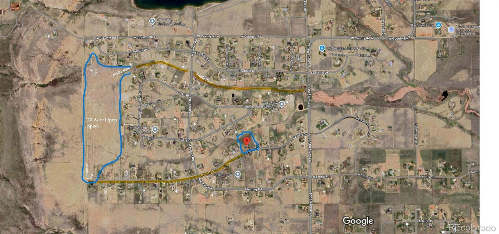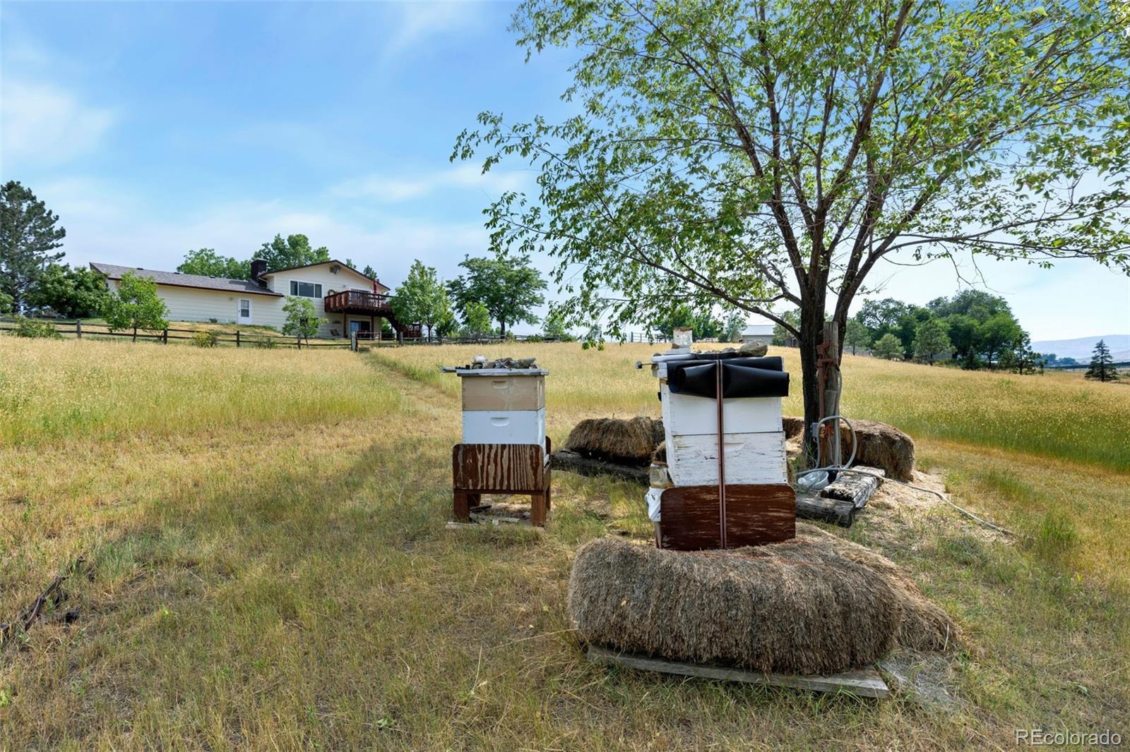 Welcome to your own private haven nestled on a serene 2.4-acre cedar-fenced, treed lot — the perfect blend of rustic charm and modern convenience. This 5-bedroom, 3-bath, 2,812 sq ft home offers breathtaking views and is just a short walk to a 20-acre foothills open space ideal for evening horseback rides or peaceful sunset strolls. Enjoy a lifestyle of self-sufficiency and natural beauty with raised garden beds, returning seasonal flowers and fruit-bearing trees (including cherry, plum, golden locust), and an variety of established landscaping including Russian sage, salvia, lilac bushes, spruce trees, and aspens. A thriving beehive and an adorable chicken coop with run complete your backyard farm-to-table experience. There’s also a fenced pasture (bring your horses!) and a 48” x 18’ Intex pool with a sand pump for relaxing summer days. Inside, the home is equally impressive: all stainless steel kitchen appliances, XL Samsung Bravo 4.6 washer and dryer included in sale, wet bar, Italian porcelain tile custom tile flooring, walkout lower level, central A/C & attic fan, 2 wood burning fireplaces, and an attached oversized garage with plenty of storage and workspace areas. Recent updates include a new roof, seamless gutters, 50-gallon hot water heater, and concrete driveway pad. Blacktopped driveway and spacious stoned parking area for all your toys. Whether you’re soaking in the jetted bubble bath after a trail ride or enjoying morning coffee with a mountain view on the back deck, this unique property has everything you need to live your dream lifestyle. Located just 13 minutes from Berthoud’s historic downtown shops, breweries, and new community recreation center, and a short drive to Longmont, Loveland, and Boulder, this property offers both tranquility and convenience. Tractor with implements and barn trusses negotiable. Don’t miss this rare opportunity to own a slice of Colorado countryside with all the comforts of home. Schedule your private showing today!