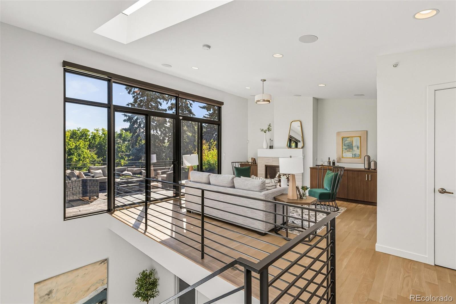 Luxurious Wash Park Townhome Right On The Parkway! Nothing like it in the market! Perfectly positioned just steps from Denver’s iconic Washington Park! Offering over 2,627 square feet of contemporary urban living, this three-story townhome blends elegance, comfort, and functionality in one of the city’s most sought-after locations. Lives and looks brand new – Step inside to a Great Room with floor to ceiling windows, soaring ceilings, gas fireplace, opens onto a parkway facing deck and beachy toned oak floors. Open floor plan creates entertainment haven with a top-notch kitchen boasting quartz countertops, custom cabinetry, top shelf appliance package. Casual dining area open to kitchen and great room and a second main level deck. Open tread staircase leads to second story that is home to an expansive Primary Suite with a new spa inspired bathroom, a classy walk-in closet and a second story deck overlooking the Marion Street Parkway with friendly walkers and cyclists. Second story has an auxiliary bedroom and full bath in hallway. The third story presents with versatility offering a second great room with gas fireplace, full floor to ceiling glass doors opening onto a massive 3rd story deck with unmatched views of parkway and park-life! It is also equipped with a ¾ bathroom and could be ideal guest suite or home office. 2 car heated garage sits below – Outdoor enthusiasts will appreciate the private front yard with direct access to Marion Street Parkway’s bike and pedestrian path. Only steps to many Denver favorite dining and coffee spots, including Wash Park hot spots like Olivia, Reivers Bar & Grill, Perdida, and Nixon’s Coffee House—and only 5 minutes to CC for more dining and shopping! With its prime location, modern design, and rare private parking, this one-of-a-kind townhome is a true standout in Denver’s vibrant real estate landscape.