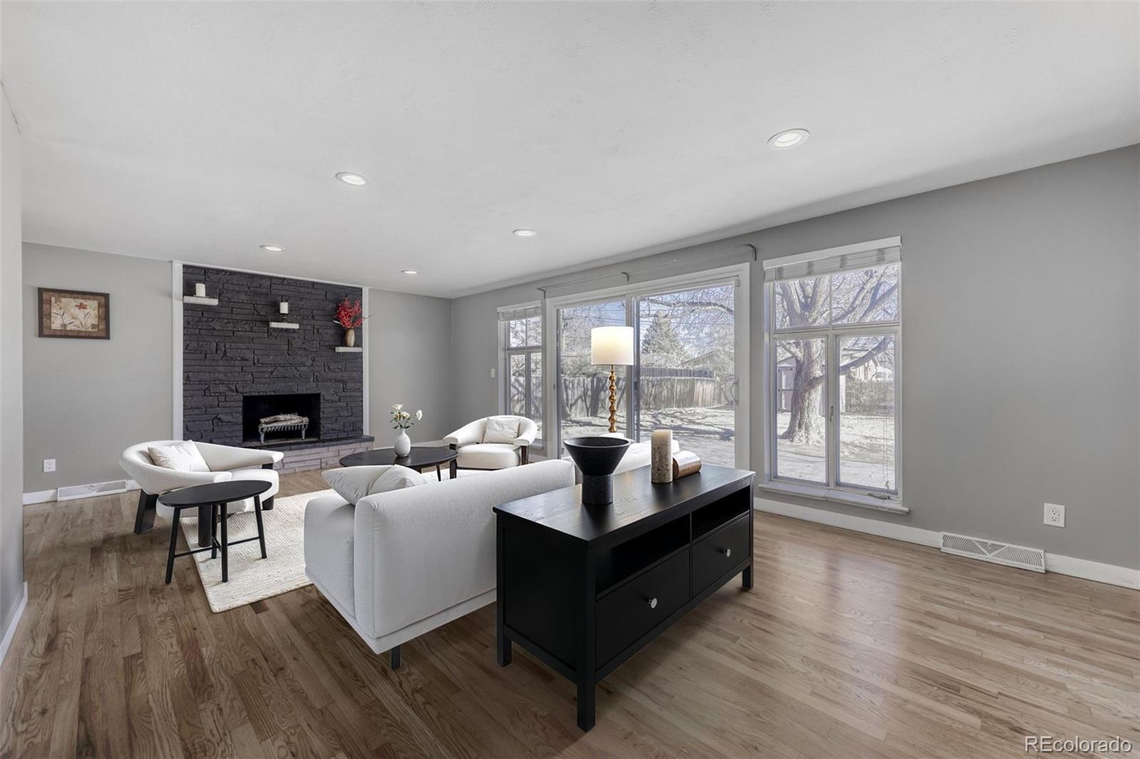 Unbelievable value in the heart of Original Broomfield! This completely renovated 5-bedroom ranch-style home offers the perfect blend of modern updates, functional living, and an unbeatable location — no HOA and highly acclaimed Boulder Valley schools. Step inside to find newly refinished hardwood floors throughout the main level and an expansive living room anchored by a real wood-burning fireplace, flooded with natural light and ideal for both everyday living and entertaining. The refreshed kitchen and open layout flow seamlessly to the outdoors, creating an inviting space to gather. The primary bedroom features its own ensuite bathroom and two closets, while the finished lower level adds exceptional flexibility with brand-new carpet, two conforming bedrooms with new egress windows, and a newly added 3/4 bathroom — perfect for guests, teens, or a home office setup. Major updates include a hot water heater and A/C installed just one year ago, offering peace of mind for years to come. Outside, enjoy a large fenced backyard with a spacious stamped concrete patio and storage shed — ideal for summer BBQs, playtime, or relaxing evenings. All of this in a location that truly can’t be beat, with easy access to parks, schools, shopping, dining, and the future Broomfield Town Center coming soon, adding even more long-term value. This home checks every box — space, updates, location, and value — and is a rare opportunity in one of Broomfield’s most desirable neighborhoods.