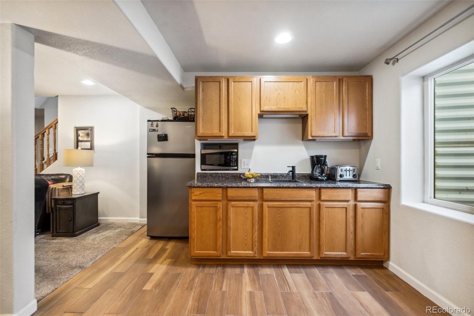 Welcome to 12783 Pine Valley Circle in Peyton, CO – a spacious, move-in ready home with awesome mountain views and room for everyone to spread out and enjoy! Inside, you'll love the updated kitchen with modern finishes, perfect for cooking up your favorites while staying connected to the action. The main level features easy-care vinyl plank flooring and a convenient laundry room, so everything you need is right at your fingertips. There's a main-level bedroom that's great for guests, a home office, or flex space, plus a fully finished basement with a kitchenette – ideal for movie nights, entertaining, or giving visitors their own hangout zone. Step out back to your large concrete patio and take in the gorgeous mountain views. It's the perfect spot for summer BBQs, morning coffee, or relaxing after a long day. This home blends comfort, function, and Colorado charm – come take a look and picture yourself living here!