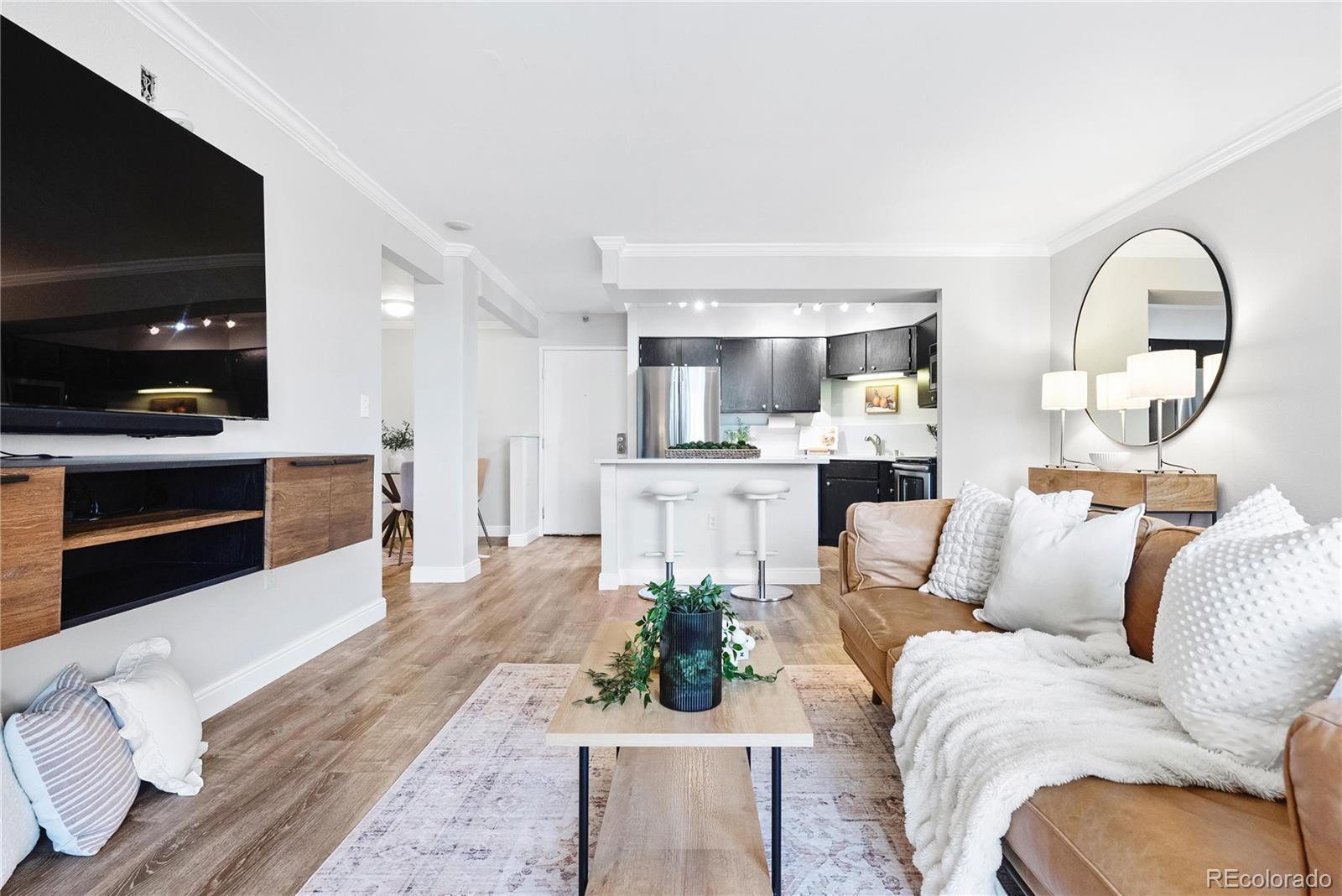 NEW PRICE $299,900 + All West Elm Furniture is now negotiable! Modern,hip and sophistication await in this 2/2 condo in iconic Lincoln Park in The Denver Building.Enjoying an enviable location with easy access to the light rail and freeway, this residence places you in the heart of Denver!Revel in breathtaking views and unbeatable convenience.The modern and stylish interior offers stunning vistas of the city skyline.Step inside to discover a beautiful space boasting spacious open-concept kitchen with center island with bar seating, stainless appliances and ample counter space.The living room provides access to a generously sized balcony, perfect that first cup of morning coffee or al fresco dining while admiring the city lights .This home boasts a dedicated dining area, and two spacious bedrooms with French Doors,each large enough to accommodate a king-size bed.The secondary bedroom is staged as an office, perfect for today's remote work option. Residents also enjoy resort-style amenities: pool, hot tub, gym, movie theater, fire pits, clubhouse, and more. Just steps from grocery stores, top-rated restaurants and all that Downtown Denver offers! Both bedrooms offer lovely views and ample closet space, aunique feature in city living.This unit includes 2 garage parking spaces and a storage unit. One or both of the parking spaces can be rented out for additional income.This 2nd floor location is ideal, never a need to take the stairs or elevator, you come in right on the 2nd level from the secure parking garage, offering secure, covered, one-level living in the heart of the city! Just blocks away from the light rail, Santa Fe Arts District, Cherry Creek Path, and all the fantastic dining, shopping, and nightlife options that Downtown Denver has to offer! Amenity-laden HOA covers a ton including a storage locker for all your toys, heating and cooling , and full use of The Lincoln amenities 1.5 blocks to the south. Compare list price to one-bedrooms in the building!