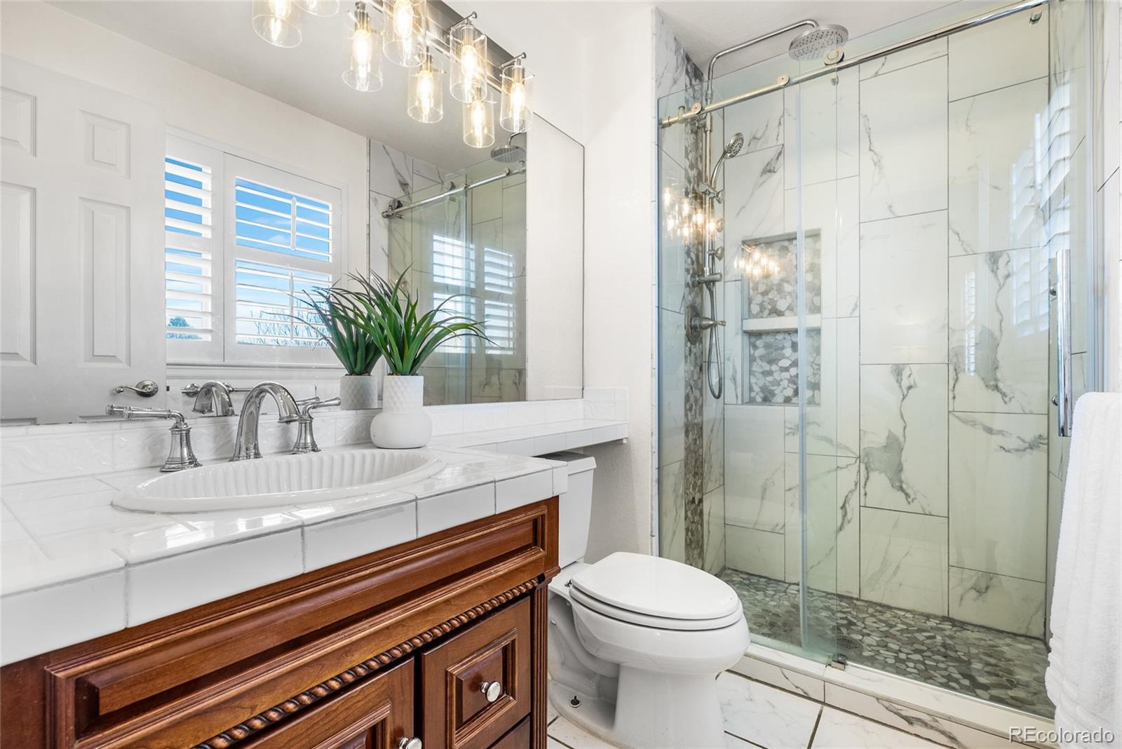 This beautifully maintained 3 bedroom+loft move-in ready home combines comfort, upgrades, and location—don’t miss the opportunity to make it yours! The main level features hardwood floors throughout and a bright, open kitchen designed for both everyday living and entertaining. The kitchen showcases granite countertops, a subway tile backsplash, and ample cabinetry, creating a stylish and functional space. The main floor boasts two living areas and a formal dining room, as well as a gas fireplace to enjoy. Plantation shutters around the home add timeless charm and natural light. Upstairs you’ll find three bedrooms, including the spacious primary suite featuring breathtaking mountain views, a walk-in closet, and an en suite bathroom. A versatile loft space provides the perfect area for a home office, reading nook, or playroom. And an additional full bathroom completes the upstairs. The finished basement offers additional bonus space along with a laundry room complete with a utility sink and extra storage. The drywalled and finished garage includes a 50-amp breaker that can easily be converted for EV charging. Outside is an entertainer’s backyard featuring a stamped concrete patio and incredible mountain views. Two large sheds provide abundant extra storage, with one shed already wired with electricity (ideal for a workshop, studio, or hobby space.) Additional upgrades include a brand-new water heater, brand new carpet, fresh paint in select areas, and a roof replacement in 2019 with high-impact shingles. The HOA includes a pool, pickleball courts, multiple parks, and open spaces to enjoy. Situated in highly rated Jeffco school district with an unbeatable location with easy access to C-470, Red Rocks, the mountains, Downtown Denver, the light rail, and the Denver Tech Center (DTC). Whether you’re seeking outdoor adventure or city convenience, this home delivers the best of Colorado living.