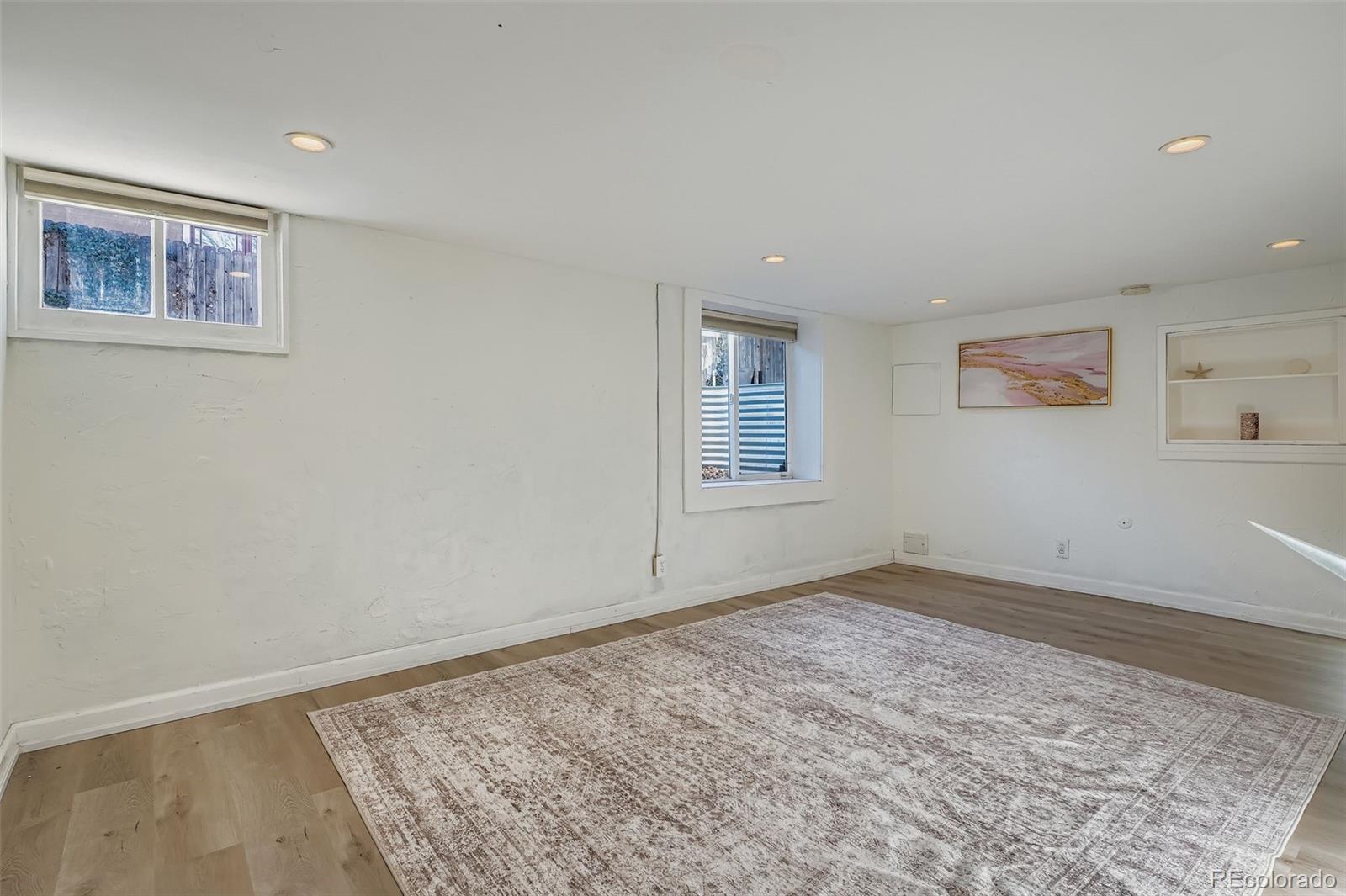 Location! Location! Location! Urban living at it's absolute finest. If you like to walk to dinner or coffee, ride your bike to Wash Park, Harvard Gulch, minutes to Levitt Pavilion, concerts at Ruby Hill, attend the theater downtown; this is it! Welcome to this inviting, charismatic bungalow sitting on a beautiful, historic tree lined street. Walking in the front door, you're immediately drawn in by the bright living room centered around a beautiful original fireplace, built-in shelving, harwood floors and 100 years of history. Each space in this home feels warm and peaceful. Thoughtful updates help this home stay true to its historic charm, yet remain very functional for modern living. The updated kitchen offers convenient bar seating and flows effortlessly into the dining space, making everyday living and entertaining easy. Enjoy your morning coffee in the sunny bay window off the kitchen. Two bedrooms are located on the main level, however, the basement expands the living space nicely with plenty of light - previously used as a large primary bedroom with a huge walk-in closet and an additional full bath. Use of this incredible space is limited only by your imagination; a second living room space perfect for guests, hobbies, or a home office setup. Outside, enjoy a fully fenced yard designed for both relaxation and entertaining, complete with a covered patio, a separate open patio ideal for relaxing with friends next to a firepit, and access to a detached two garage with a huge concrete pad for additional parking. This home is situated just minutes from the Cherry Creek mall, along with numerous other shopping options like Whole Foods, and Sprouts. Convenient access to major roads and light rail make commuting and exploring the surrounding area simple and stress-free. You'll love it here! Click the Virtual Tour link to view the 3D walkthrough. Discounted rate options and no lender fee future refinancing may be available for qualified buyers of this home.