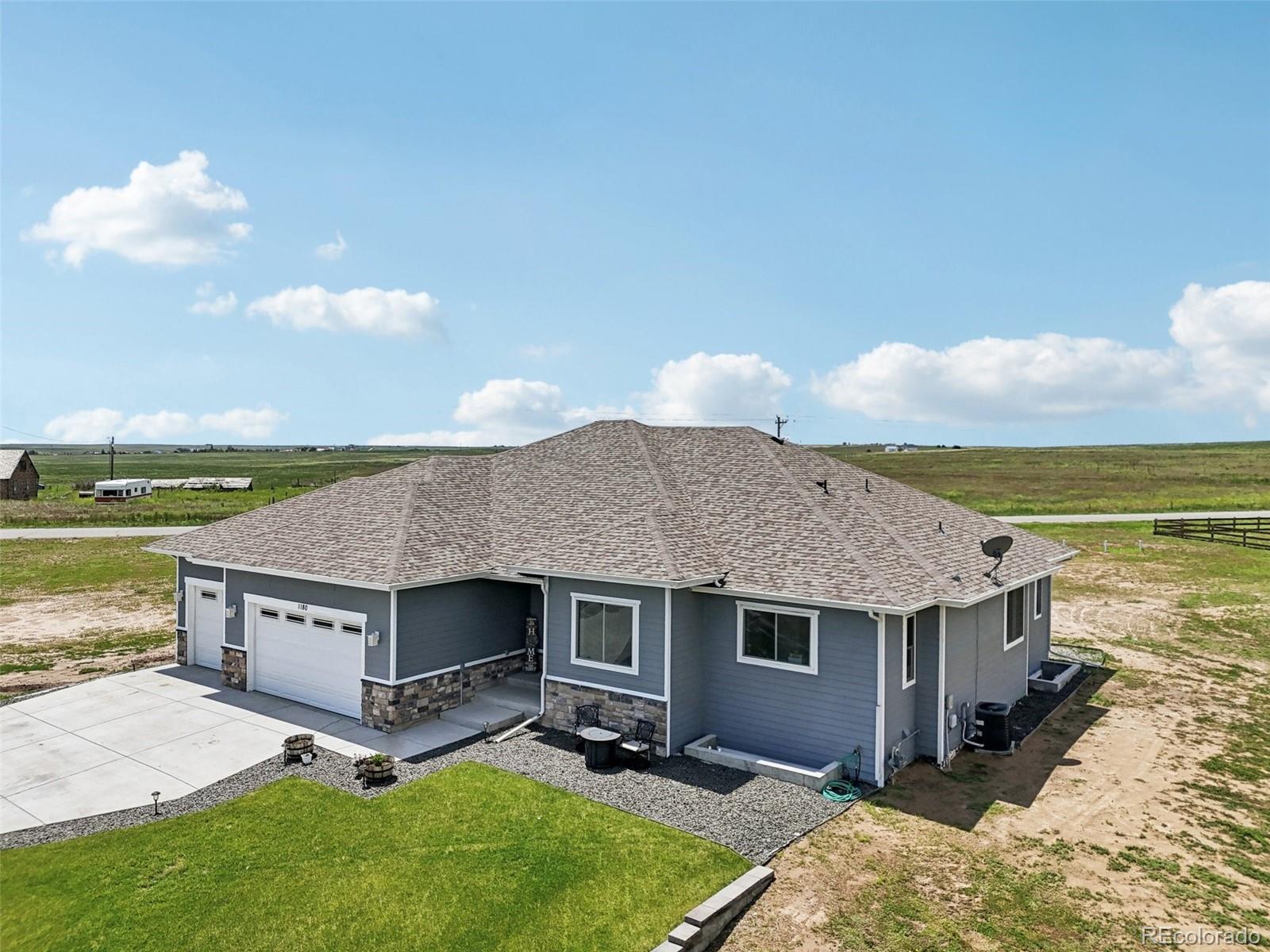 ASSUMABLE FHA LOAN! Experience exceptional value in this nearly new, custom-built 6-bedroom, 4-bath home located in the desirable Antelope Hills community of Bennett, Colorado. Built in 2020 and situated on just over an acre, this residence offers modern construction, space, and efficiency rarely found at this price point. High-performance Insulated Concrete Forms (ICF) provide superior energy efficiency, durability, and long-term peace of mind. Inside, the light-filled open-concept layout features expansive living areas, granite countertops, and quality finishes throughout. The fully finished basement adds tremendous versatility, highlighted by an impressive 1,500 sq ft great room ideal for entertaining, media space, or multi-generational living. Outdoors, enjoy the covered patio and serene wide-open surroundings. Conveniently located near walking trails, open space, and a private fishing spot, this newer home blends comfort, quality, and lifestyle—just a short drive from Denver.